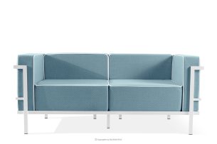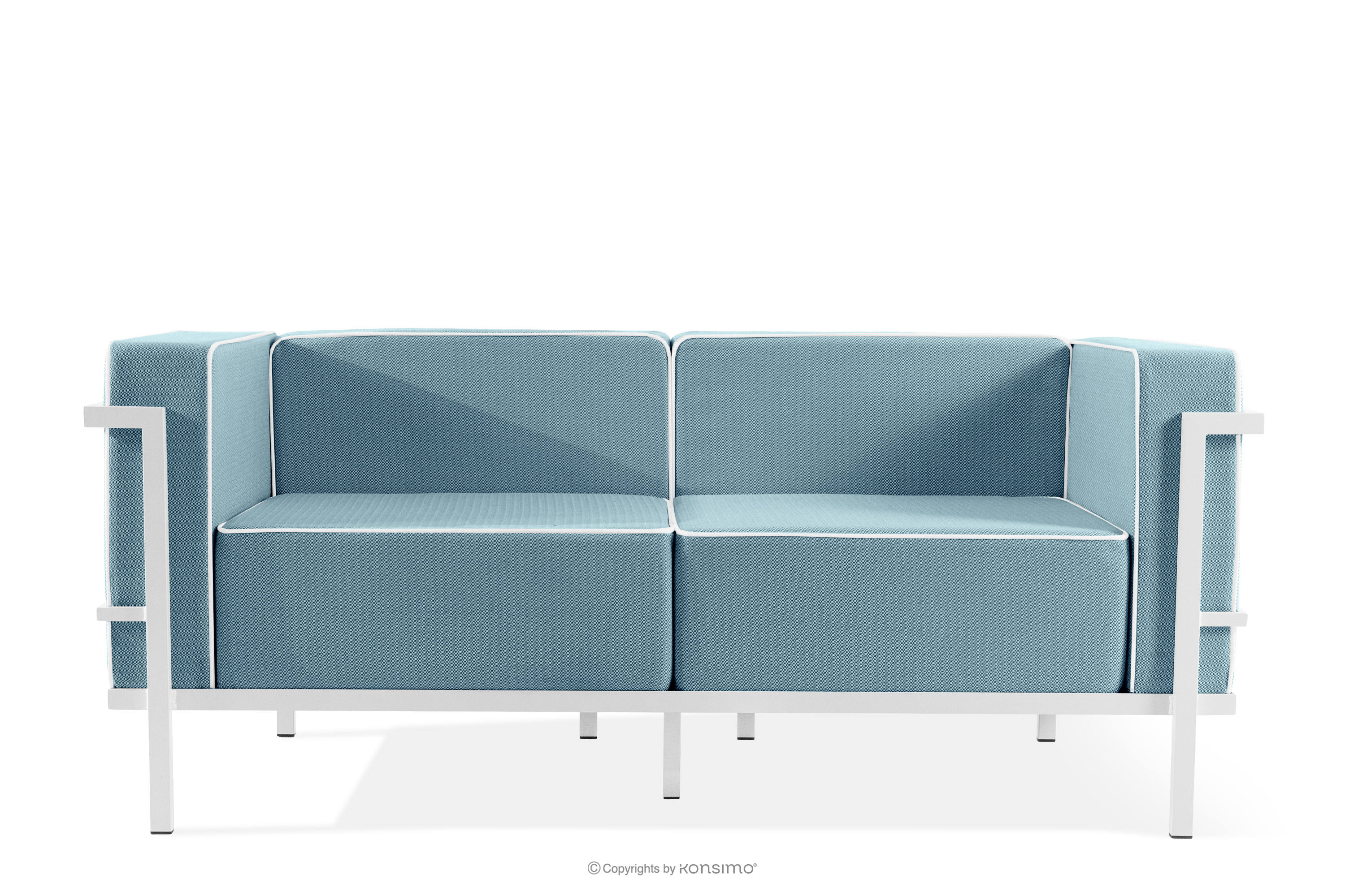 TRIGLO Modernes Gartensofa 2 auf Metallbeinen, weiß/meerblau/weiß
