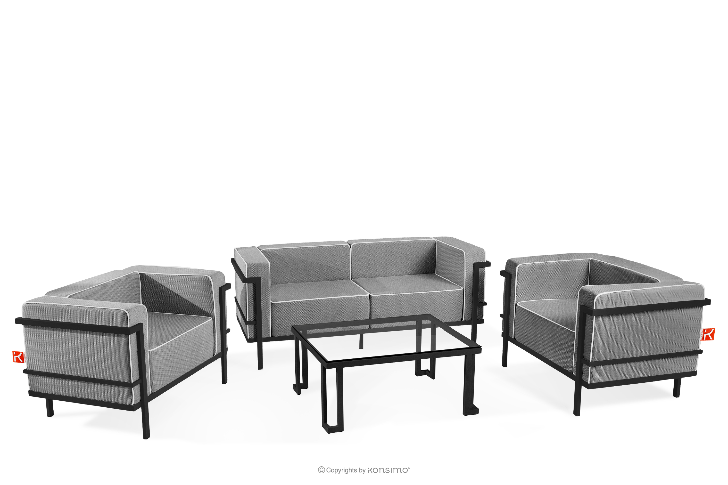 TRIGLO Mehr aus der Kollektion Gartenmöbel-Set 2x Sessel, Zweisitzer-Sofa, Tisch dunkelgrau/schwarz/weiß- Farbe dunkelgrau/schwarz/weiß