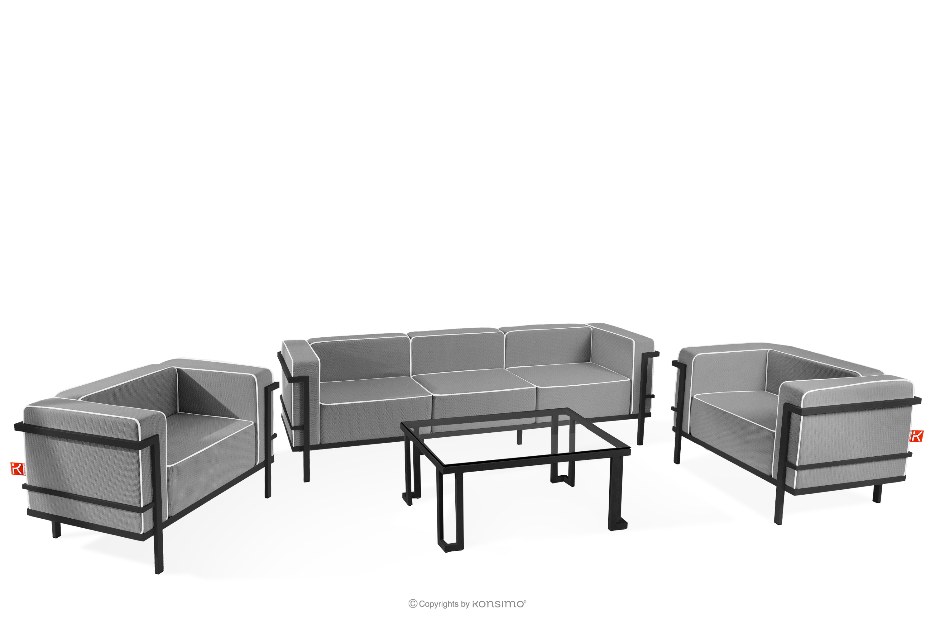 TRIGLO Gartenmöbel-Set 2x Sessel, Dreisitzer-Sofa, Tisch dunkelgrau/schwarz/weiß