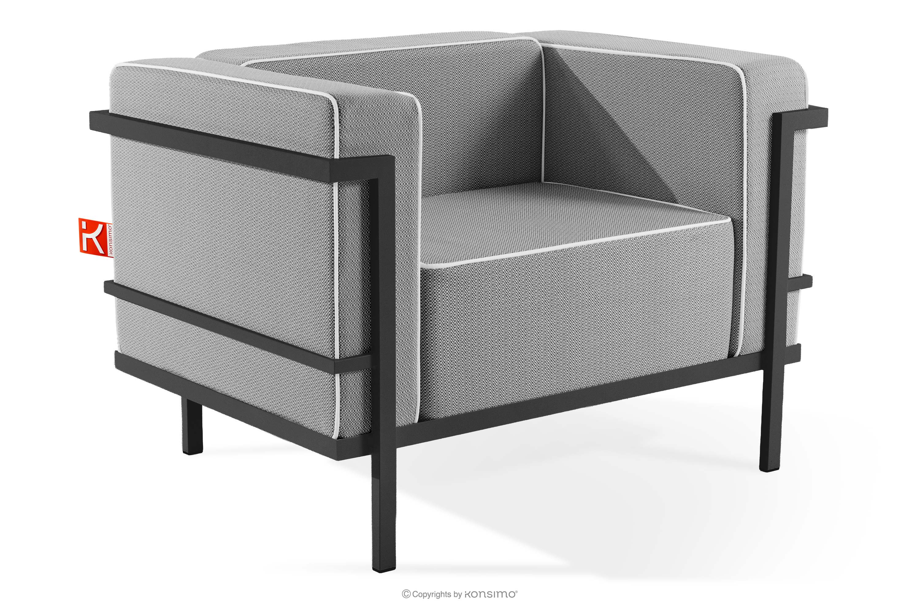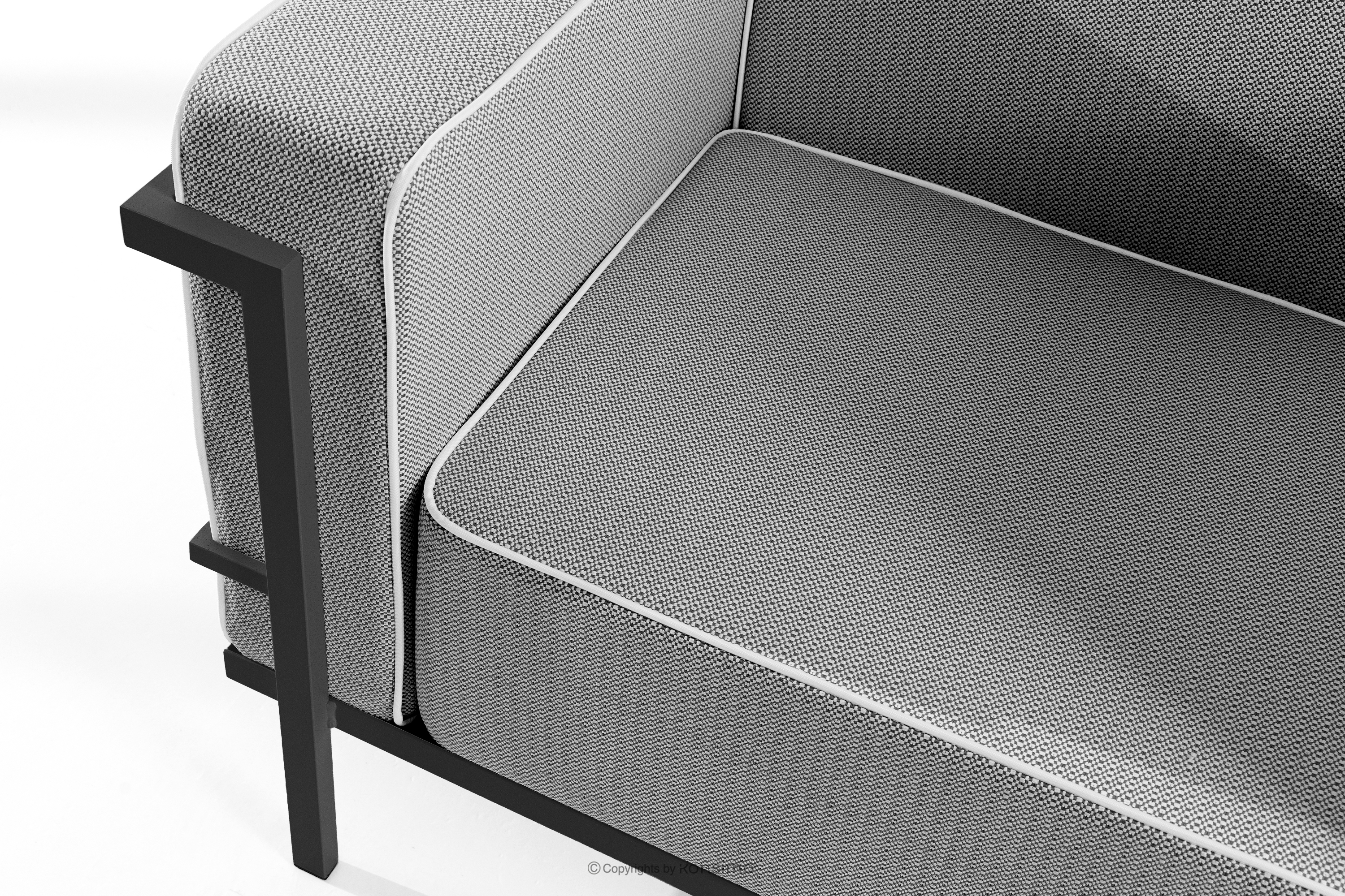 Gartenmöbel-Set 2x Sessel, Dreisitzer-Sofa, Tisch dunkelgrau/schwarz/weiß aus strapazierfähigem Stahl gefertigt, verleiht dem Raum nicht nur Eleganz, sondern sorgt auch für außergewöhnlichen Komfort. Dank der weichen Schaumstoffpolsterung von Sitzfläche und Rückenlehne wird das Entspannen im Freien zu einem wahren Vergnügen. Das Möbelstück steht auf soliden Beinen aus pulverbeschichtetem Stahl und bleibt auch bei intensiver Nutzung stabil.