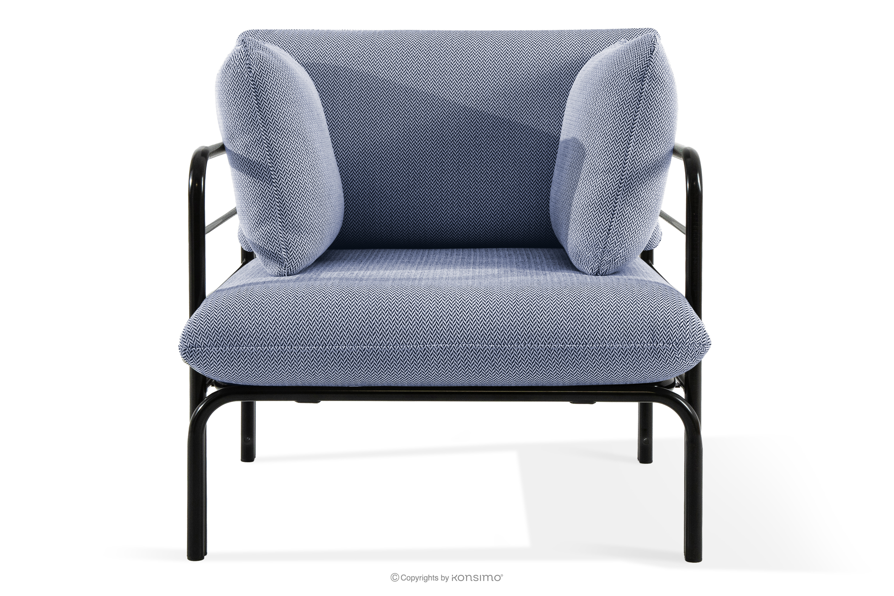 Loft-Gartenstuhl auf Metallbeinen anthrazit/marineblau/weiß aus strapazierfähigem Stahl gefertigt, verleiht dem Raum nicht nur Eleganz, sondern sorgt auch für außergewöhnlichen Komfort. Dank der weichen Schaumstoffpolsterung von Sitzfläche und Rückenlehne wird das Entspannen im Freien zu einem wahren Vergnügen. Das Möbelstück steht auf soliden Beinen aus pulverbeschichtetem Stahl und bleibt auch bei intensiver Nutzung stabil.