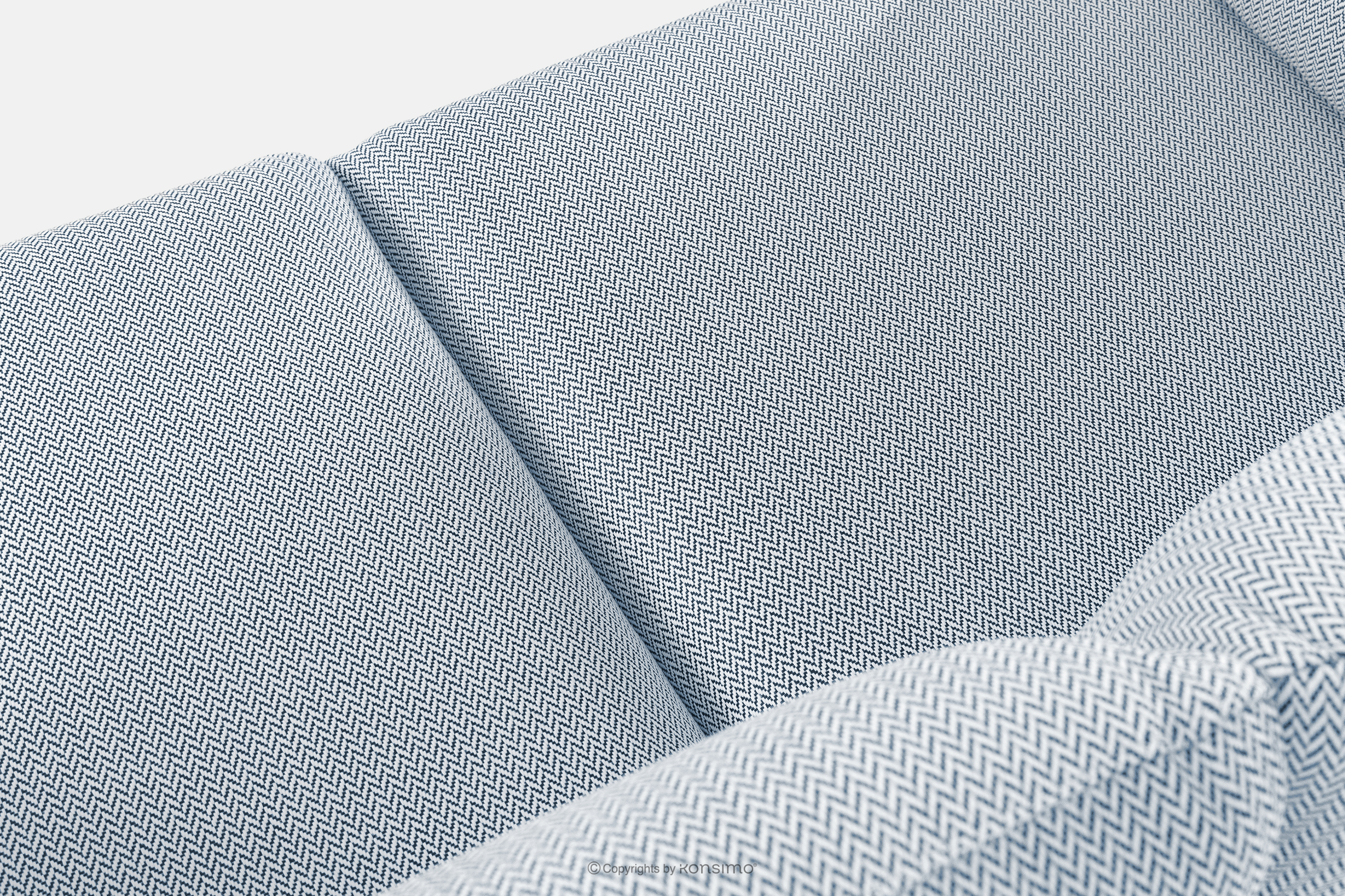 Loft-Gartensofa 2 auf Metallbeinen weiß/hellblau/weiß aus strapazierfähigem Stahl gefertigt, verleiht dem Raum nicht nur Eleganz, sondern sorgt auch für außergewöhnlichen Komfort. Dank der weichen Schaumstoffpolsterung von Sitzfläche und Rückenlehne wird das Entspannen im Freien zu einem wahren Vergnügen. Das Möbelstück steht auf soliden Beinen aus pulverbeschichtetem Stahl und bleibt auch bei intensiver Nutzung stabil.