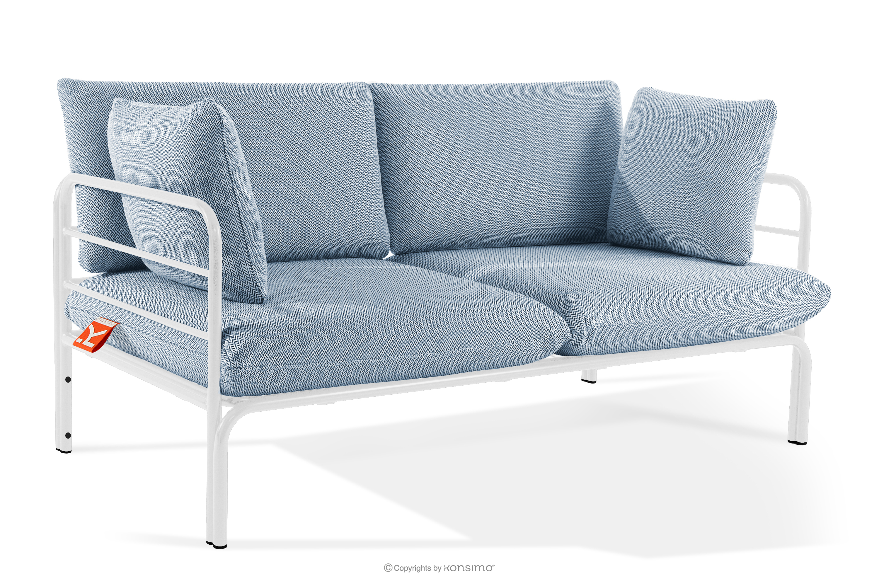 Gartenmöbel-Set 2x Sessel, Zweisitzer-Sofa, Tisch weiß/marineblau/weiß aus strapazierfähigem Stahl gefertigt, verleiht dem Raum nicht nur Eleganz, sondern sorgt auch für außergewöhnlichen Komfort. Dank der weichen Schaumstoffpolsterung von Sitzfläche und Rückenlehne wird das Entspannen im Freien zu einem wahren Vergnügen. Das Möbelstück steht auf soliden Beinen aus pulverbeschichtetem Stahl und bleibt auch bei intensiver Nutzung stabil.