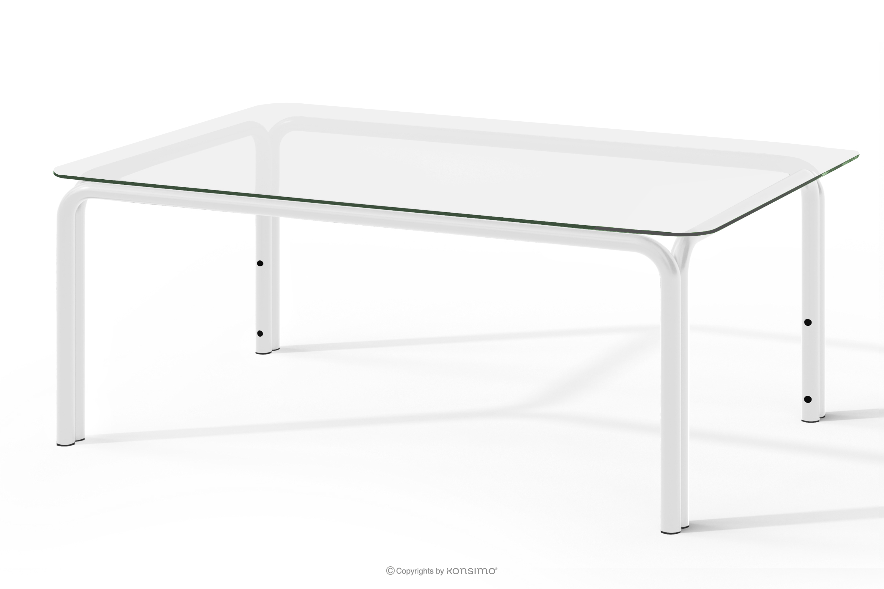 - Die Tischplatte: 8 mm transparentes Glas