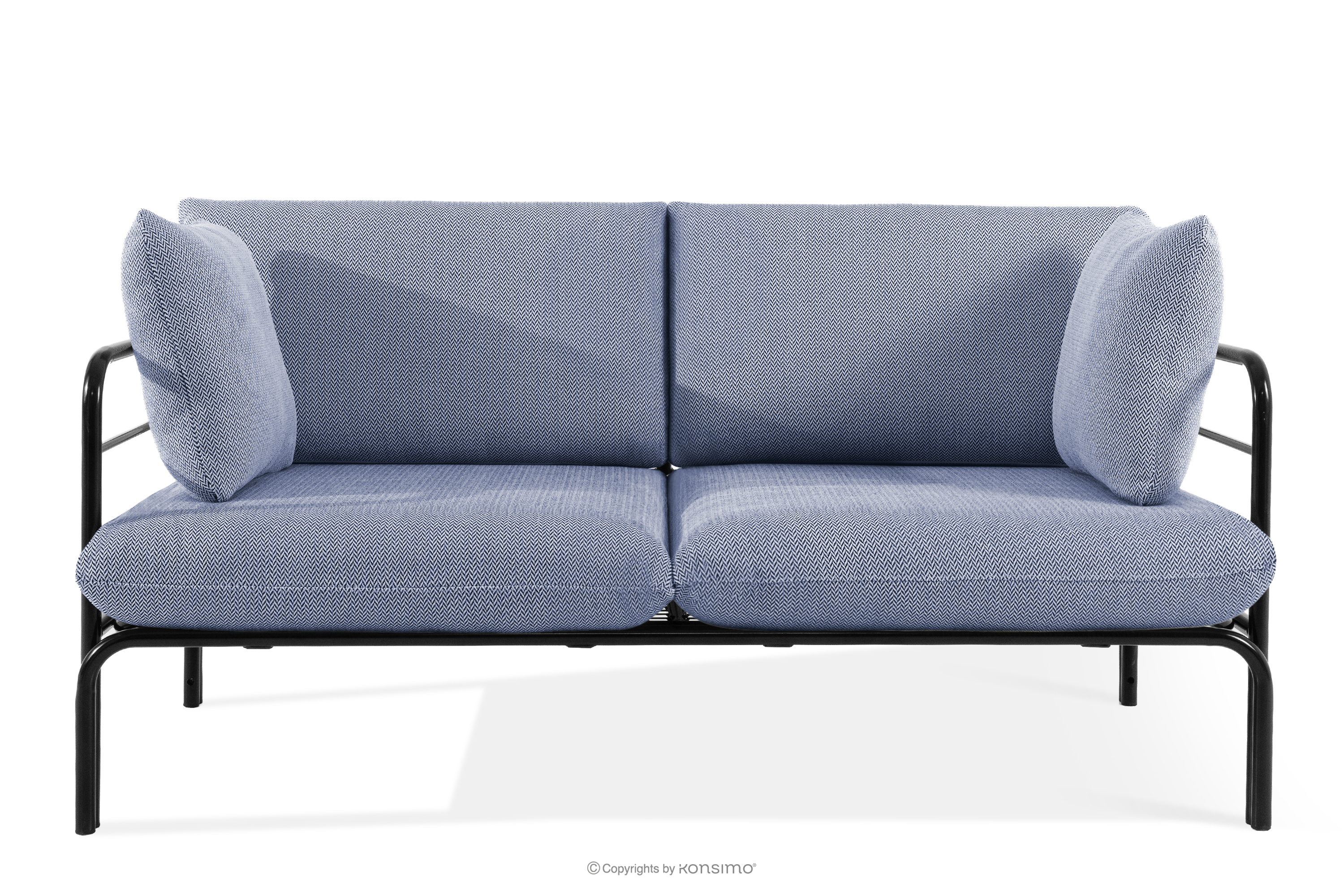 Gartenmöbel-Set 2x Sessel, Zweisitzer-Sofa, Tisch anthrazit/marineblau/weiß aus strapazierfähigem Stahl gefertigt, verleiht dem Raum nicht nur Eleganz, sondern sorgt auch für außergewöhnlichen Komfort. Dank der weichen Schaumstoffpolsterung von Sitzfläche und Rückenlehne wird das Entspannen im Freien zu einem wahren Vergnügen. Das Möbelstück steht auf soliden Beinen aus pulverbeschichtetem Stahl und bleibt auch bei intensiver Nutzung stabil.