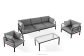 Gartenmöbel-Set 2x Sessel, Dreisitzer-Sofa, Tisch anthrazit/marineblau/weiß aus strapazierfähigem Stahl gefertigt, verleiht dem Raum nicht nur Eleganz, sondern sorgt auch für außergewöhnlichen Komfort. Dank der weichen Schaumstoffpolsterung von Sitzfläche und Rückenlehne wird das Entspannen im Freien zu einem wahren Vergnügen. Das Möbelstück steht auf soliden Beinen aus pulverbeschichtetem Stahl und bleibt auch bei intensiver Nutzung stabil.