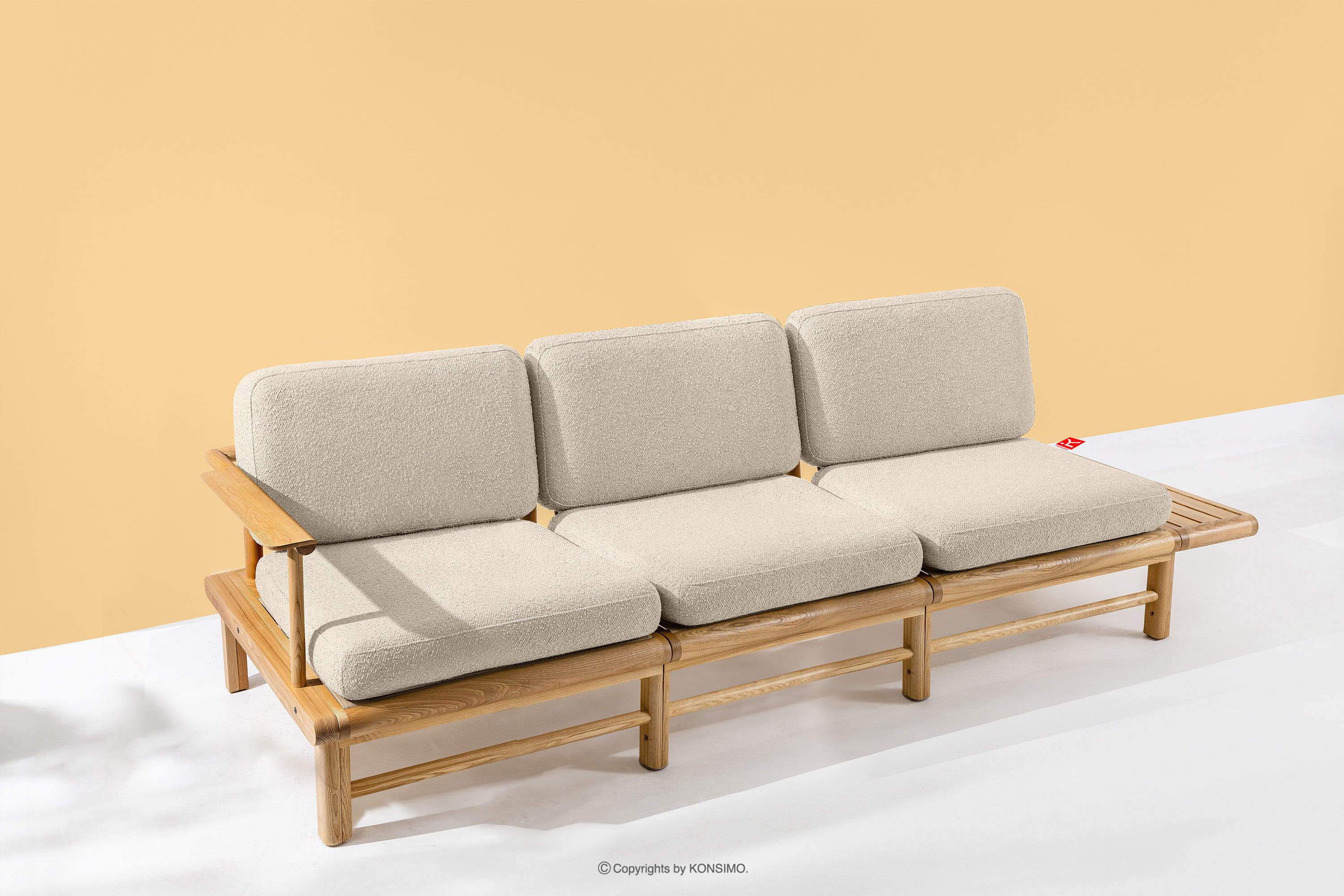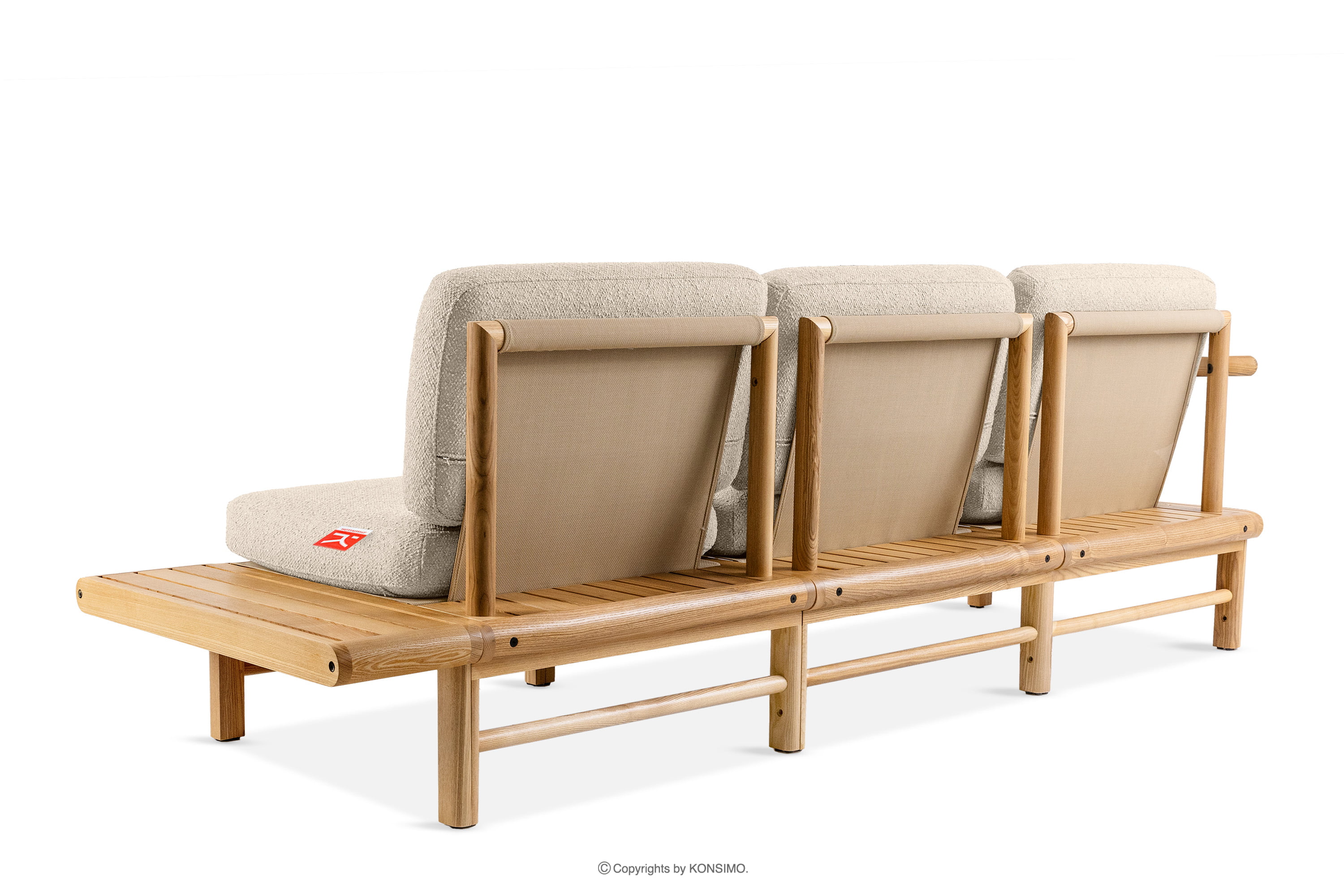 Das Gartensofa 3 aus massivem cremefarbenem Eschenholz ist ein einzigartiges Produkt, das Ihren Raum verschönern wird. Die Sitz- und Rückenkissen sind mit hochwertigem PU-Schaumstoff gefüllt und bieten einen unvergleichlichen Komfort. Der Stoffbezug, der zu 93% aus recyceltem Polypropylen und zu 7% aus Polyester besteht, ist nicht nur umweltfreundlich, sondern auch pflegeleicht - einfach mit einem feuchten Tuch abwischen.