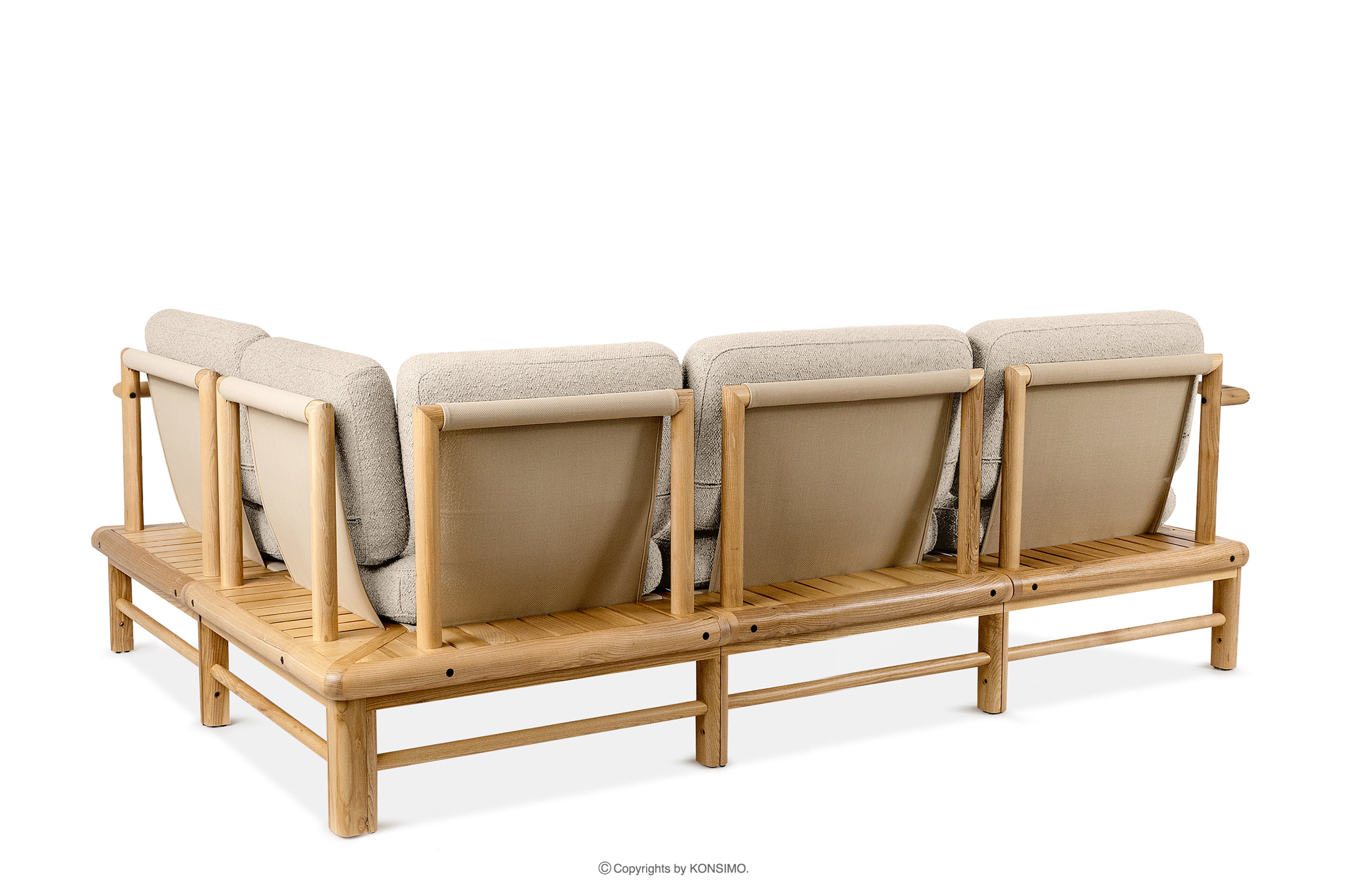 Das Eschenholz Ecksofa creme rechts ist ein einzigartiges Produkt, das Ihren Raum verschönern wird. Die Sitz- und Rückenkissen sind mit hochwertigem PU-Schaumstoff gefüllt, der einen unvergleichlichen Komfort bietet. Der Stoffbezug, der zu 93% aus recyceltem Polypropylen und zu 7% aus Polyester besteht, ist nicht nur umweltfreundlich, sondern auch pflegeleicht - einfach mit einem feuchten Tuch abwischen.