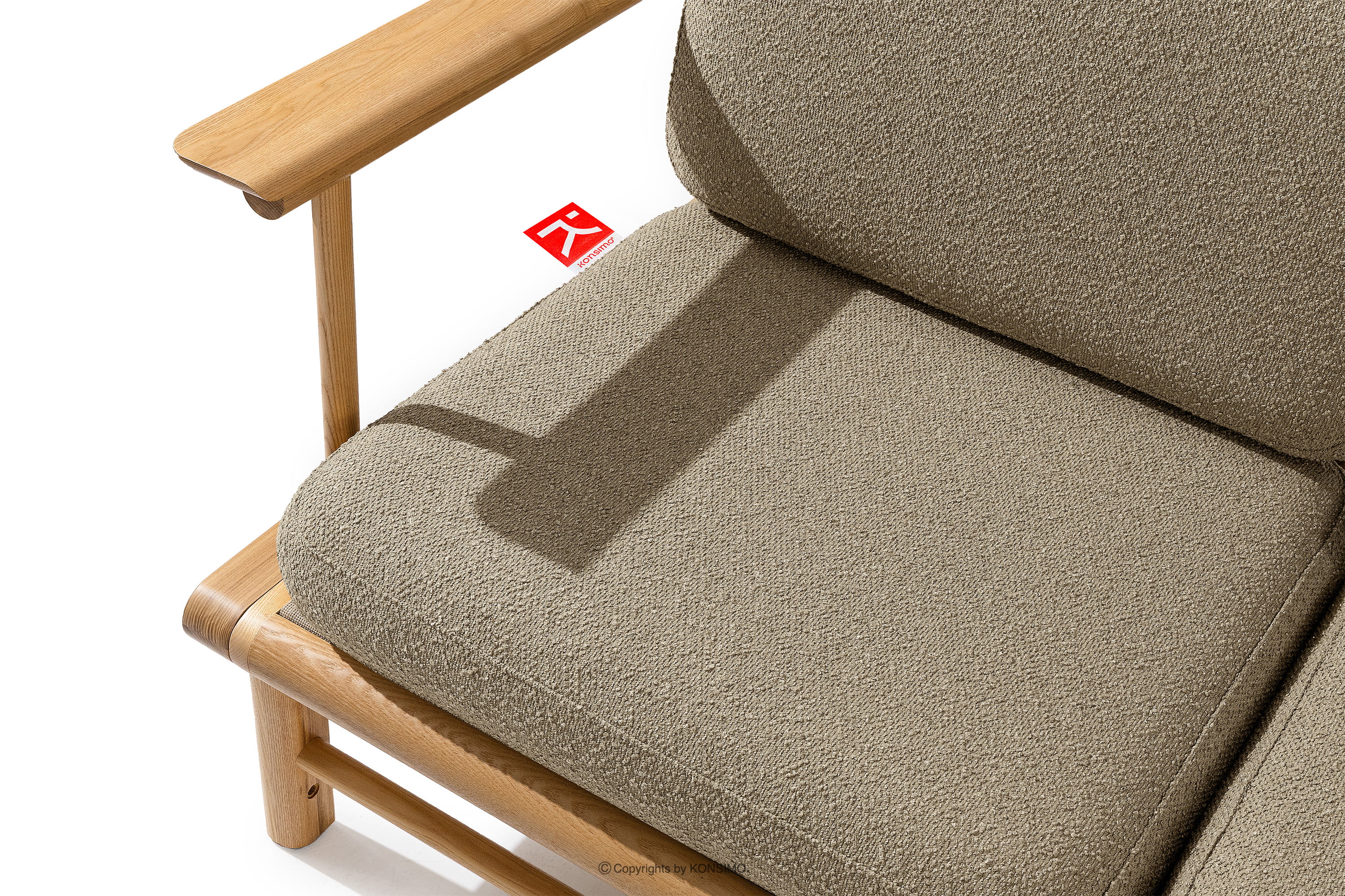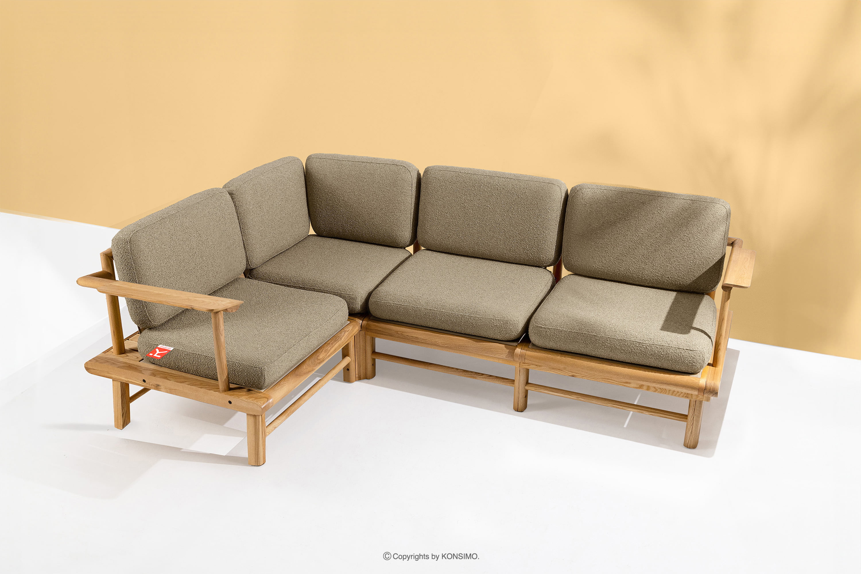 Das Eschenholz Ecksofa beige links ist ein einzigartiges Produkt, das Ihren Raum verschönern wird. Die Sitz- und Rückenkissen sind mit hochwertigem PU-Schaumstoff gefüllt, der einen unvergleichlichen Komfort bietet. Der Stoffbezug aus 93% recyceltem Polypropylen und 7% Polyester ist nicht nur umweltfreundlich, sondern auch pflegeleicht - einfach mit einem feuchten Tuch abwischen.