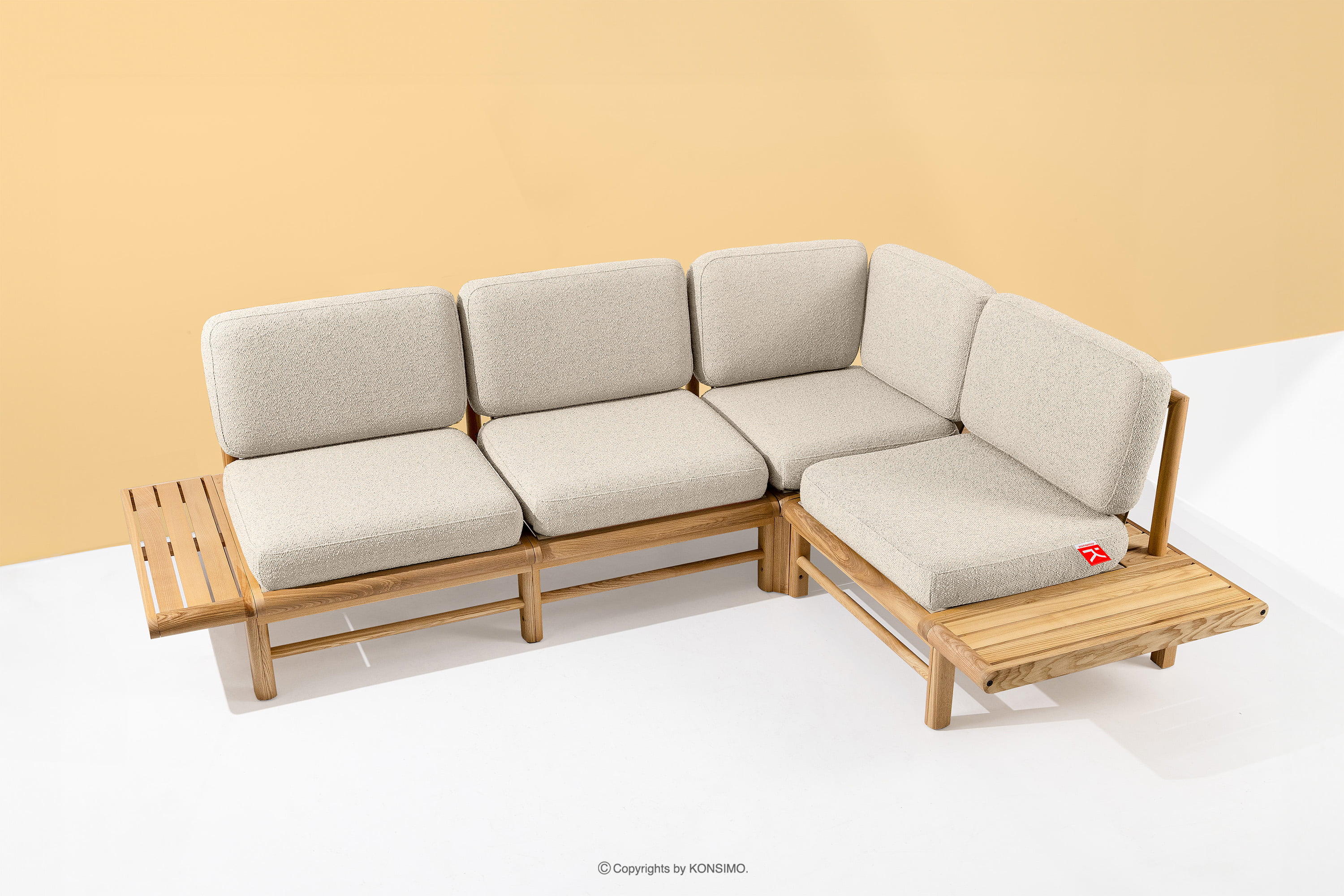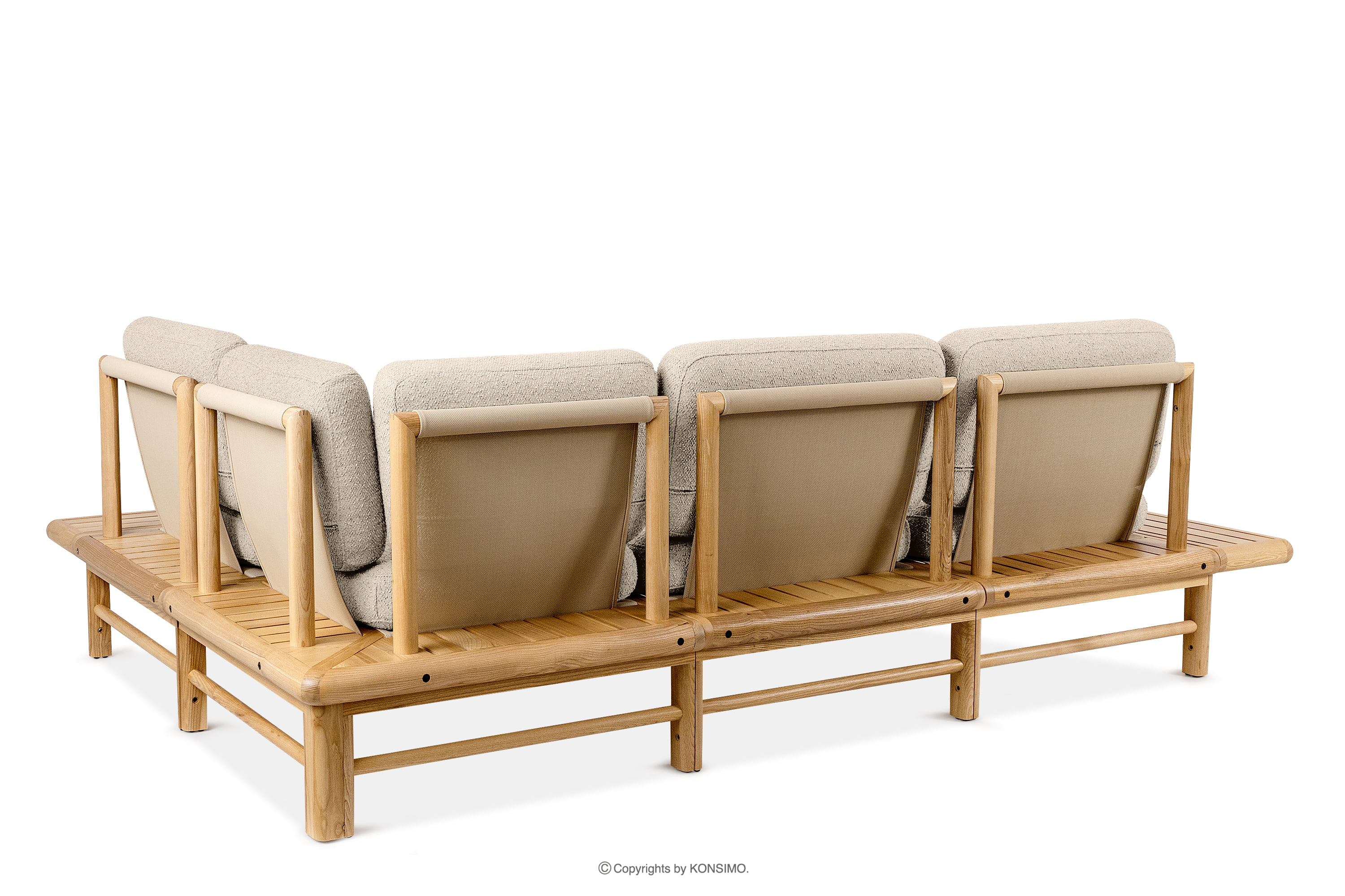 Das Boho-Ecksofa aus massivem Eschenholz creme rechts ist ein einzigartiges Produkt, das Ihren Raum verschönern wird. Die Sitz- und Rückenkissen sind mit hochwertigem PU-Schaumstoff für unvergleichlichen Komfort gefüllt. Der Stoffbezug aus 93 % recyceltem Polypropylen und 7 % Polyester ist nicht nur umweltfreundlich, sondern auch pflegeleicht - einfach mit einem feuchten Tuch abwischen.
