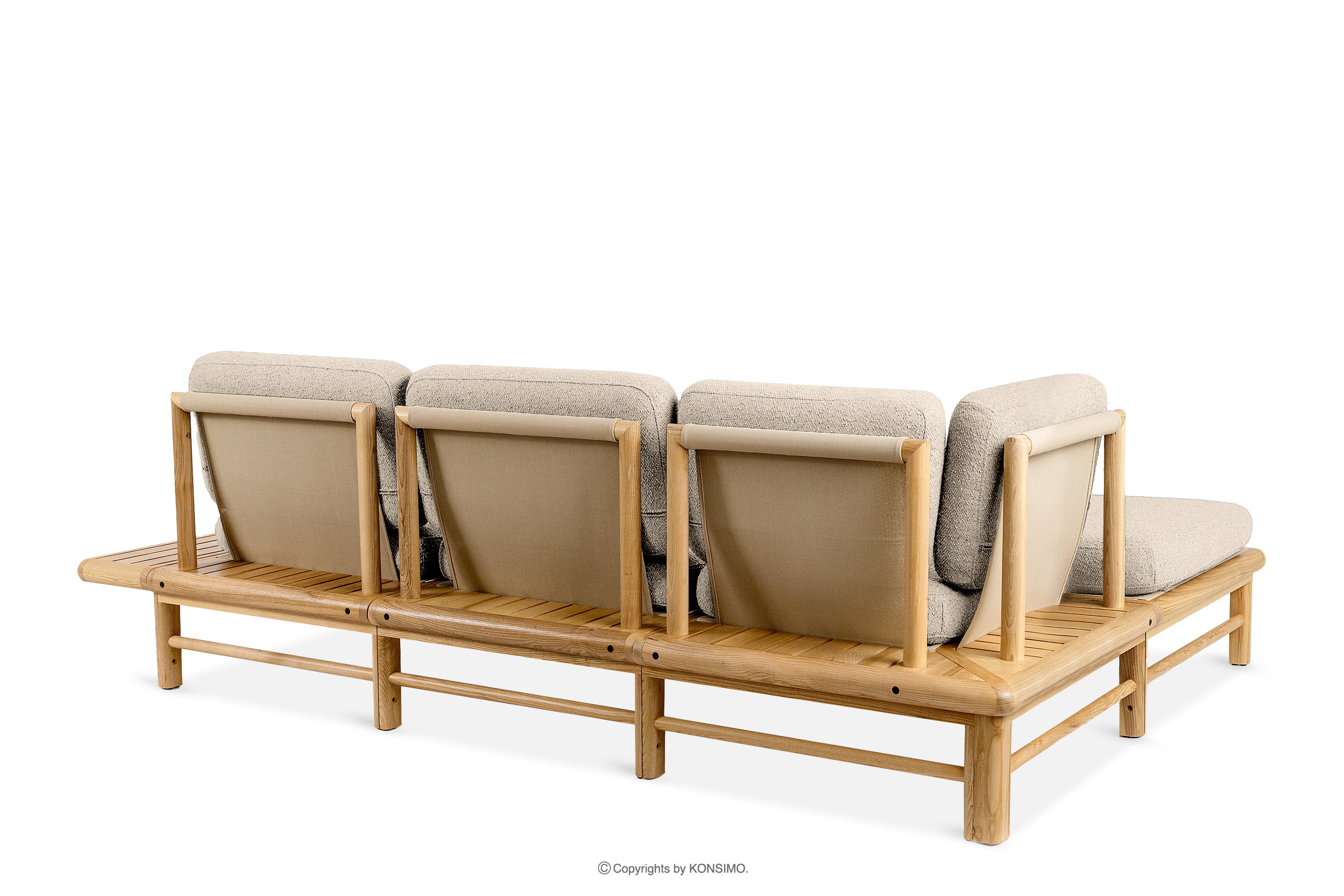 Das Ecksofa aus Holz creme/natur Esche links ist ein einzigartiges Produkt, das Ihren Raum verschönern wird. Die Sitz- und Rückenkissen sind mit hochwertigem PU-Schaumstoff gefüllt und bieten einen unvergleichlichen Komfort. Der Stoffbezug, der zu 93% aus recyceltem Polypropylen und zu 7% aus Polyester besteht, ist nicht nur umweltfreundlich, sondern auch pflegeleicht - einfach mit einem feuchten Tuch abwischen.