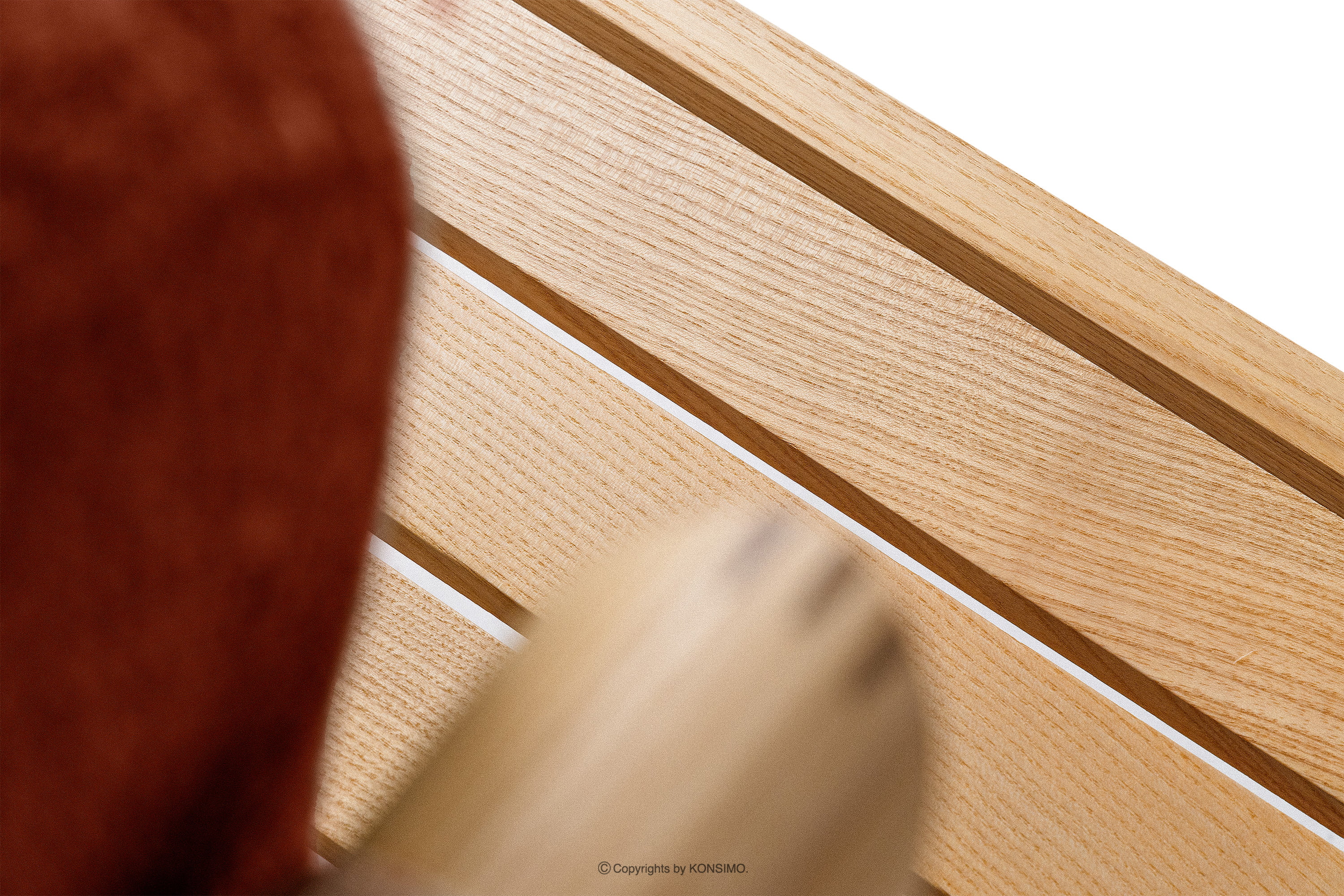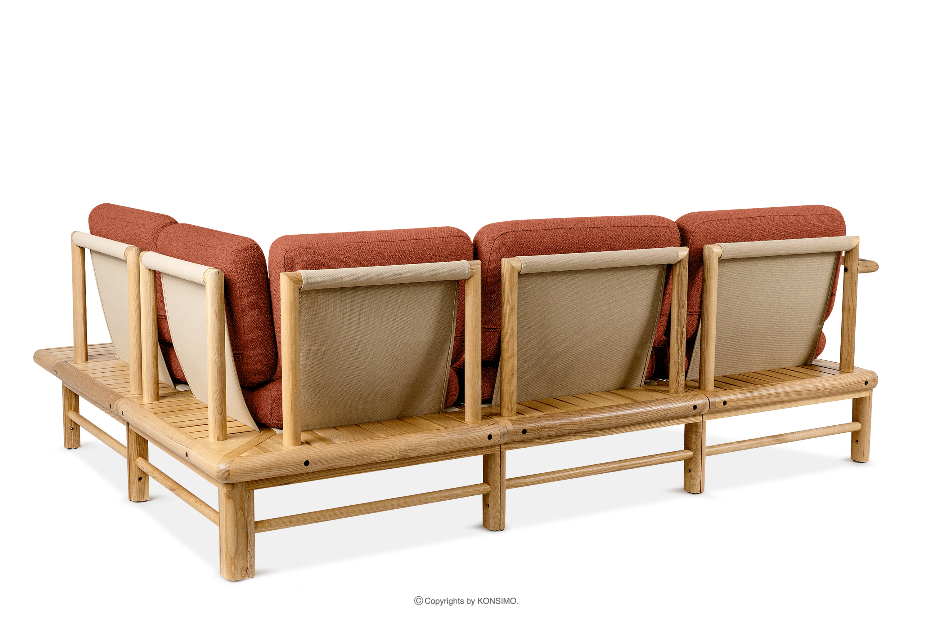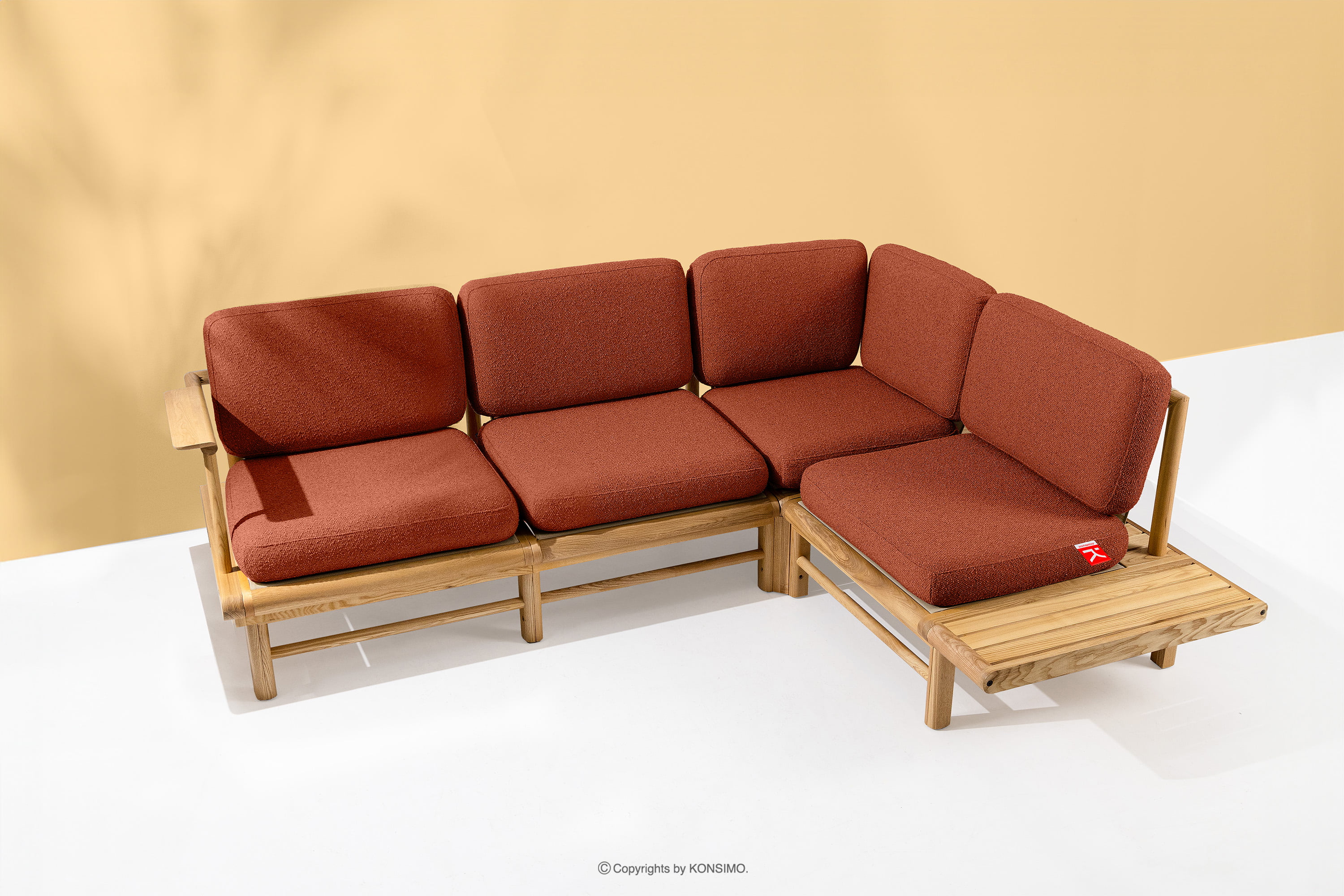 Das Ecksofa aus Holz im Boho-Stil rechts orange ist ein einzigartiges Produkt, das Ihren Raum schmücken wird. Die Sitz- und Rückenkissen sind mit hochwertigem PU-Schaumstoff für unvergleichlichen Komfort gefüllt. Der Stoffbezug aus 93 % recyceltem Polypropylen und 7 % Polyester ist nicht nur umweltfreundlich, sondern auch pflegeleicht - einfach mit einem feuchten Tuch abwischen.