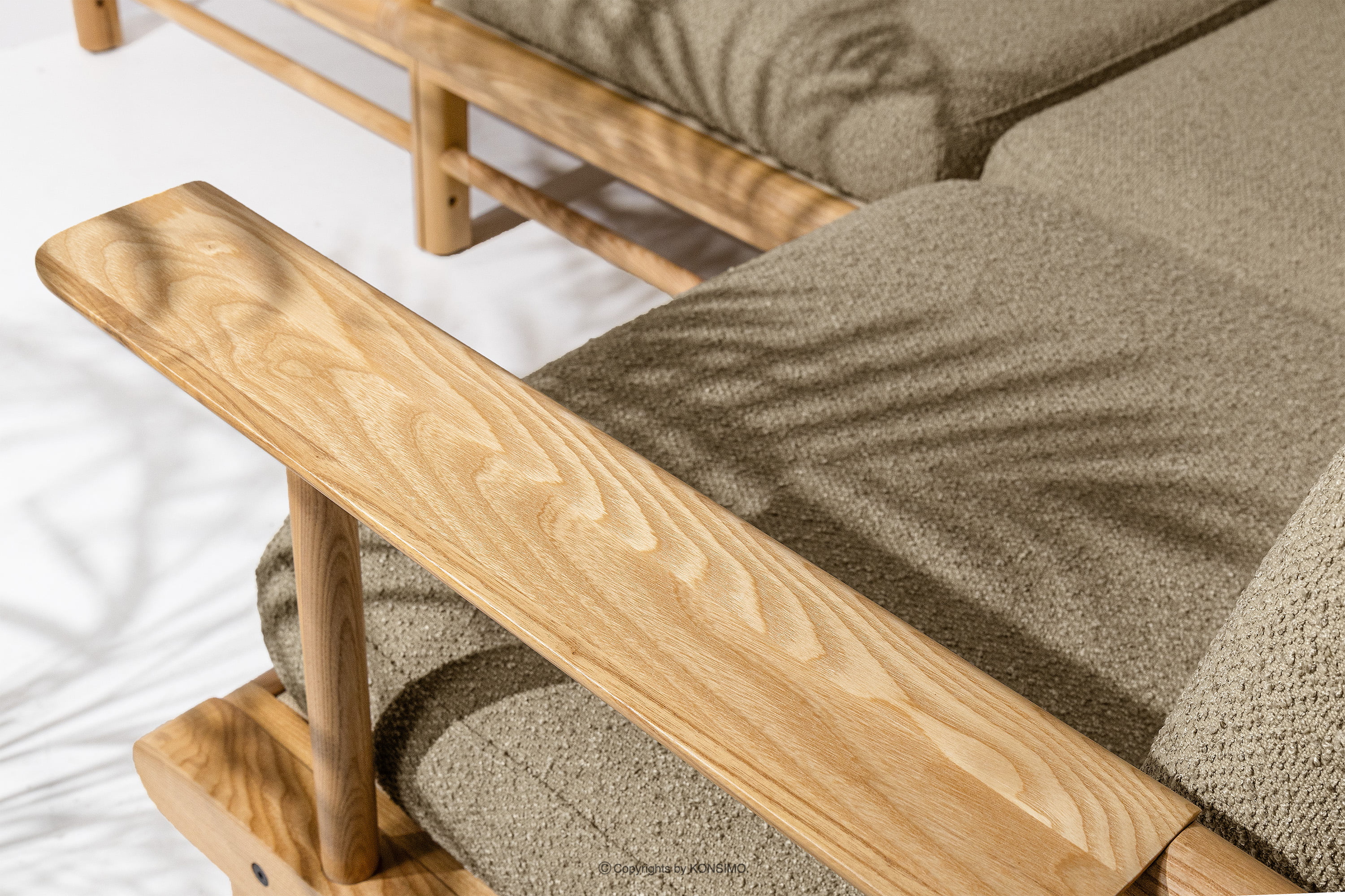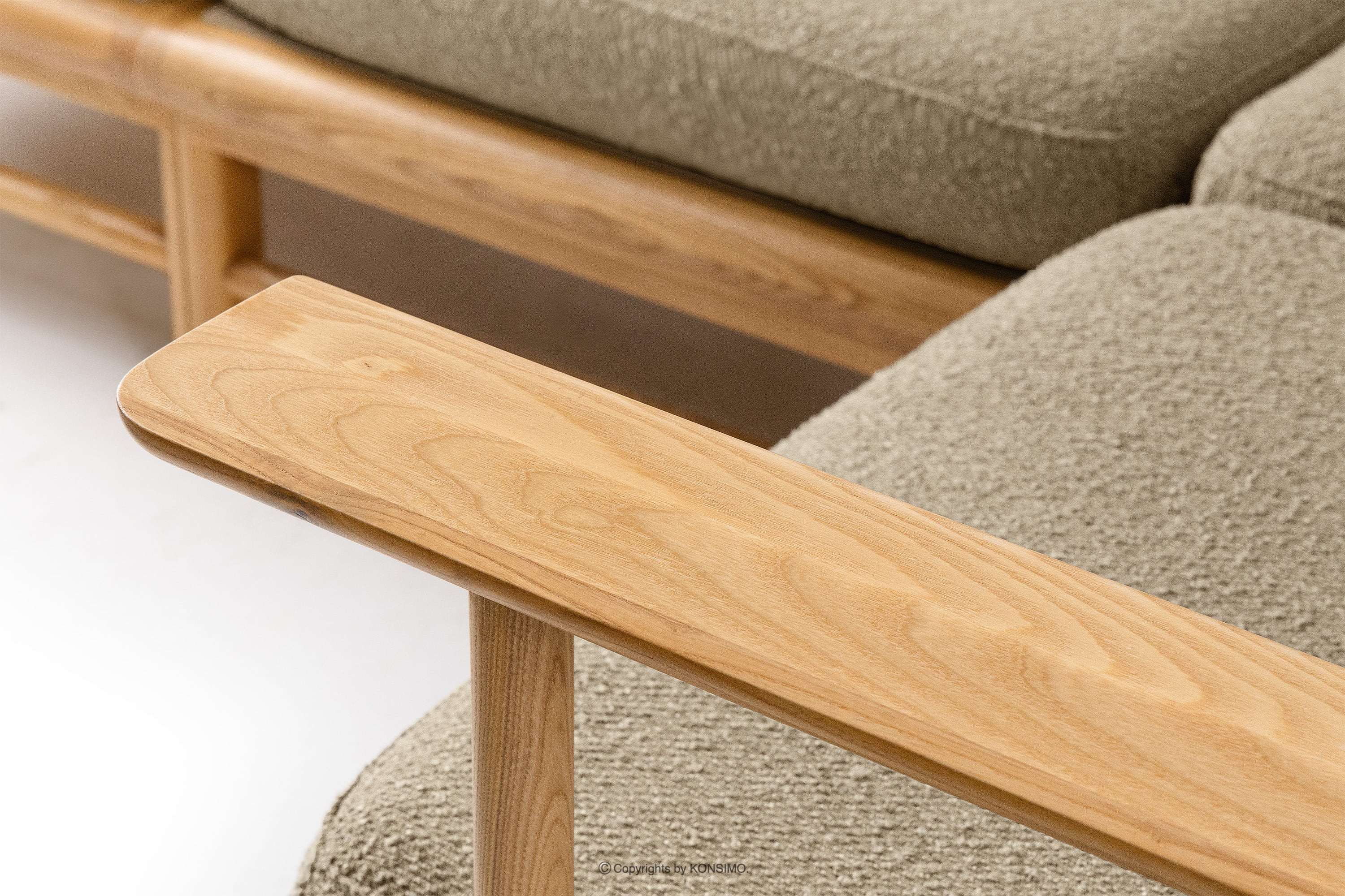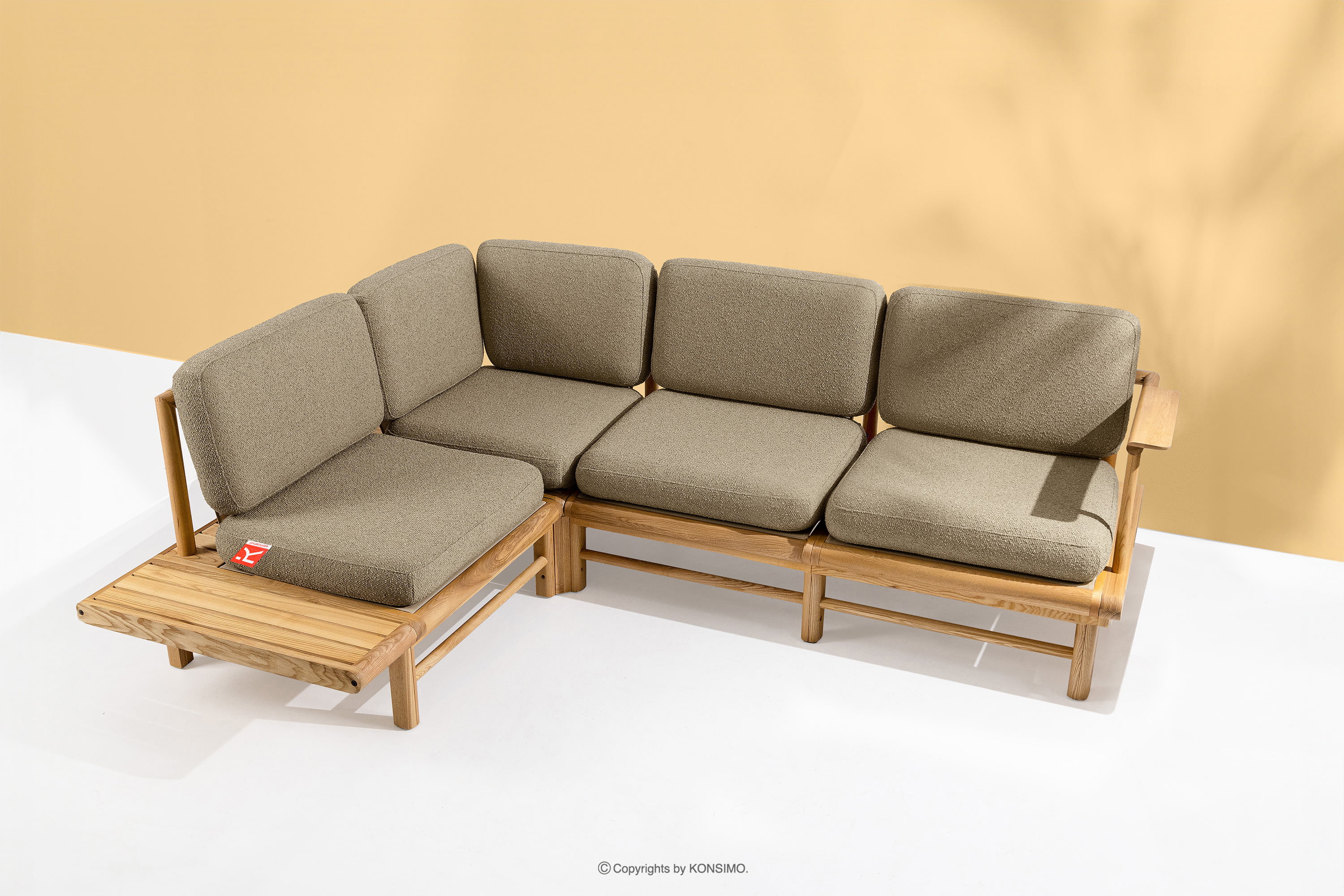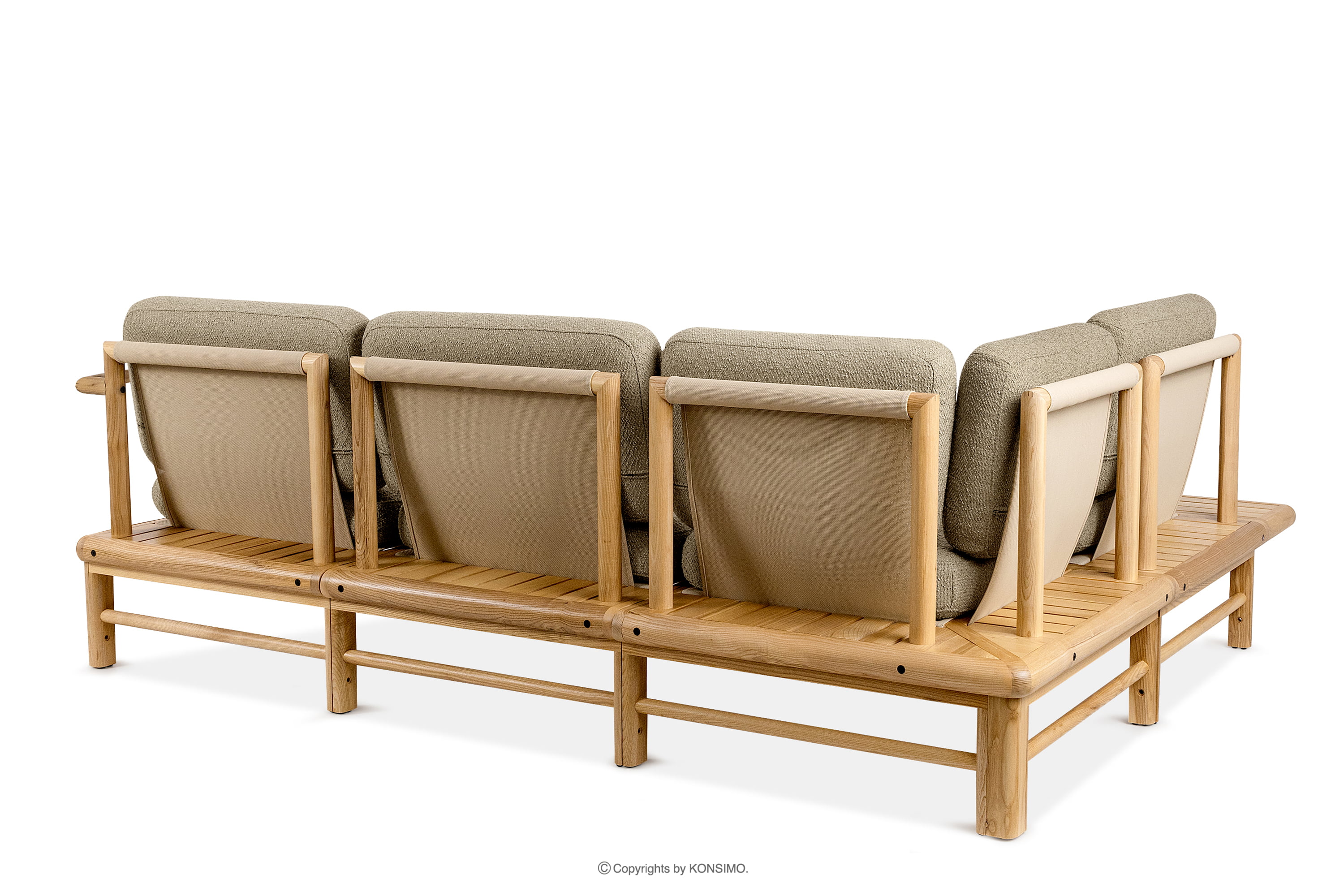Das Ecksofa aus Holz im Boho-Stil links beige ist ein einzigartiges Produkt, das Ihren Raum verschönern wird. Die Sitz- und Rückenkissen sind mit hochwertigem PU-Schaumstoff für unvergleichlichen Komfort gefüllt. Der Stoffbezug aus 93% recyceltem Polypropylen und 7% Polyester ist nicht nur umweltfreundlich, sondern auch pflegeleicht - einfach mit einem feuchten Tuch abwischen.