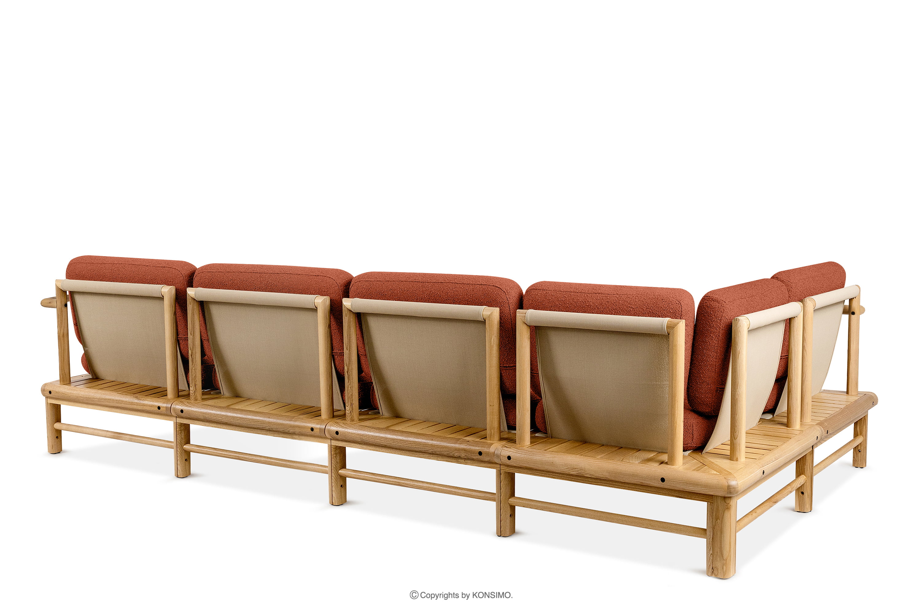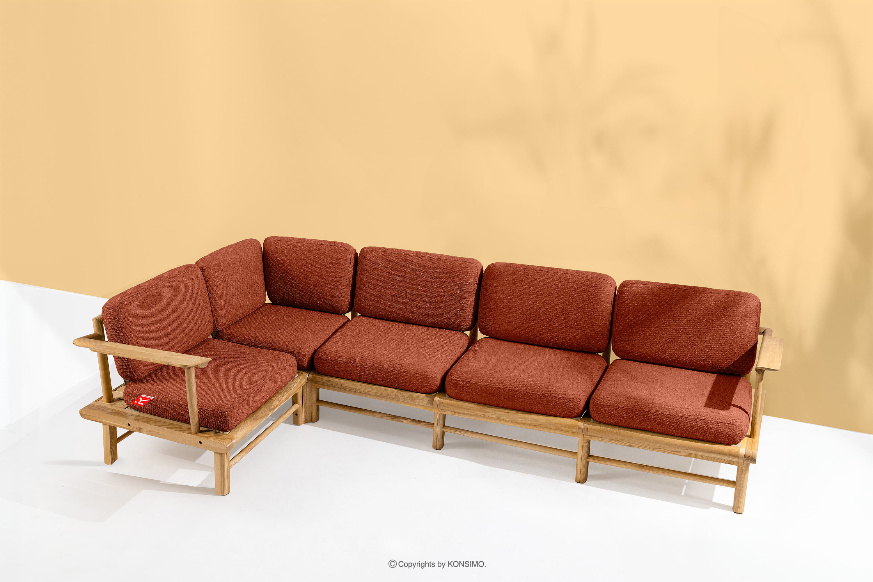 Das Holz-Ecksofa boho left garden orange ist ein einzigartiges Produkt, das Ihren Raum schmücken wird. Die Sitz- und Rückenkissen sind mit hochwertigem PU-Schaumstoff für unvergleichlichen Komfort gefüllt. Der Stoffbezug aus 93% recyceltem Polypropylen und 7% Polyester ist nicht nur umweltfreundlich, sondern auch pflegeleicht - einfach mit einem feuchten Tuch abwischen. Unsere Möbel sind FSC- und OEKO-TEX-zertifiziert, was garantiert, dass sie umweltschonend produziert werden und den höchsten Qualitätsstandards entsprechen.