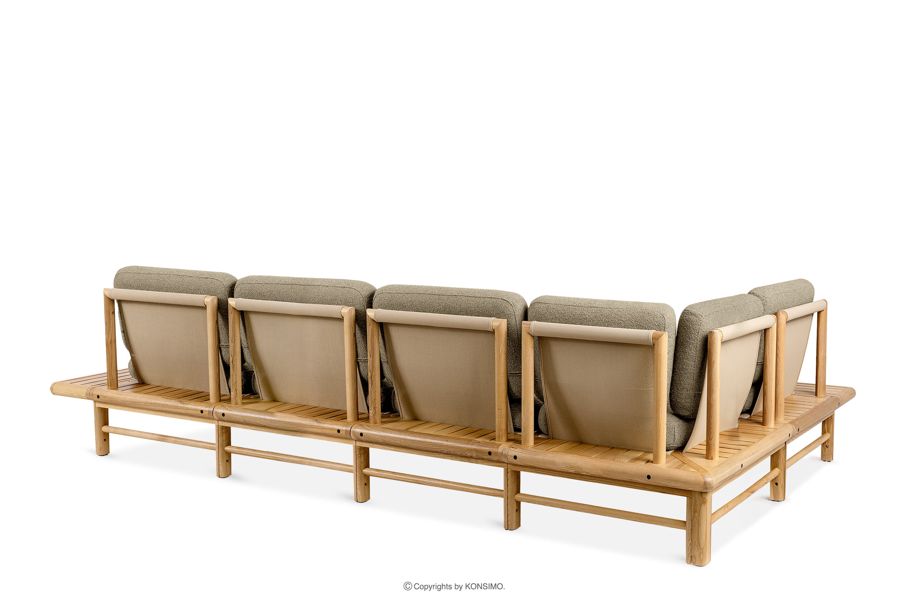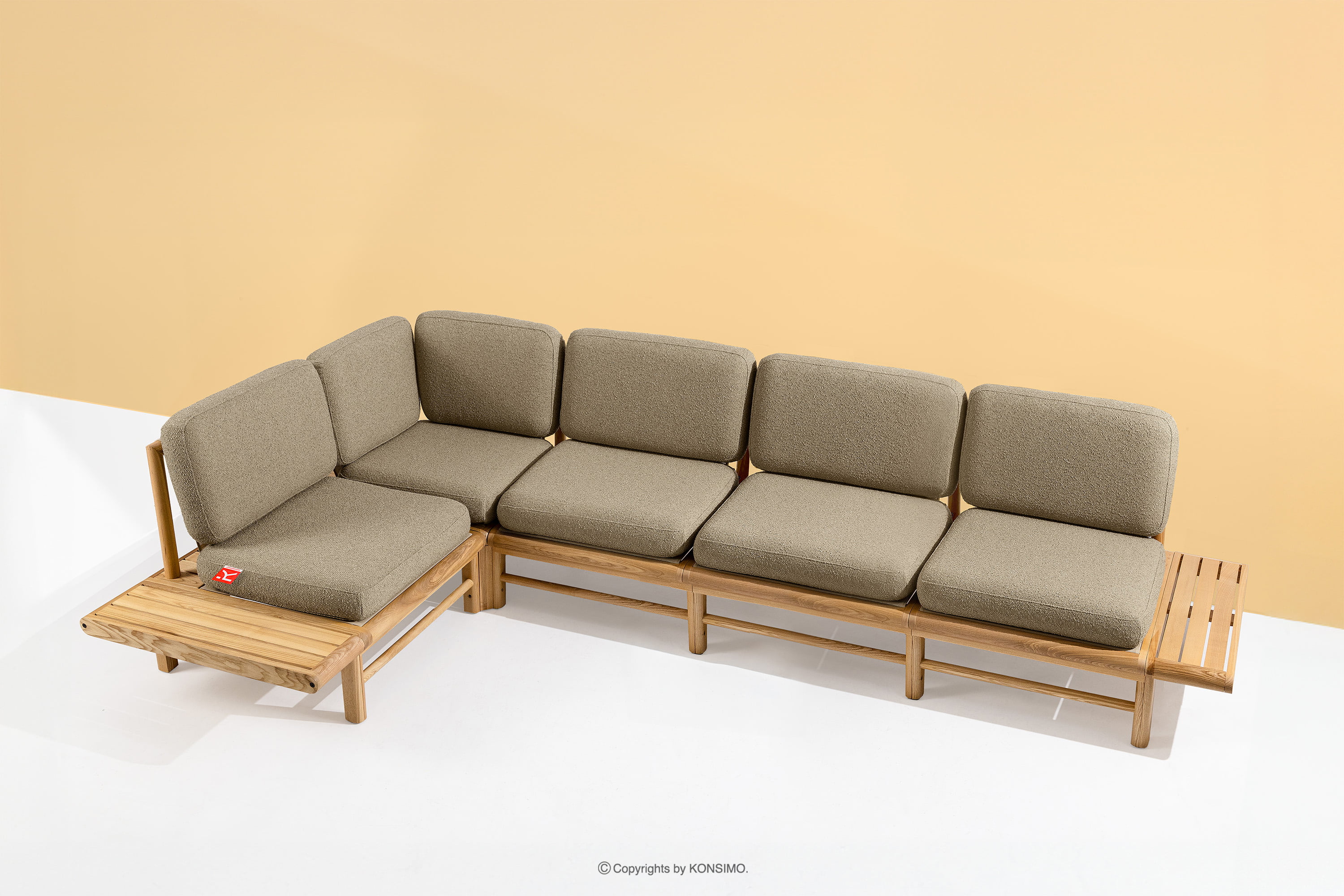 Das Ecksofa aus massivem Eschenholz beige links ist ein einzigartiges Produkt, das Ihren Raum verschönern wird. Die Sitz- und Rückenkissen sind mit hochwertigem PU-Schaumstoff gefüllt und bieten einen unvergleichlichen Komfort. Der Stoffbezug, der zu 93% aus recyceltem Polypropylen und zu 7% aus Polyester besteht, ist nicht nur umweltfreundlich, sondern auch pflegeleicht - einfach mit einem feuchten Tuch abwischen.