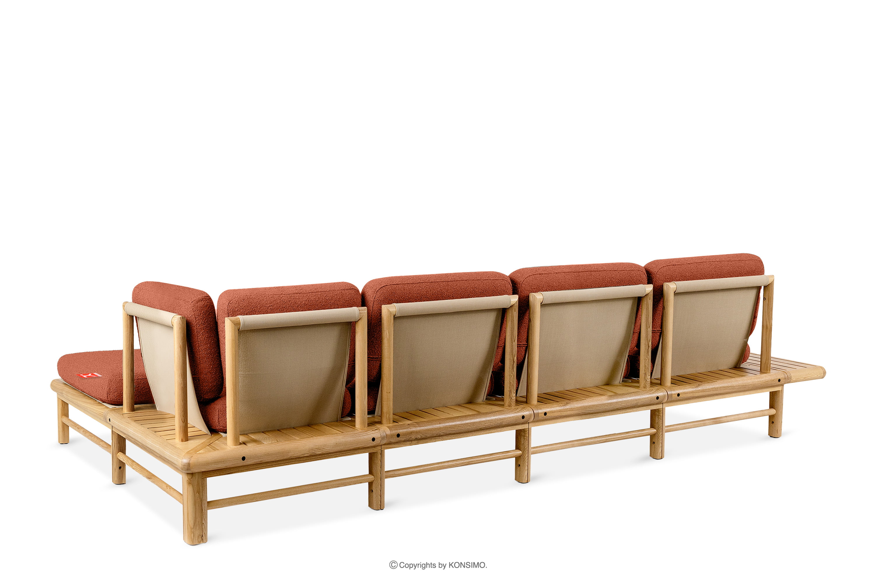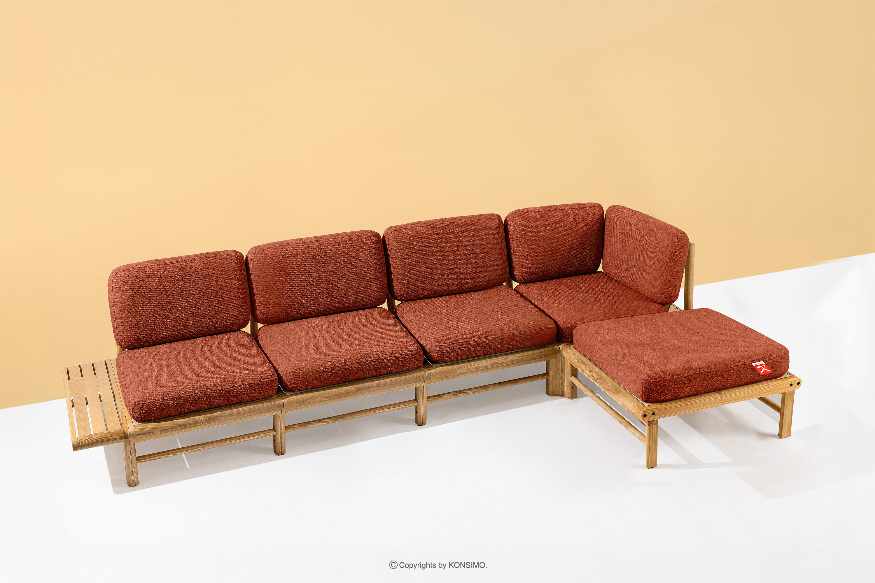 Das Ecksofa orange rechts aus massivem Eschenholz ist ein einzigartiges Produkt, das Ihren Raum verschönern wird. Die Sitz- und Rückenkissen sind mit hochwertigem PU-Schaumstoff für unvergleichlichen Komfort gefüllt. Der Stoffbezug, der zu 93% aus recyceltem Polypropylen und zu 7% aus Polyester besteht, ist nicht nur umweltfreundlich, sondern auch pflegeleicht - einfach mit einem feuchten Tuch abwischen.