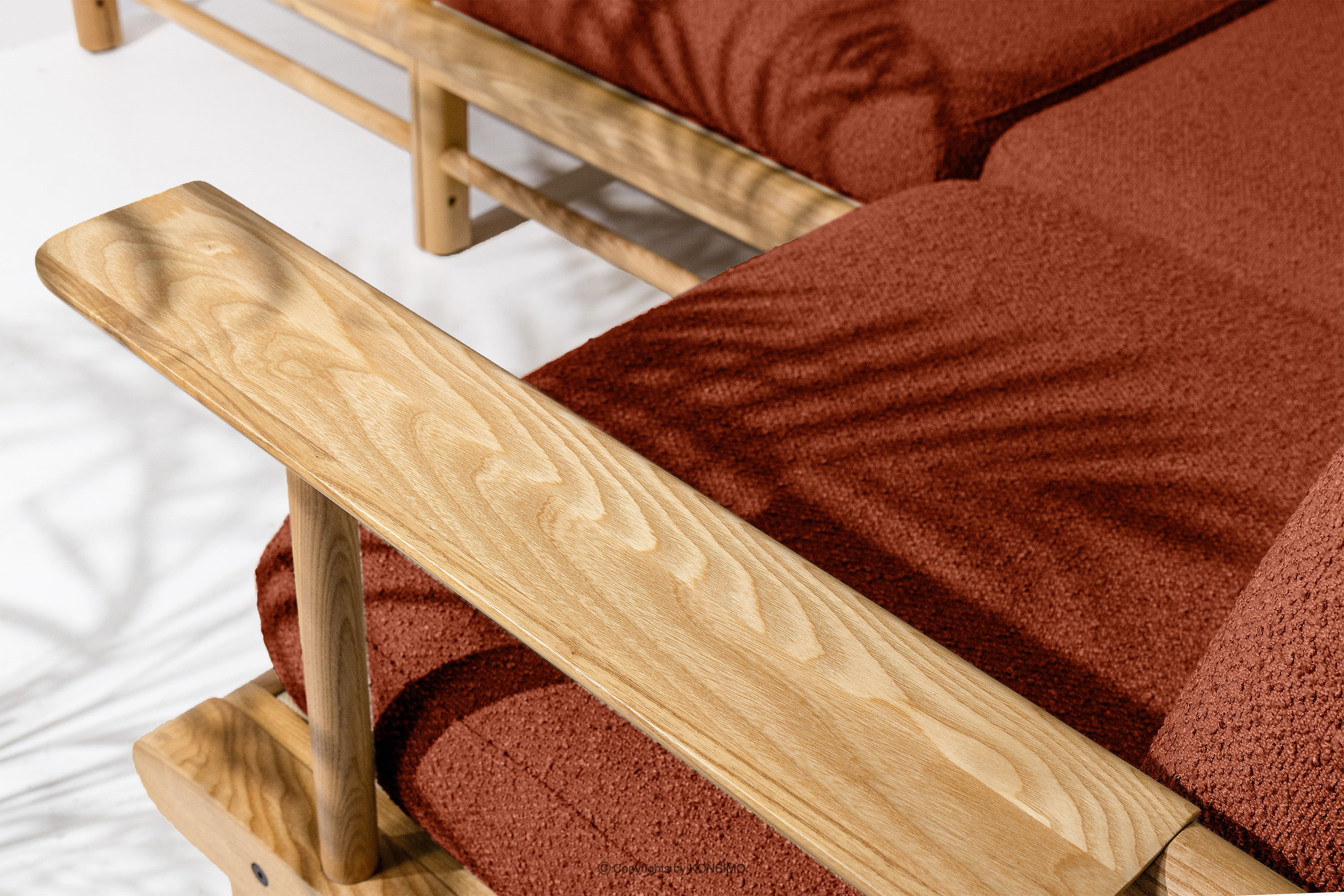 Das Ecksofa aus Massivholz im Boho-Stil orange links ist ein einzigartiges Produkt, das Ihren Raum verschönern wird. Die Sitz- und Rückenkissen sind mit hochwertigem PU-Schaumstoff für unvergleichlichen Komfort gefüllt. Der Stoffbezug aus 93% recyceltem Polypropylen und 7% Polyester ist nicht nur umweltfreundlich, sondern auch pflegeleicht - einfach mit einem feuchten Tuch abwischen.