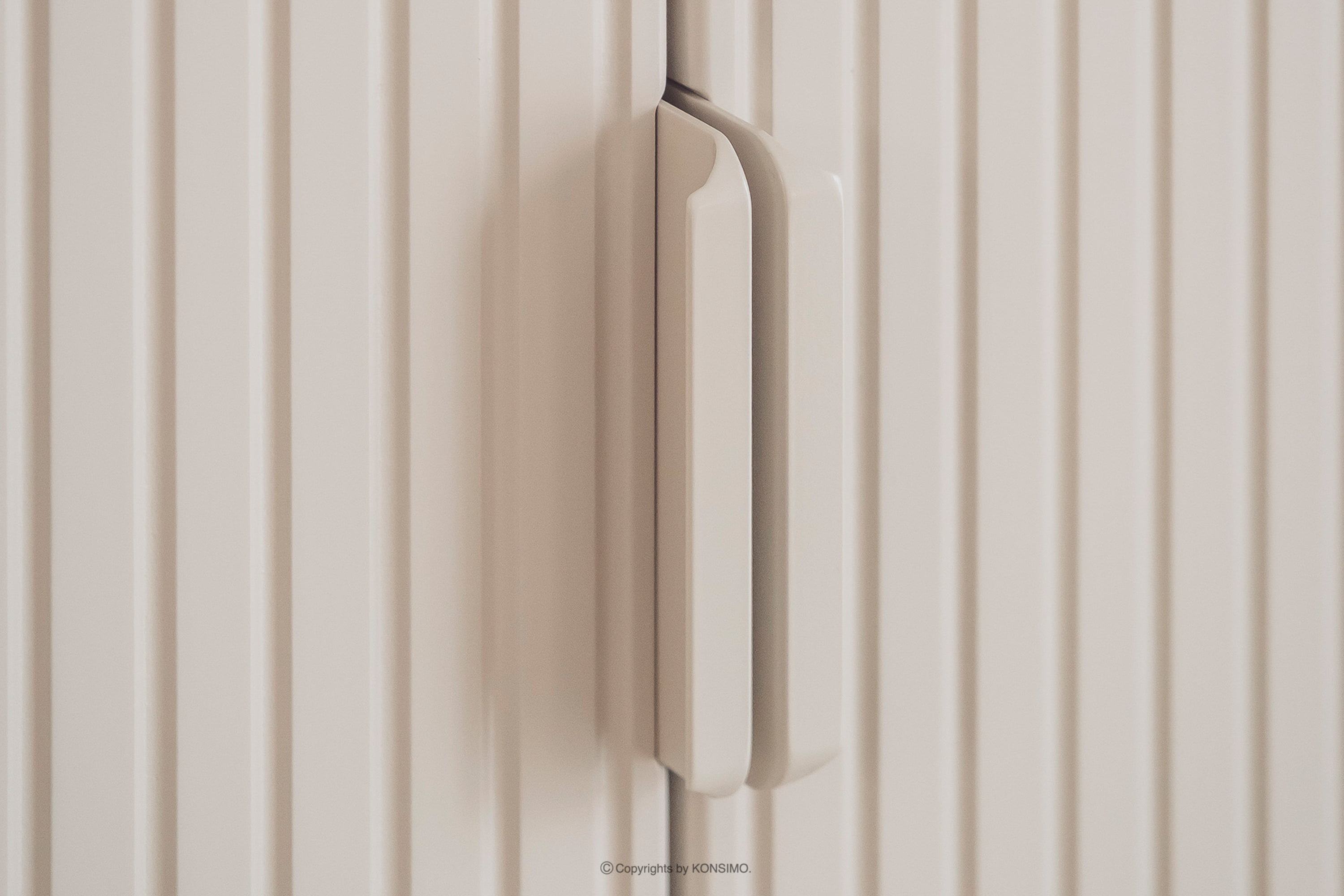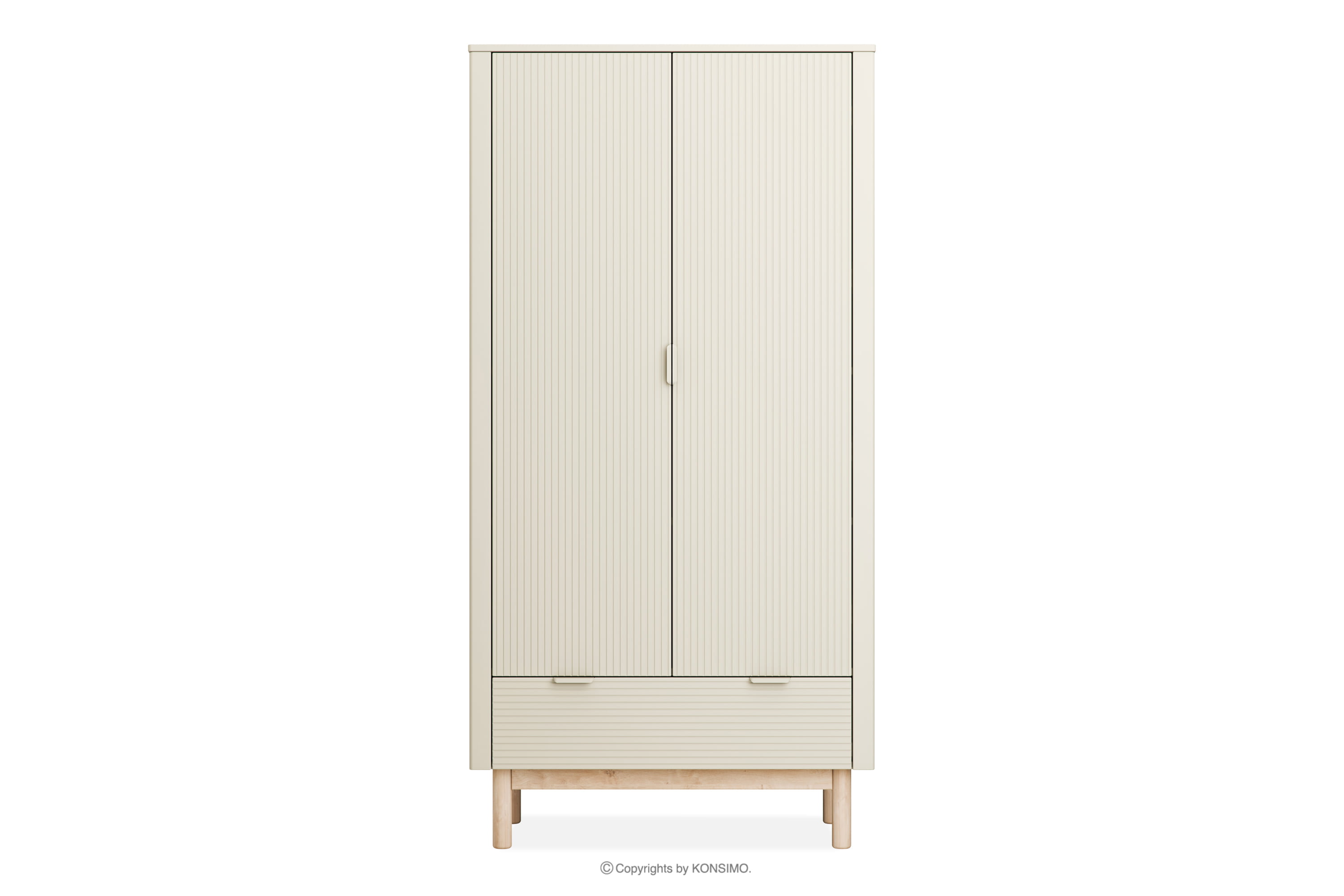 Der beigefarbene Kleiderschrank ist eine unverzichtbare Lösung für die Aufbewahrung von Babykleidung und -zubehör und vereint Funktionalität, Design und hochwertige Verarbeitung. Die Flügeltüren sind mit einem Soft-Close-Mechanismus ausgestattet, der ein sanftes und geräuschloses Öffnen und Schließen des Schranks ermöglicht, was besonders wichtig ist, wenn das Kind schläft. Die Kanten der sanft abgerundeten Ecksofas sorgen für zusätzliche Sicherheit bei der Benutzung, so dass die Gefahr von versehentlichen Verletzungen ausgeschlossen ist.