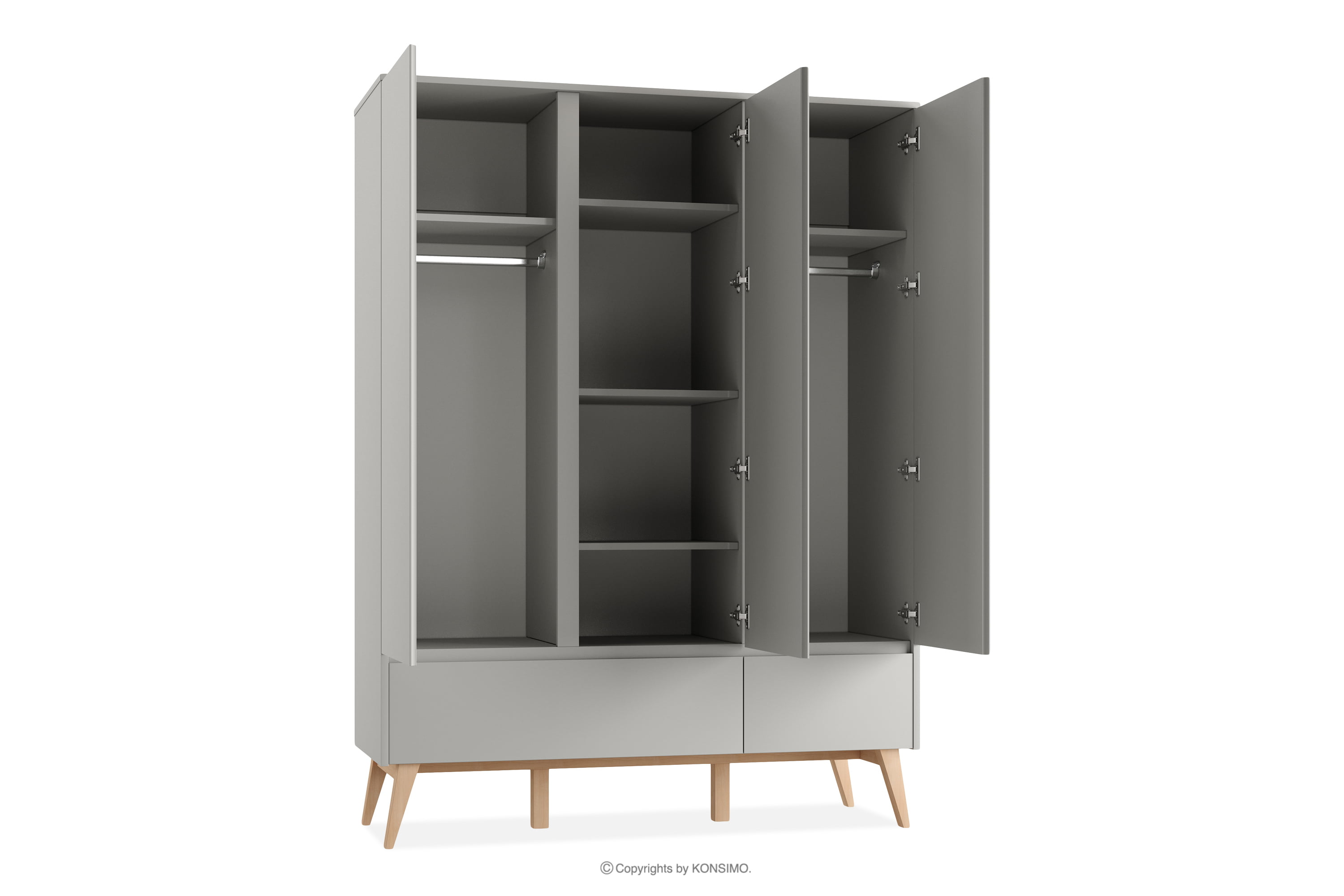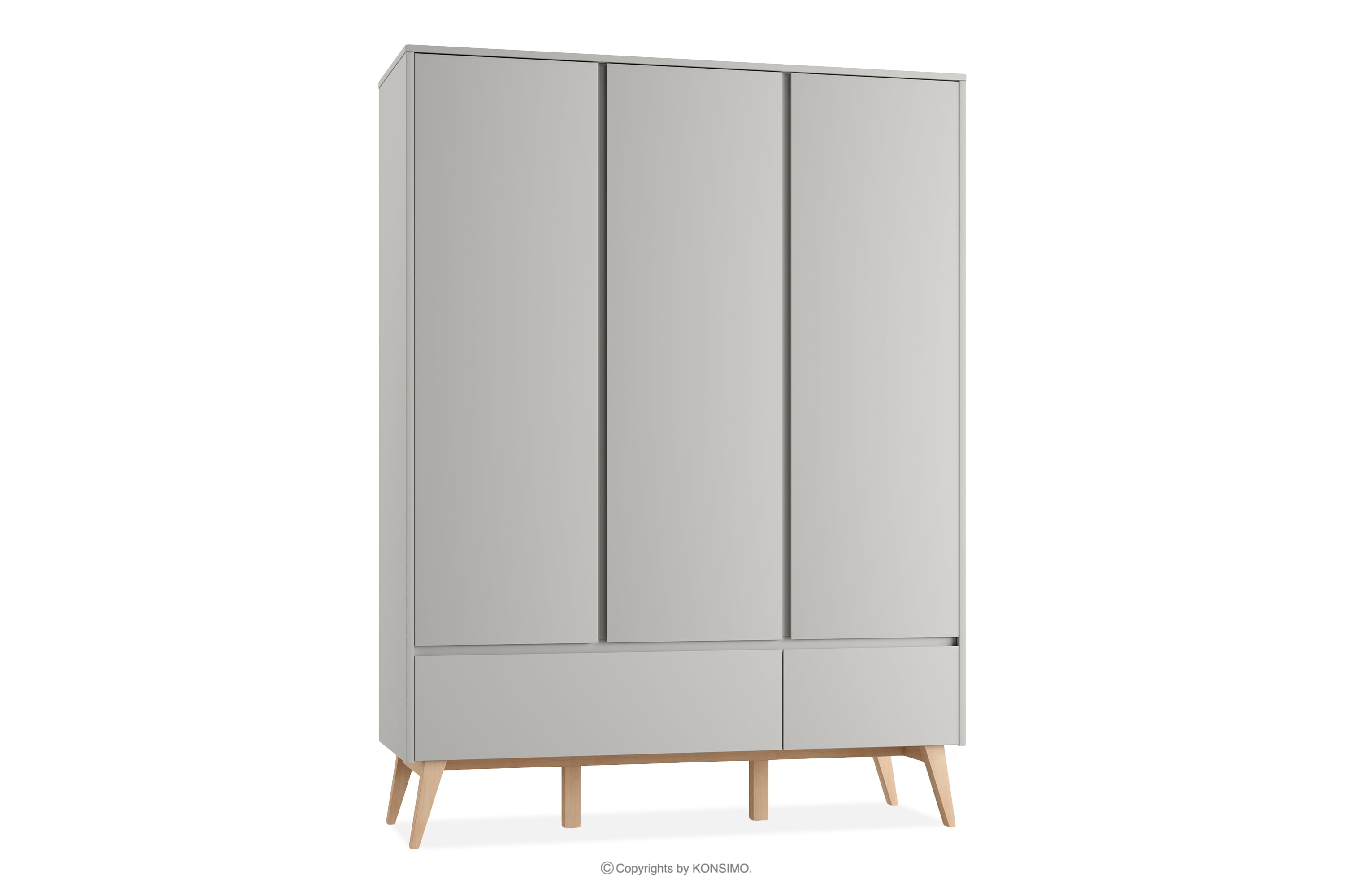 DAMBI Dreitüriger Kleiderschrank mit Schublade für Kinderzimmer grau
