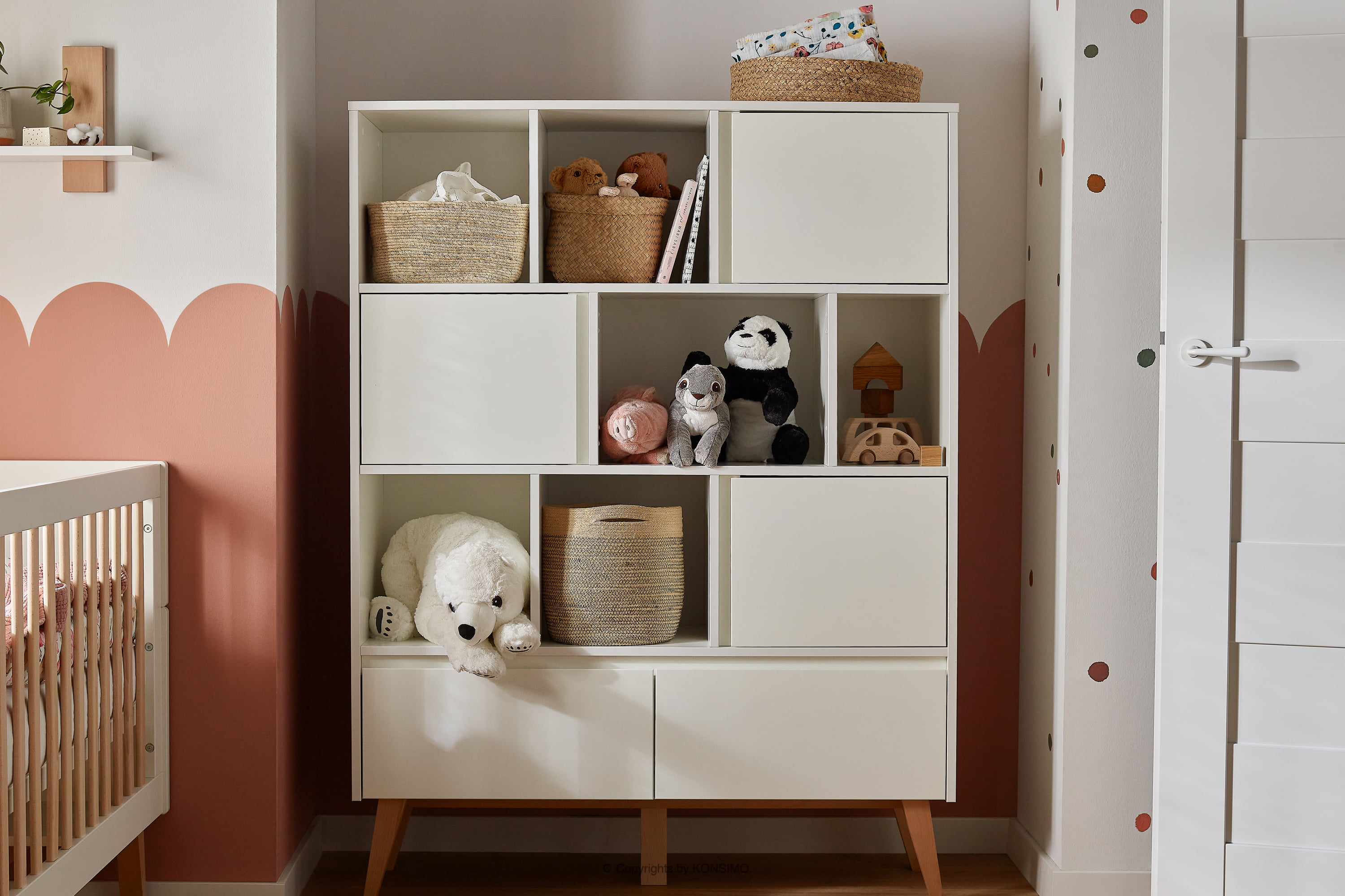 Das Kinderbuchregal ist eine perfekte Kombination aus Funktionalität und Ästhetik, die perfekt in das Zimmer Ihres Kindes passen wird. Der Korpus des Bücherregals ist aus hochwertigem MDF und laminierter Platte gefertigt, was eine lange Lebensdauer und Widerstandsfähigkeit gegen Beschädigungen gewährleistet, ideal für alle Aktivitäten der Kinder. Die 3 mm dicke HDF-Rückwand sorgt für die Stabilität und Festigkeit der gesamten Struktur und macht das Regal nicht nur ästhetisch ansprechend, sondern auch sicher für Ihr Kind.