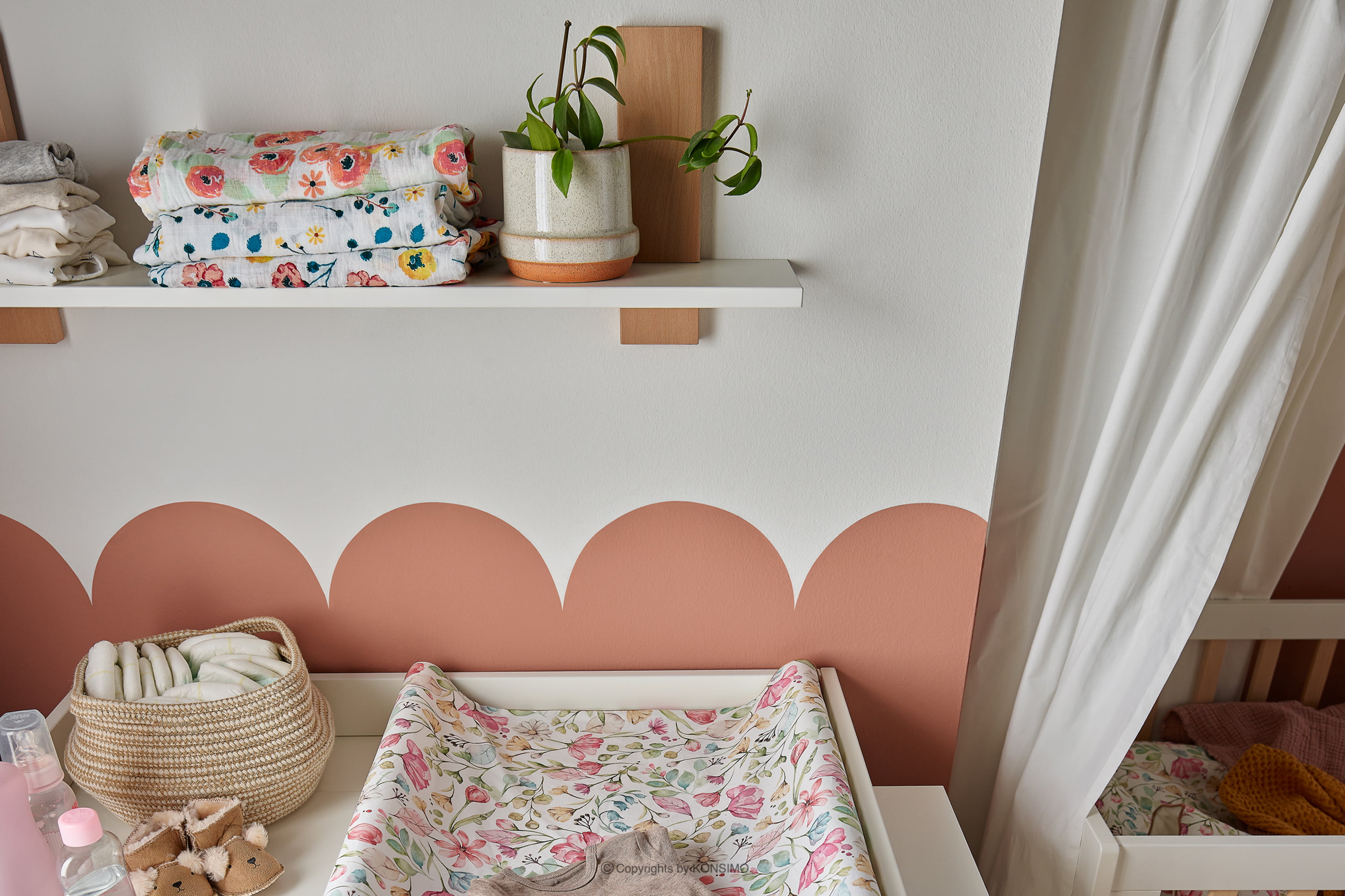 Das Wandregal ist die perfekte Lösung für die Aufbewahrung kleiner Gegenstände und die Dekoration des Kinderzimmers. Sein Korpus aus laminierter Platte und massivem Buchenholz garantiert Langlebigkeit und leichte Reinigung, was besonders im Kinderzimmer wichtig ist. Dank seiner robusten Konstruktion ist das Einlegeböden stabil und zuverlässig, so dass es sicher für die Aufbewahrung von Lieblingsspielzeug, Büchern oder anderen kleinen Gegenständen ist.