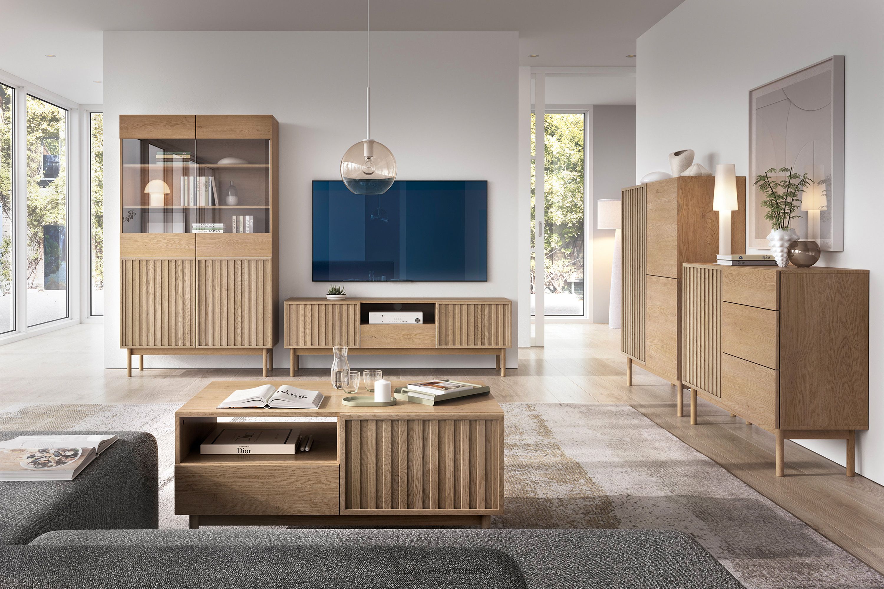 Dieser TV-Schrank sieht klasse aus! Eichenholz fügt sich gut in mein Wohnzimmer ein.