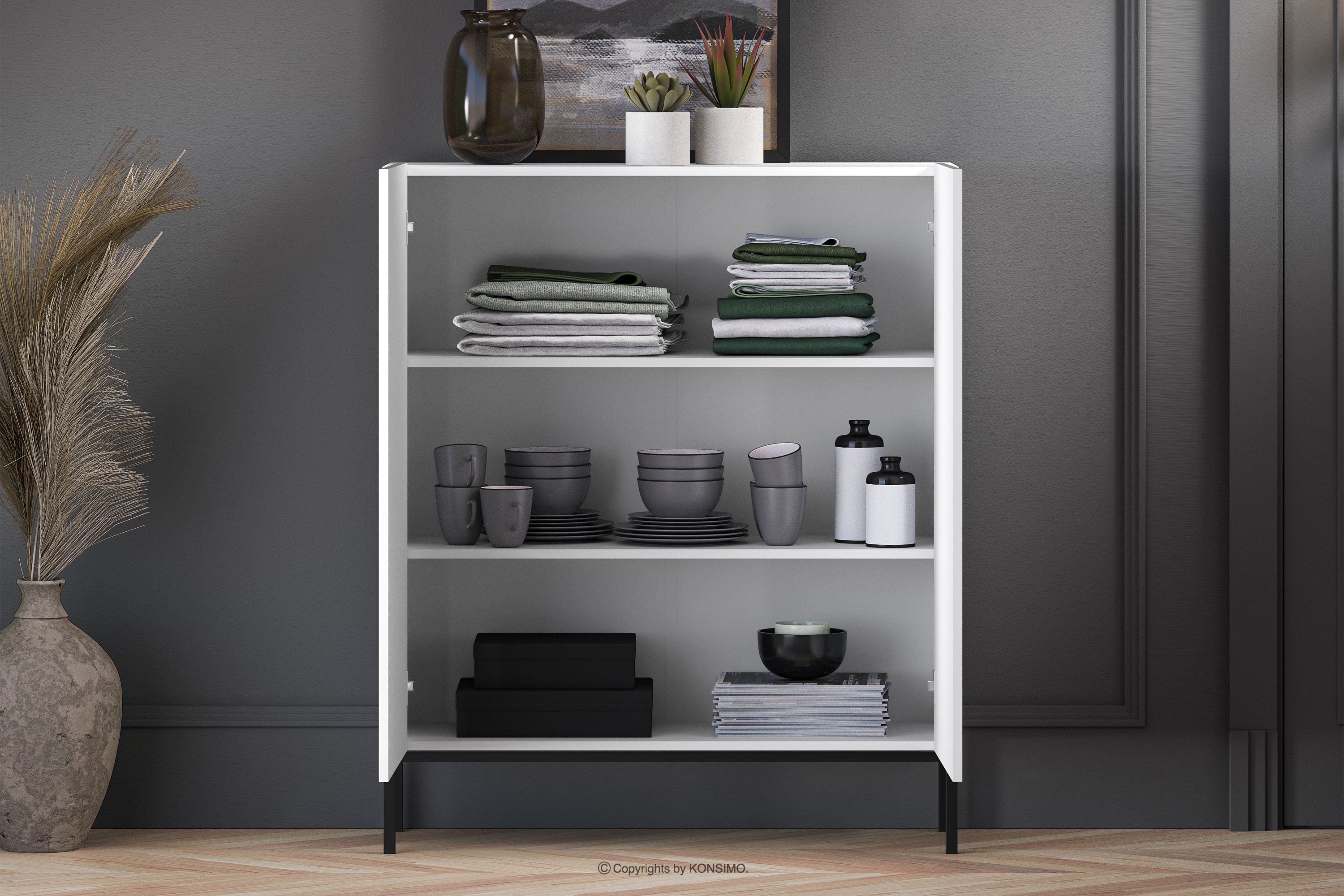 NEBRO Mehr aus der Kollektion Elegante weiße Kommode auf schwarzen Beinen- Farbe weiß/schwarz