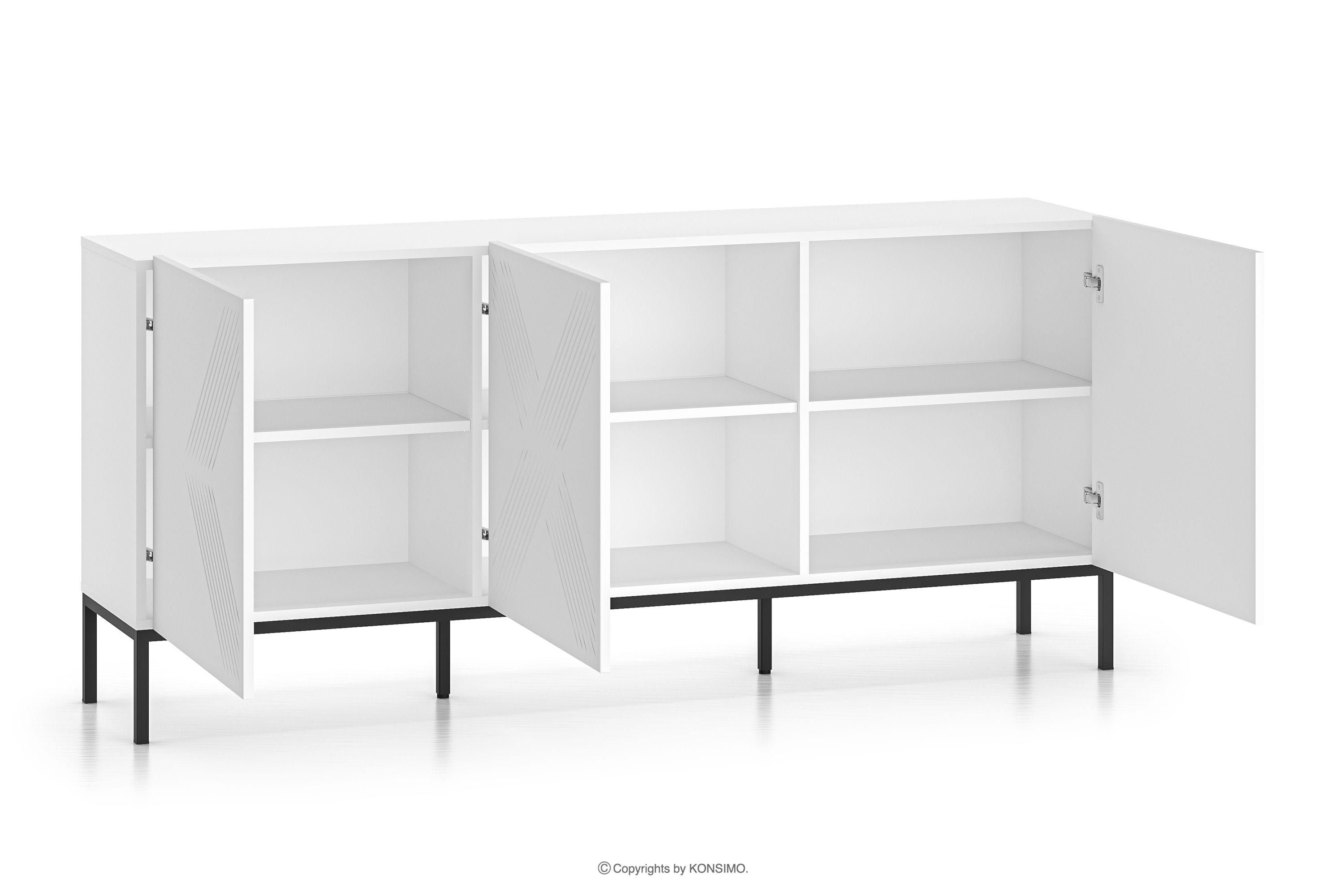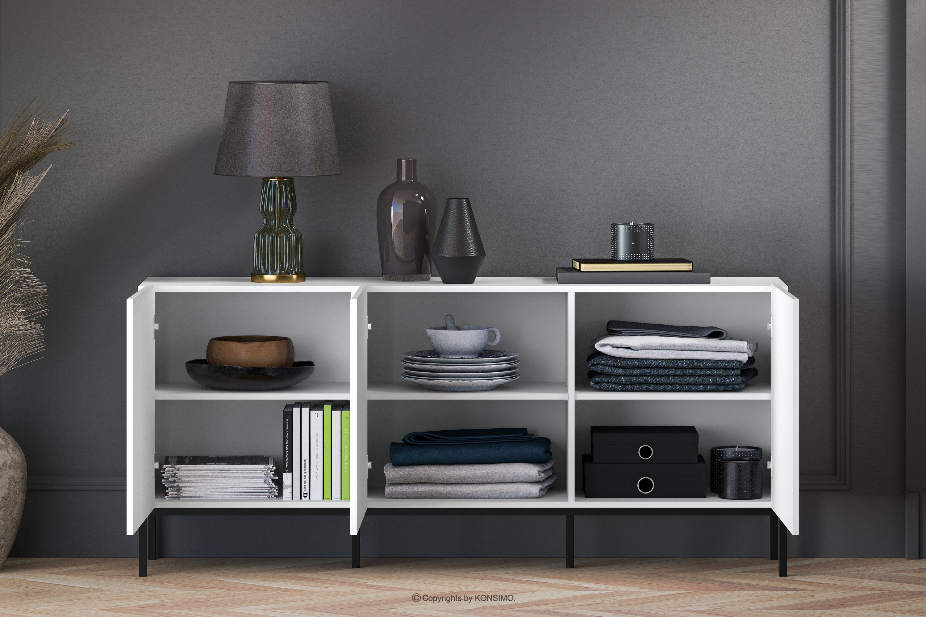 NEBRO Mehr aus der Kollektion Elegante weiße dreitürige Kommode auf schwarzen Beinen- Farbe weiß/schwarz