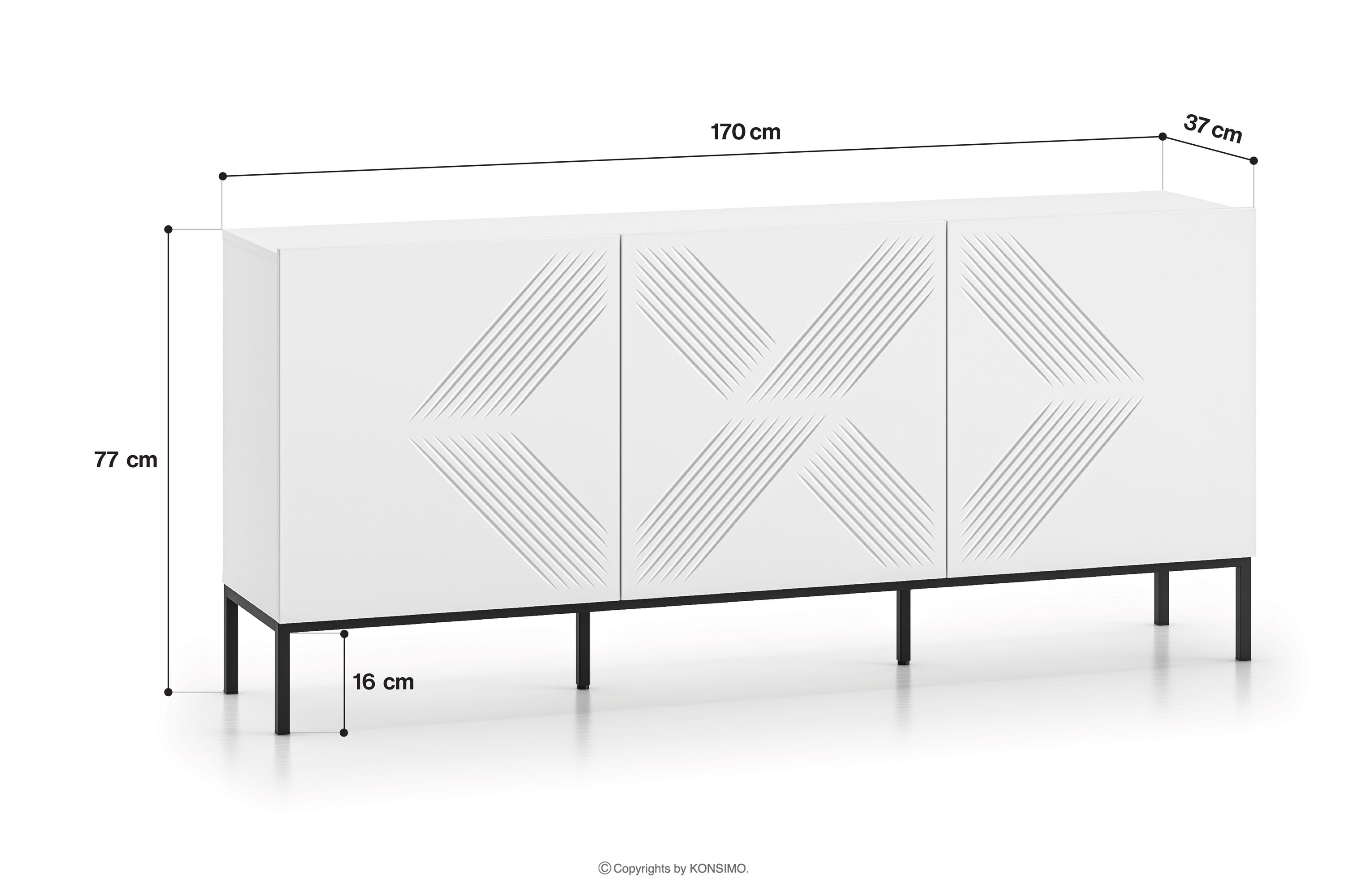 für das Produkt Elegante weiße dreitürige Kommode auf schwarzen Beinen