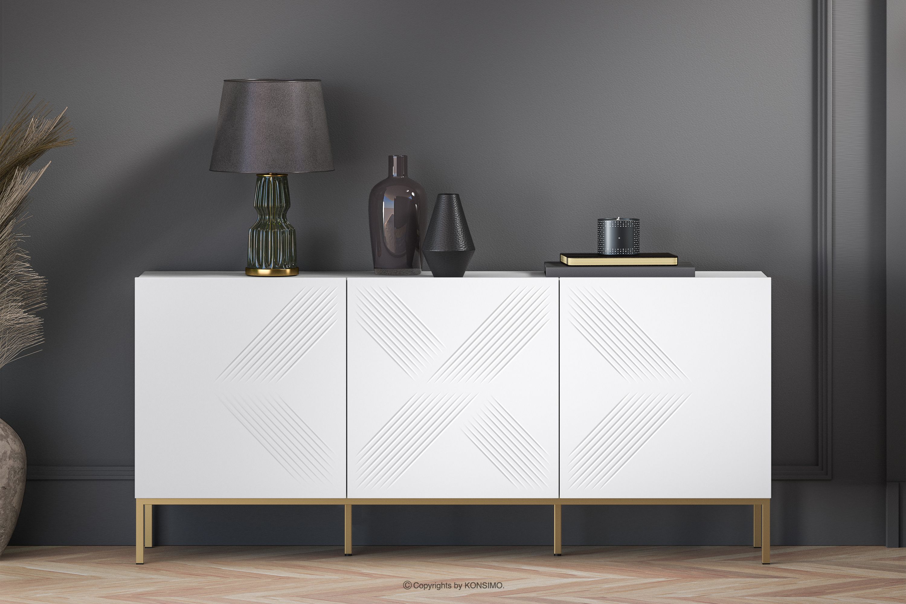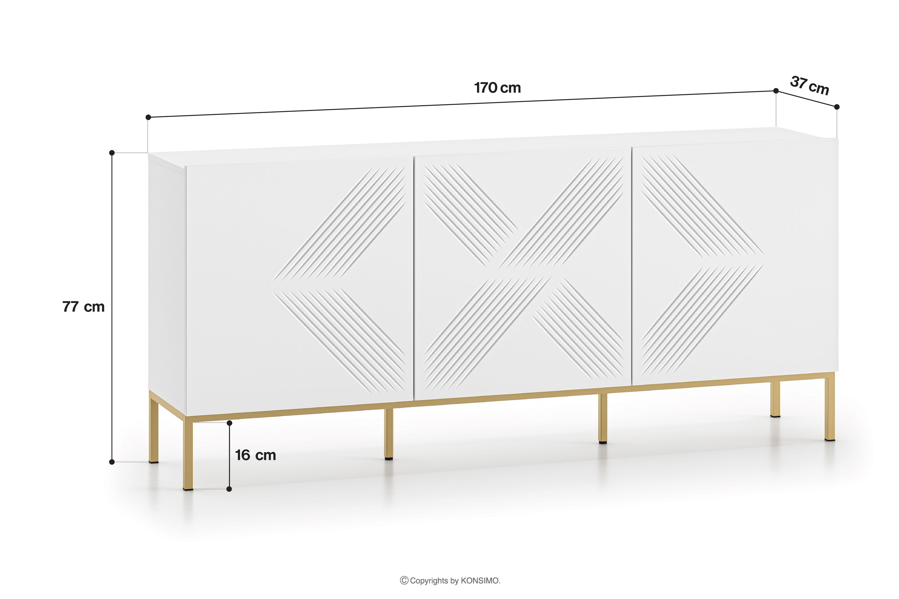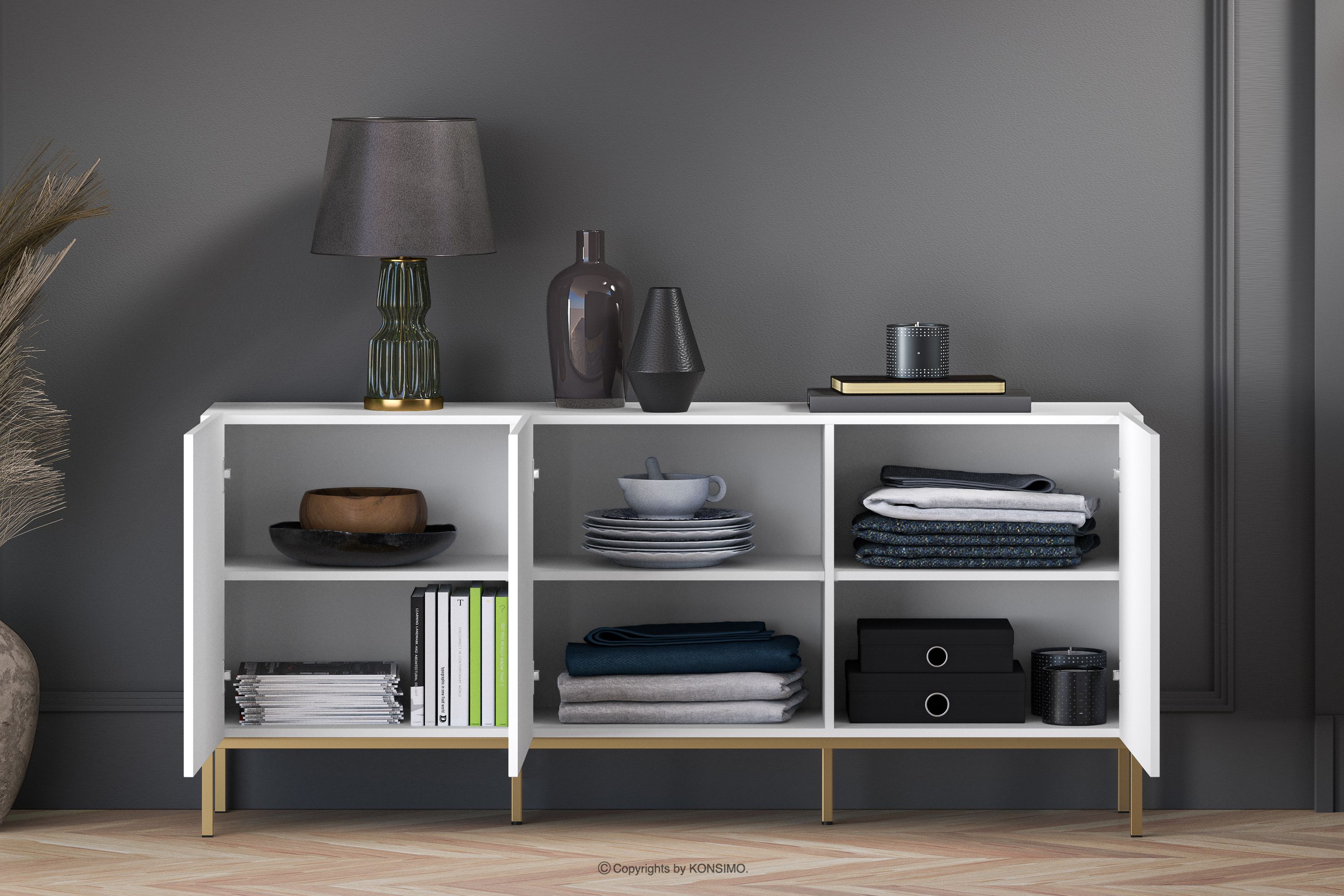 NEBRO Mehr aus der Kollektion Elegante weiße dreitürige Kommode auf goldenen Beinen- Farbe weiß/gold