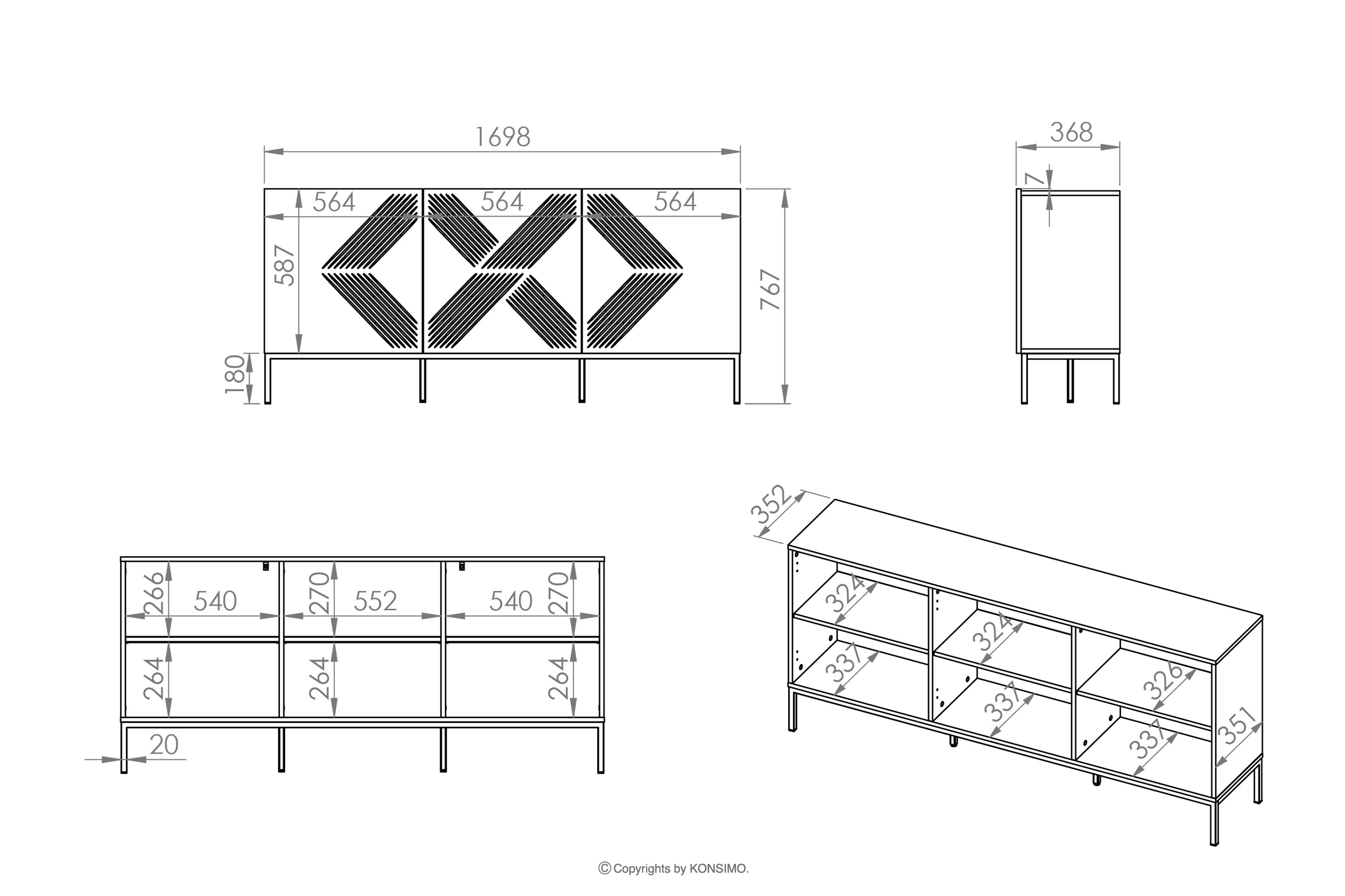 für das Produkt Elegante weiße dreitürige Kommode auf goldenen Beinen