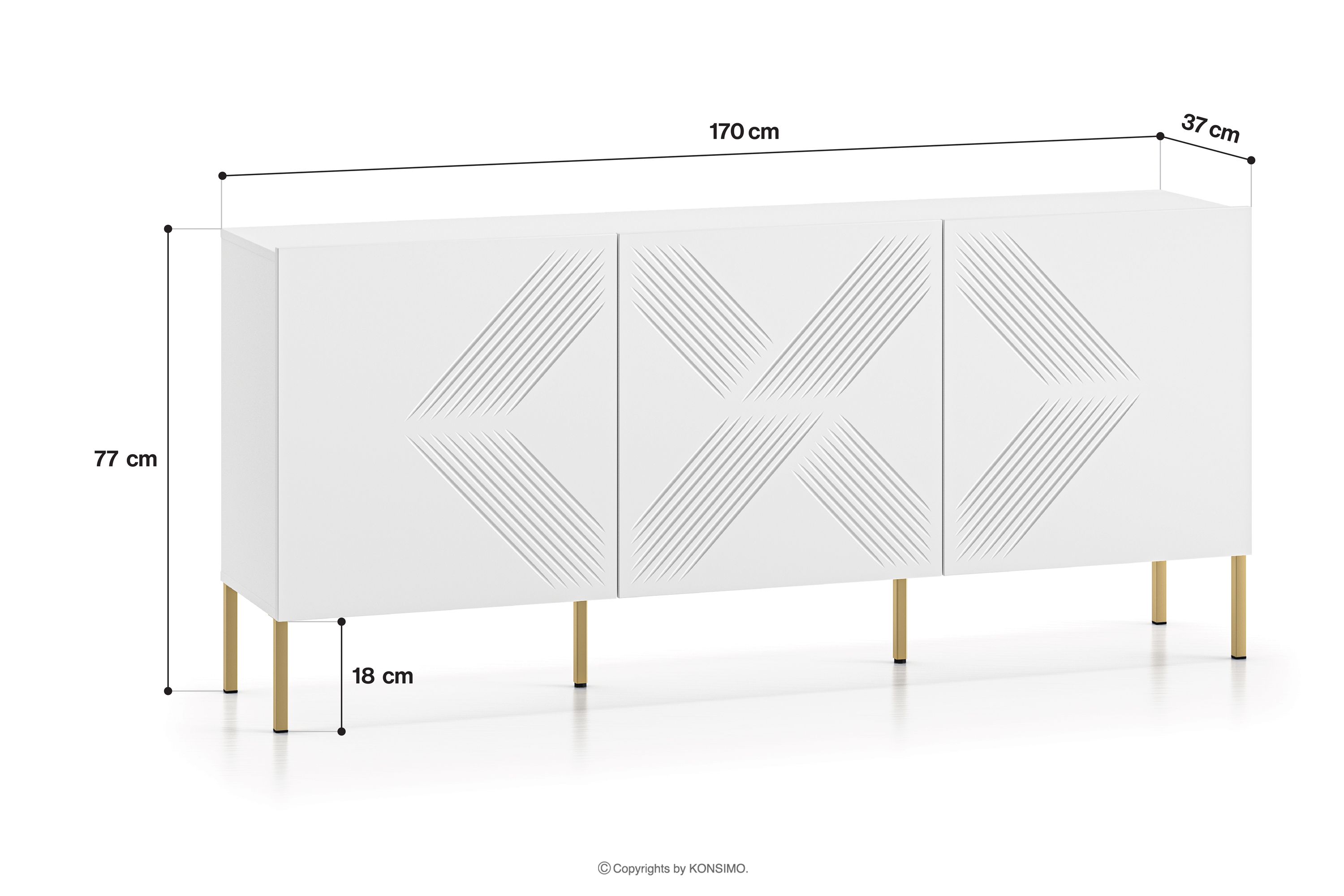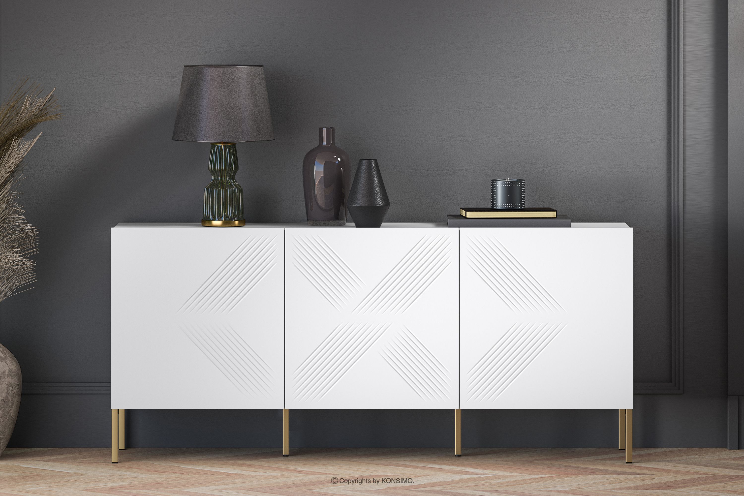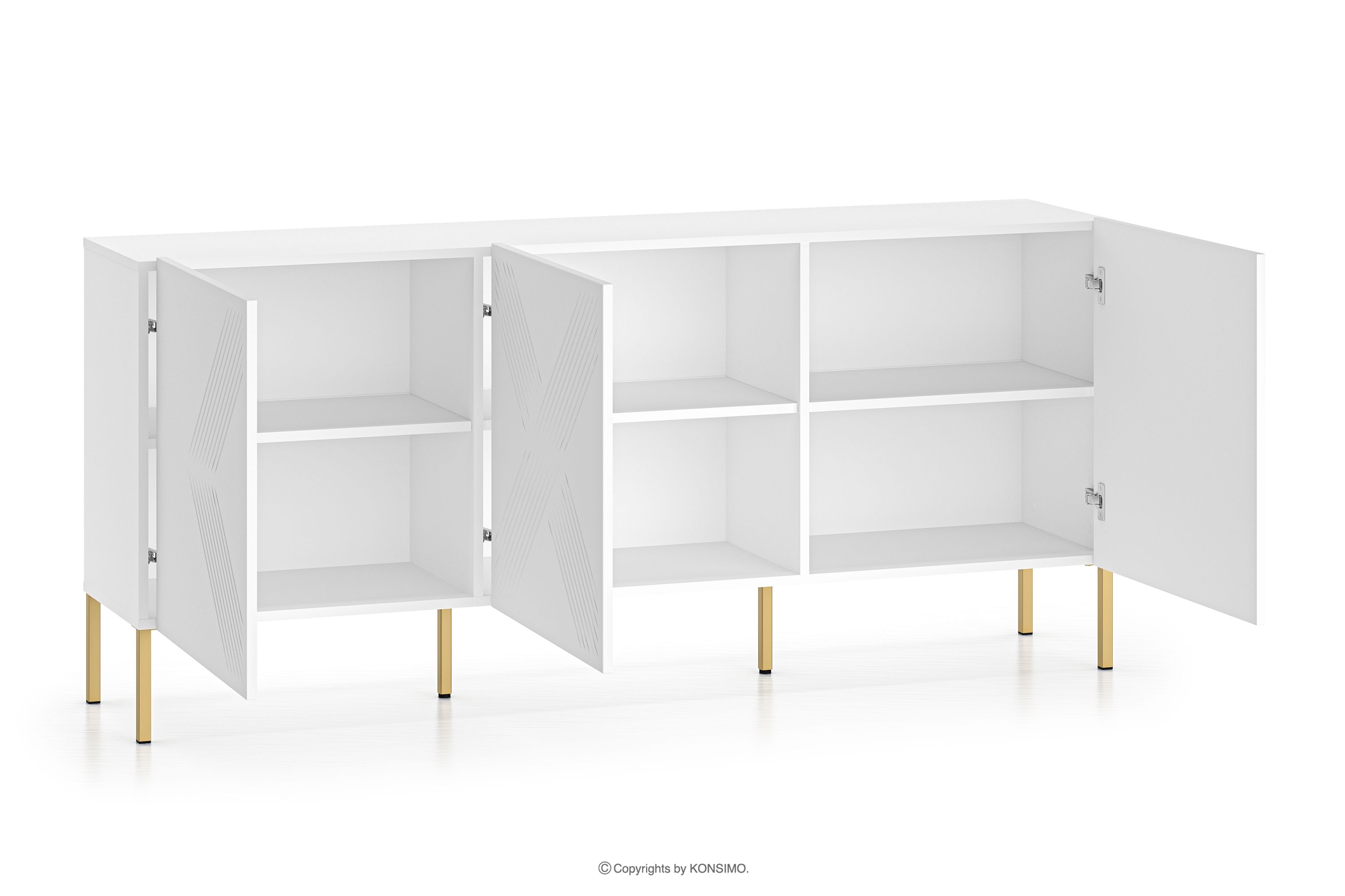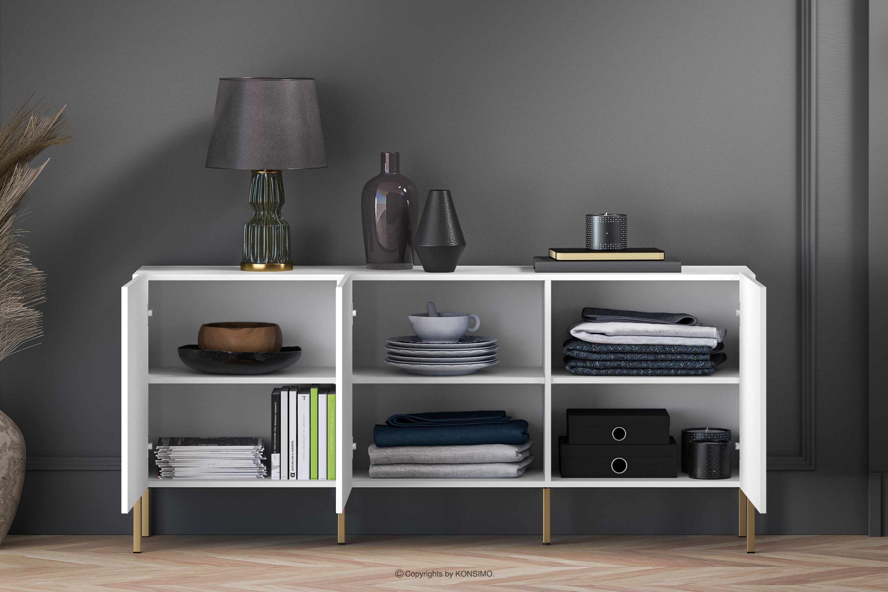 NEBRO Mehr aus der Kollektion Weiße dreitürige Kommode auf goldenen Beinen- Farbe weiß/gold