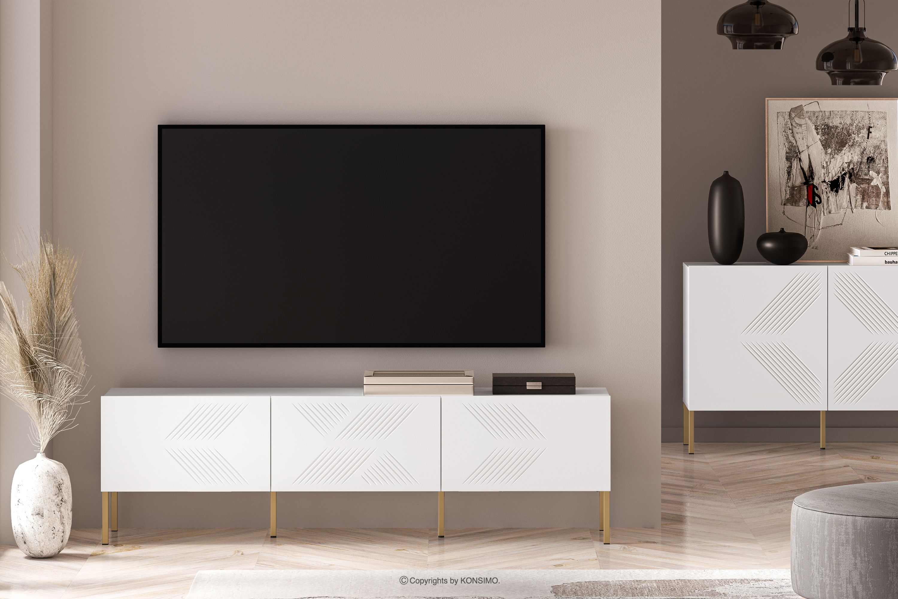 NEBRO Mehr aus der Kollektion TV-Schrank elegant auf goldenen Beinen- Farbe weiß/gold