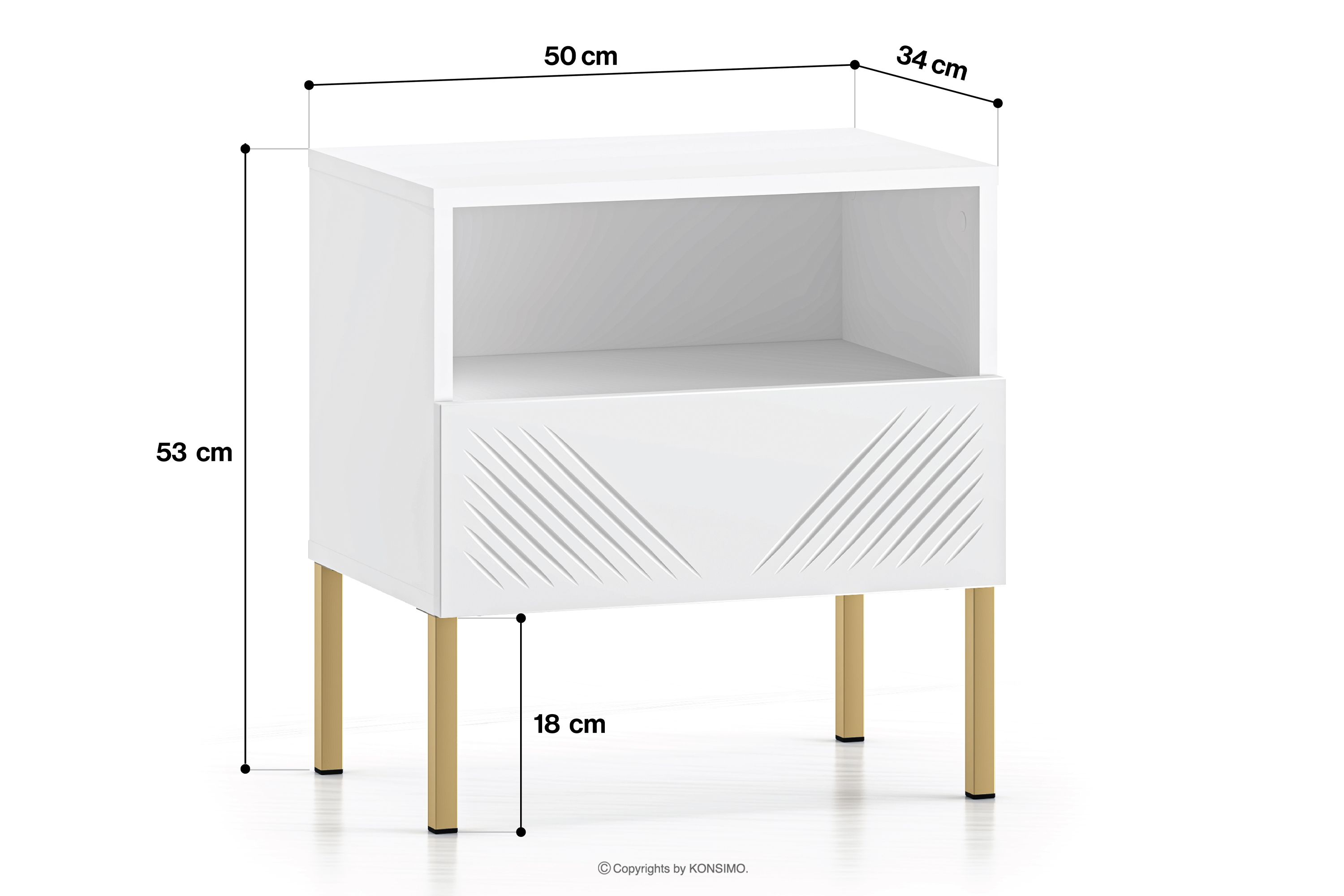 NEBRO Mehr aus der Kollektion Nachttisch elegant auf goldenen Beinen- Farbe weiß/gold