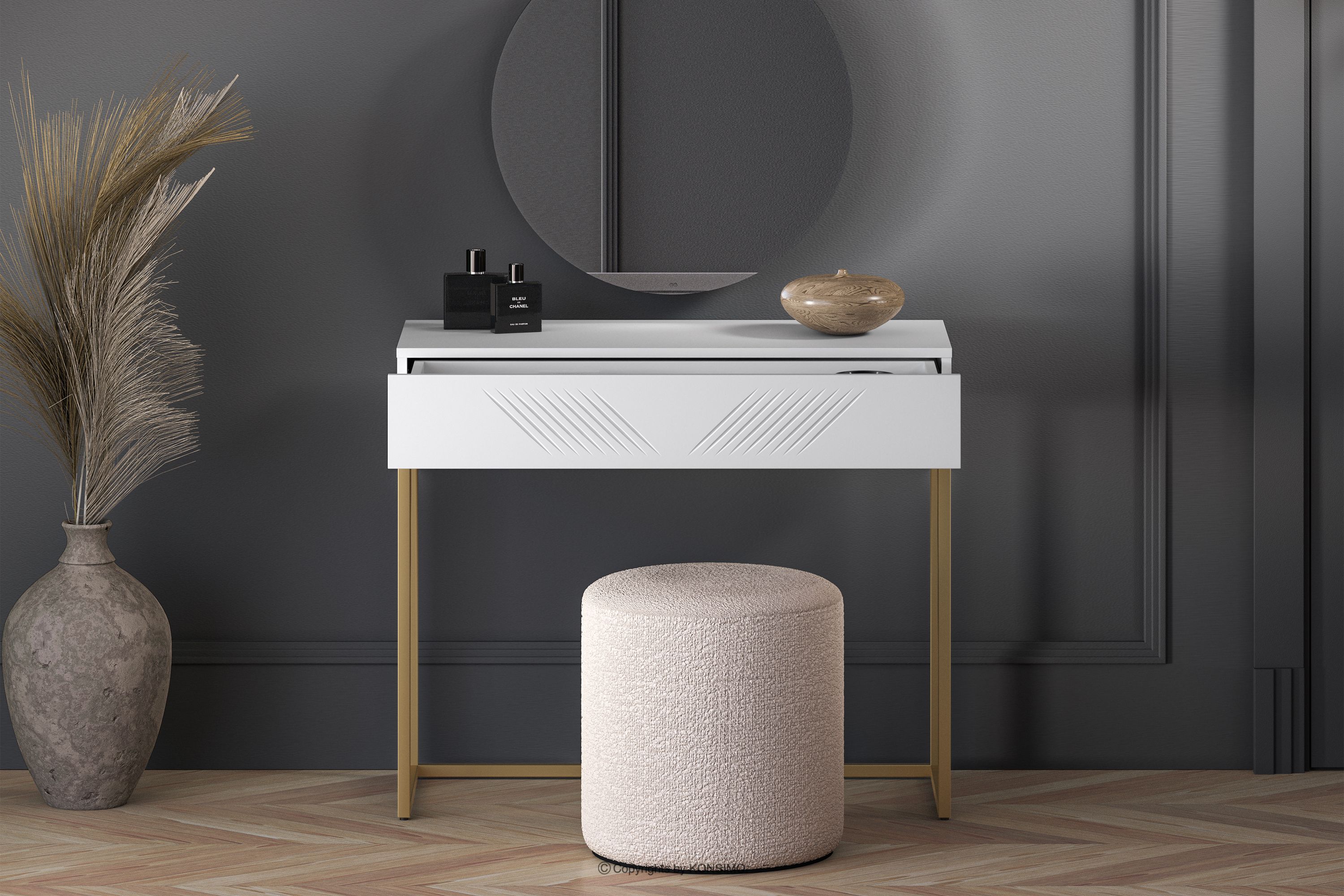 NEBRO Mehr aus der Kollektion Weißer Schreibtisch im eleganten Stil auf goldenen Beinen- Farbe weiß/gold