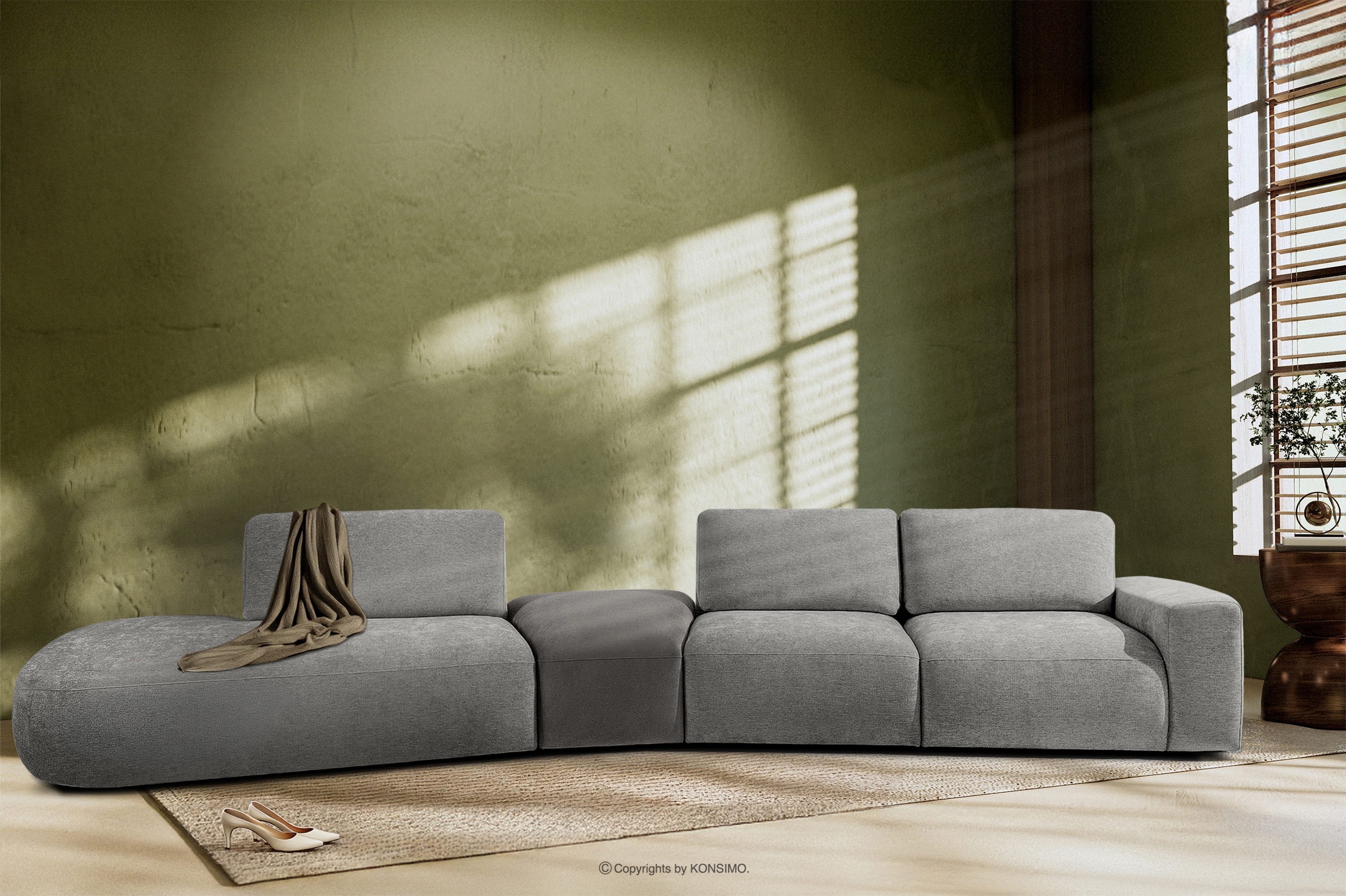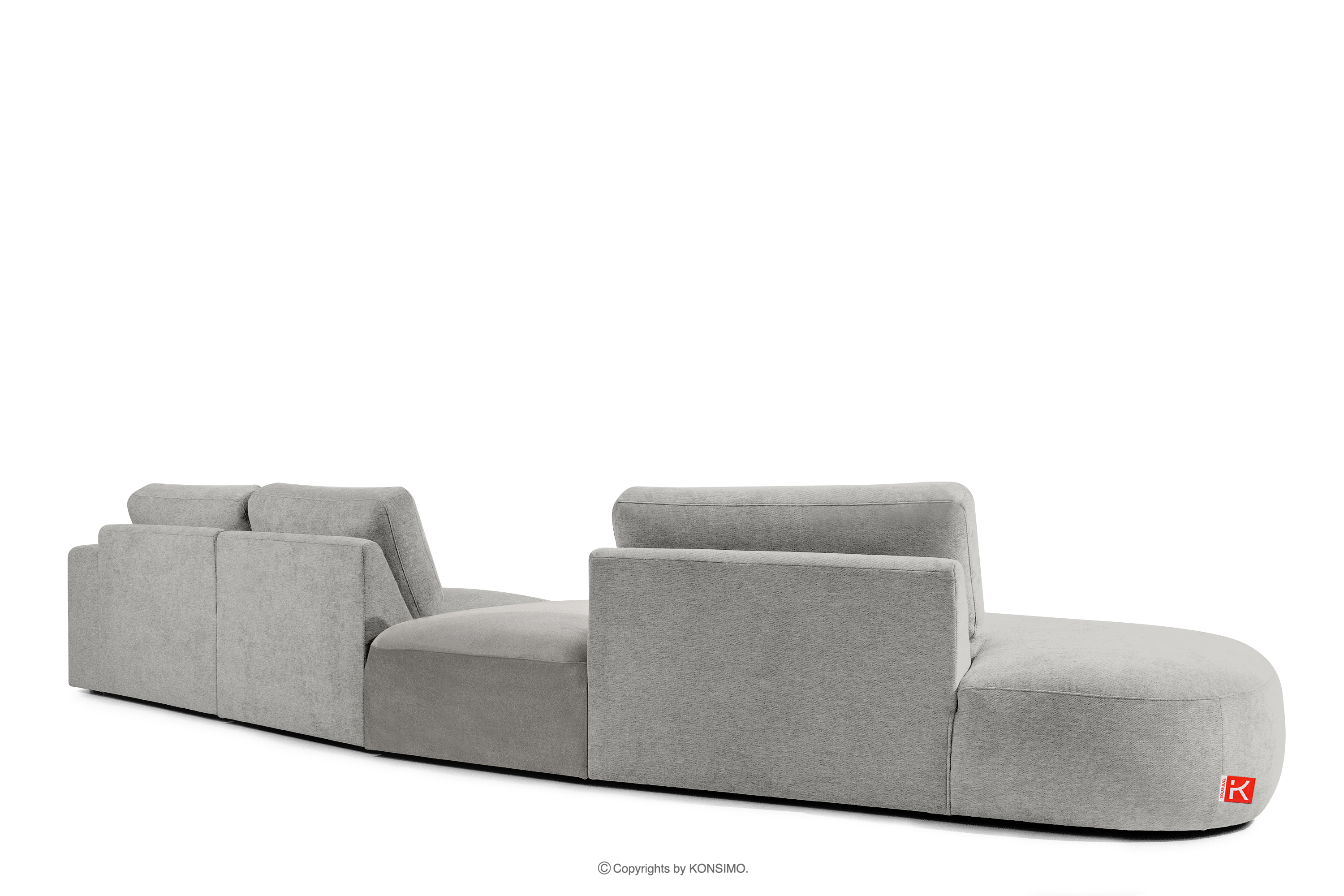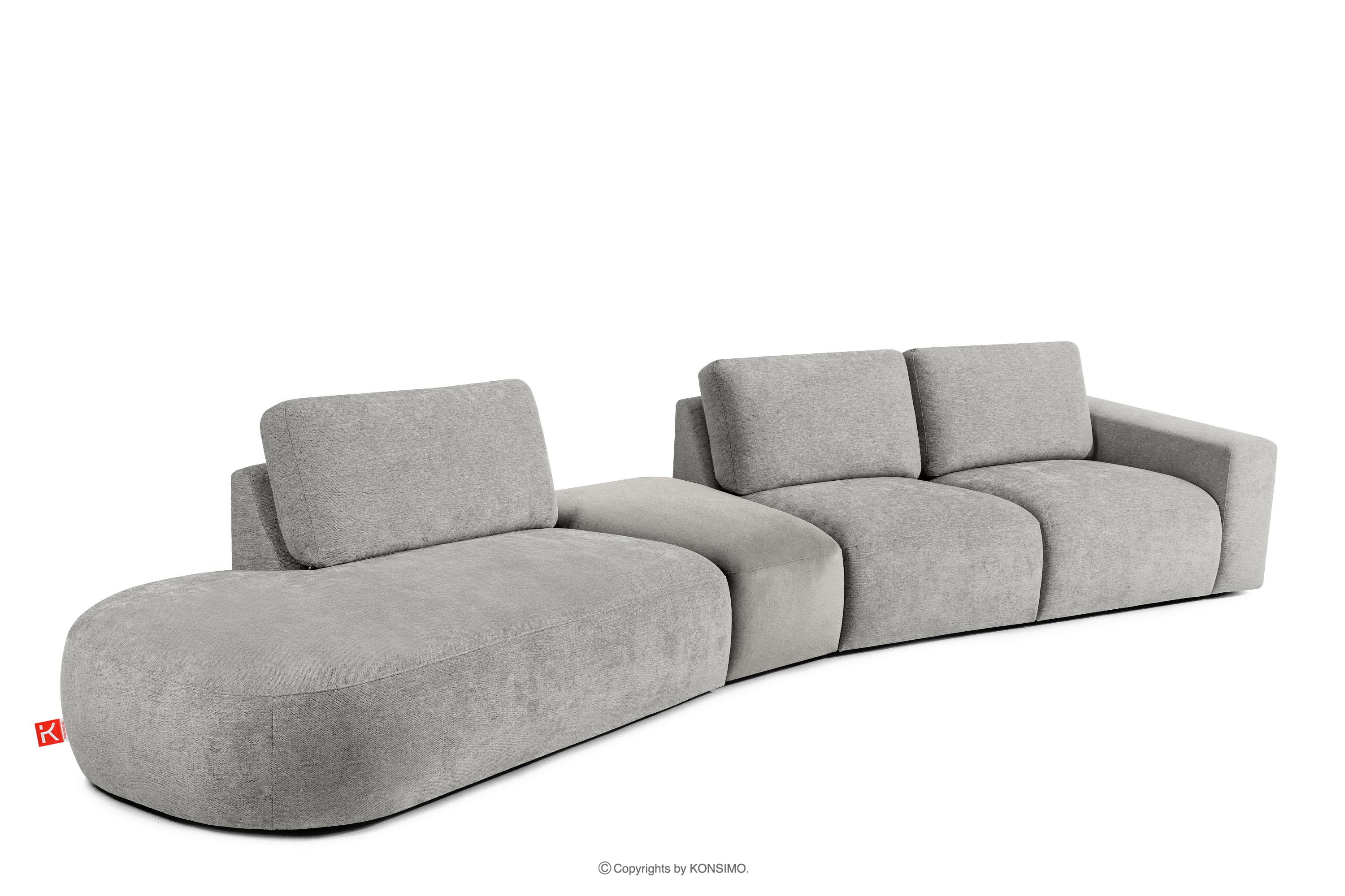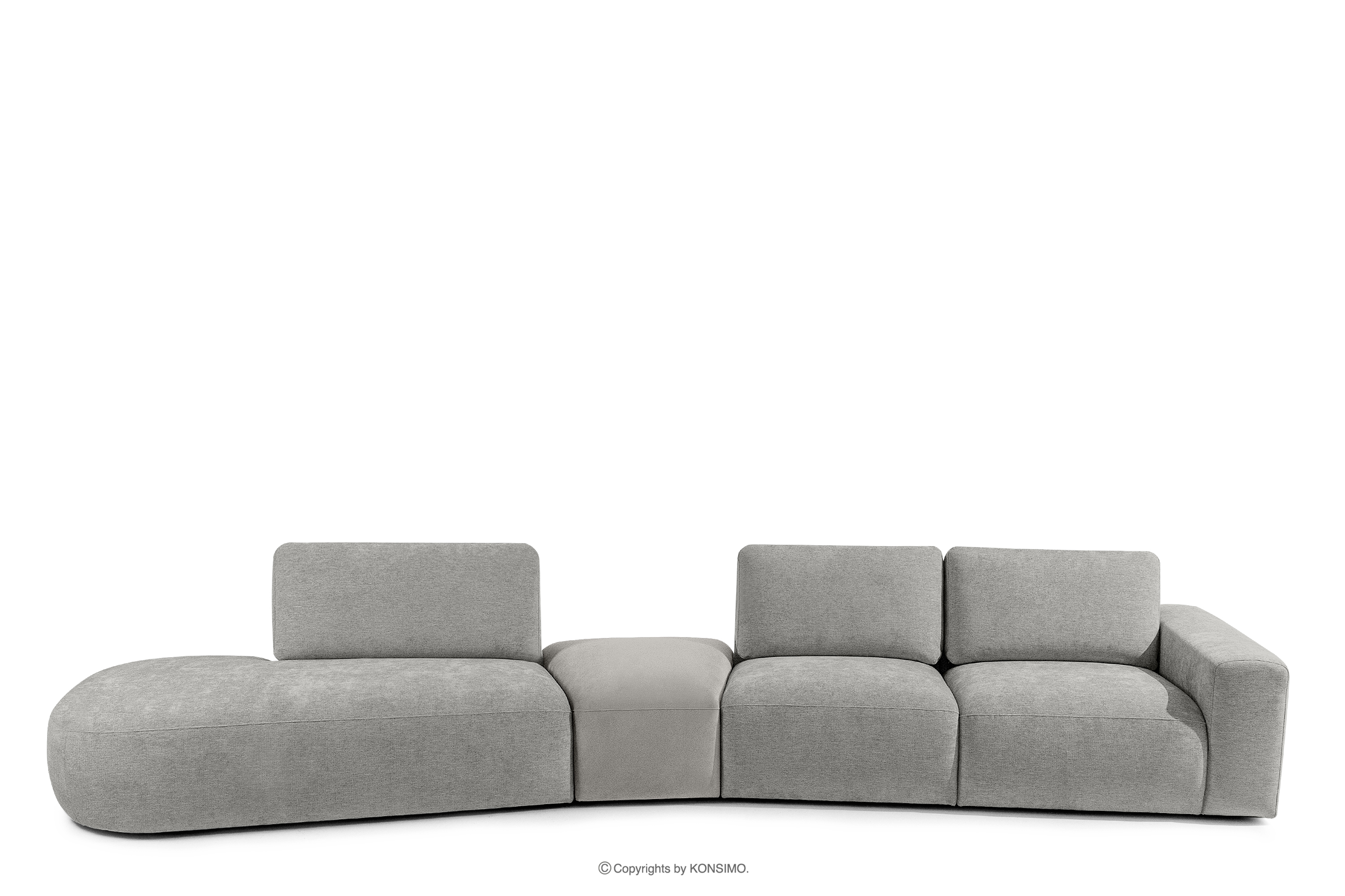ZUCCO Großes Ecksofa für Wohnzimmer Chenille/Velours hellgrau links