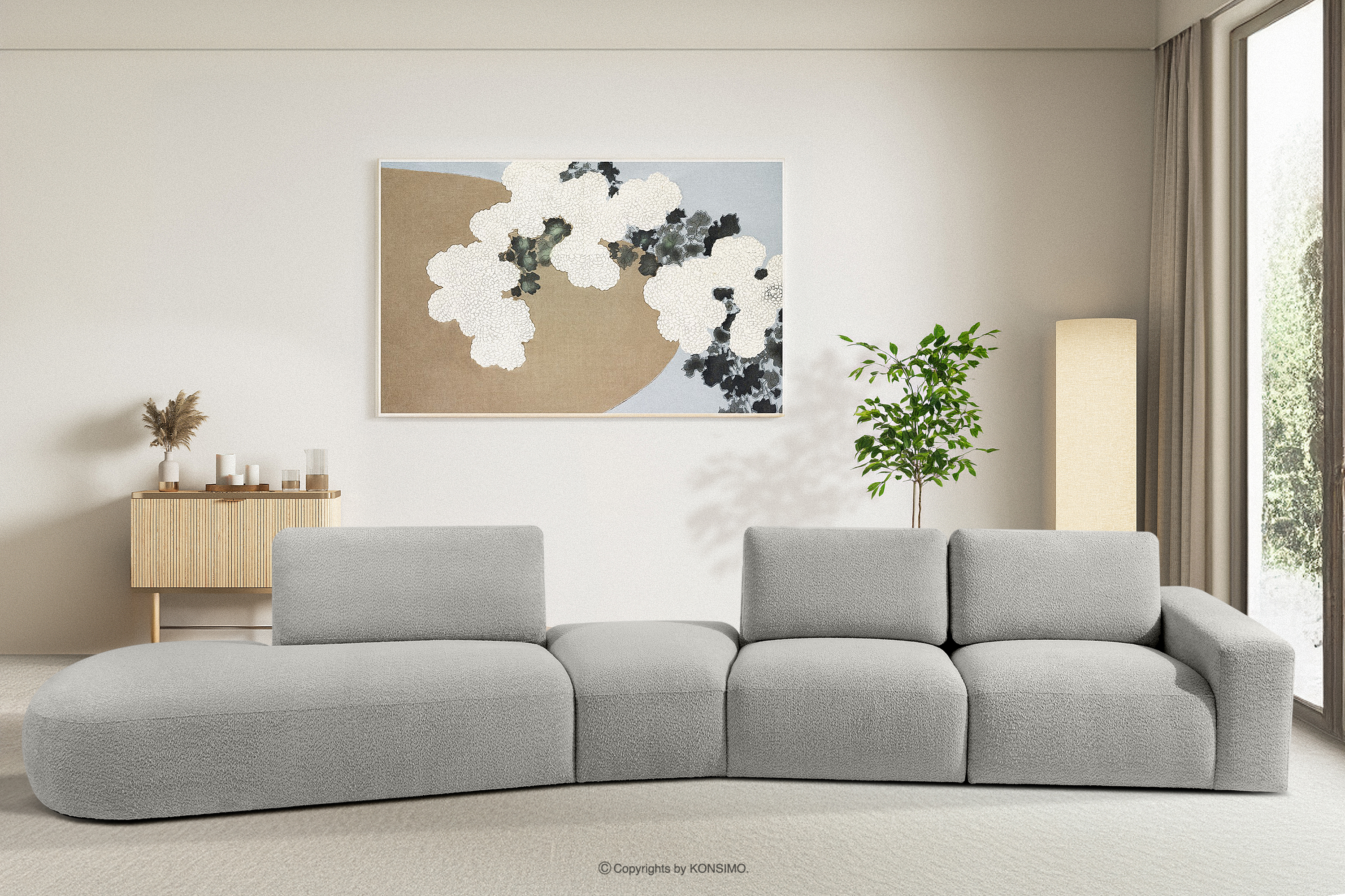ZUCCO Mehr aus der Kollektion Großes Ecksofa für das Wohnzimmer Boucle helles Eschenholz links- Farbe hell aschfahl