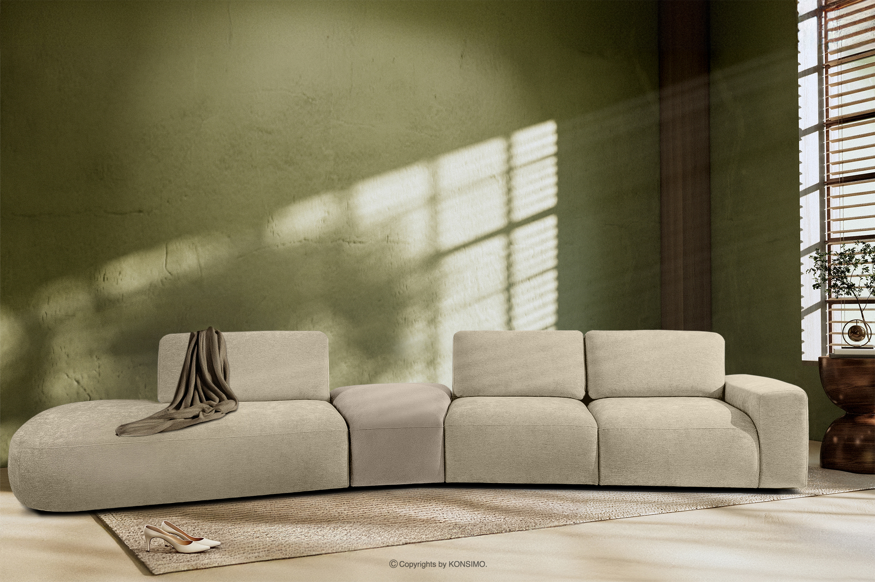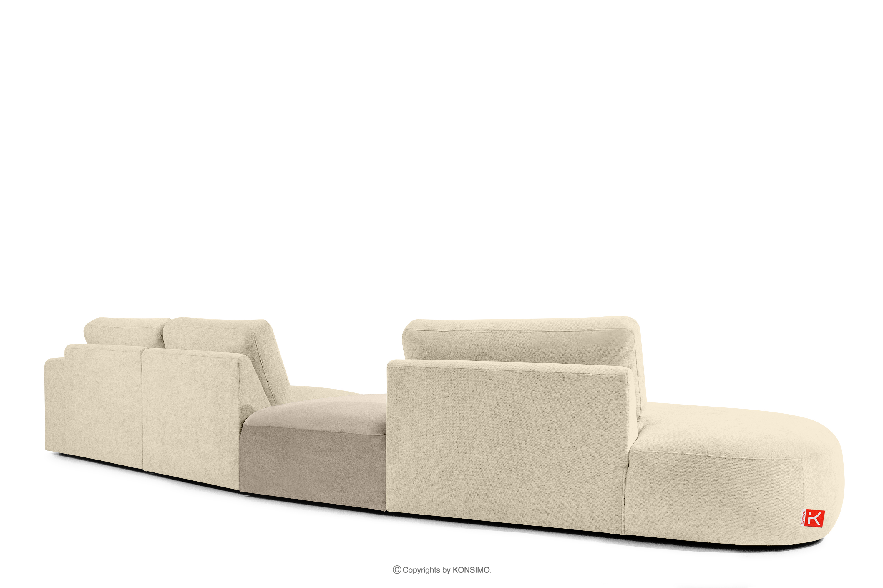 Großes Ecksofa links aus Chenille/Velours-Stoff cremefarben