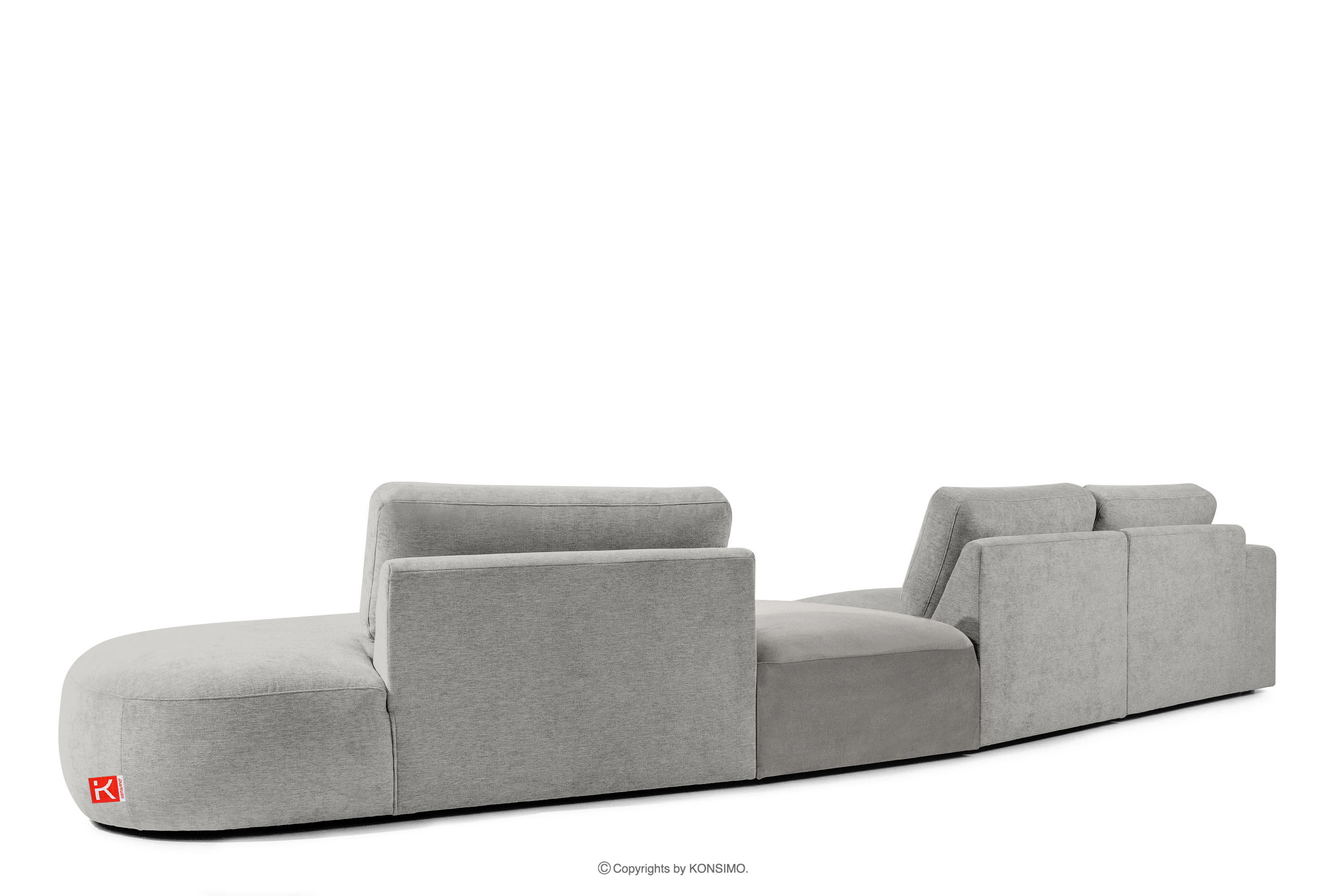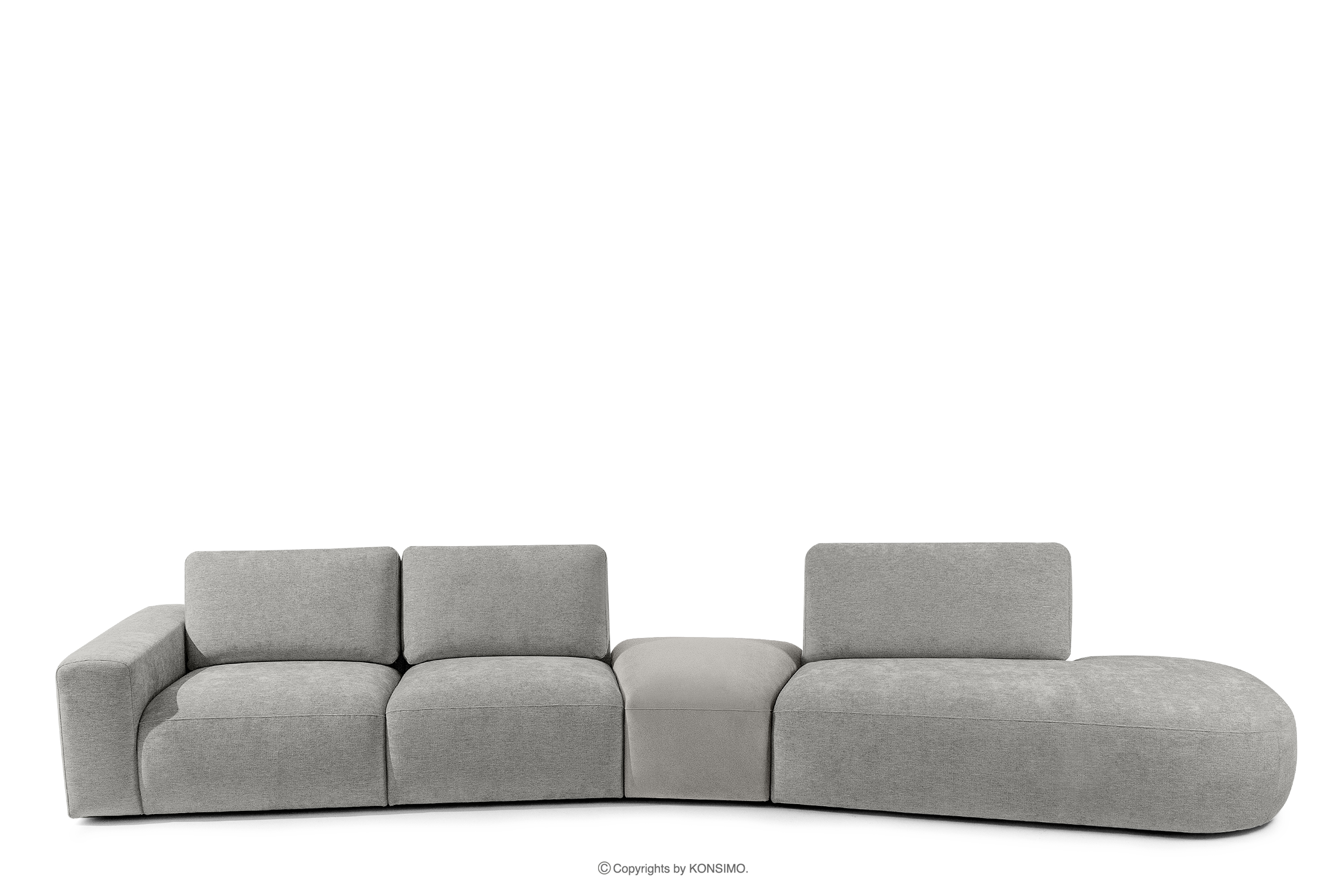 Ecksofa rechts im oragnischen Still aus Chenille/Velours-Stoff hellgrau