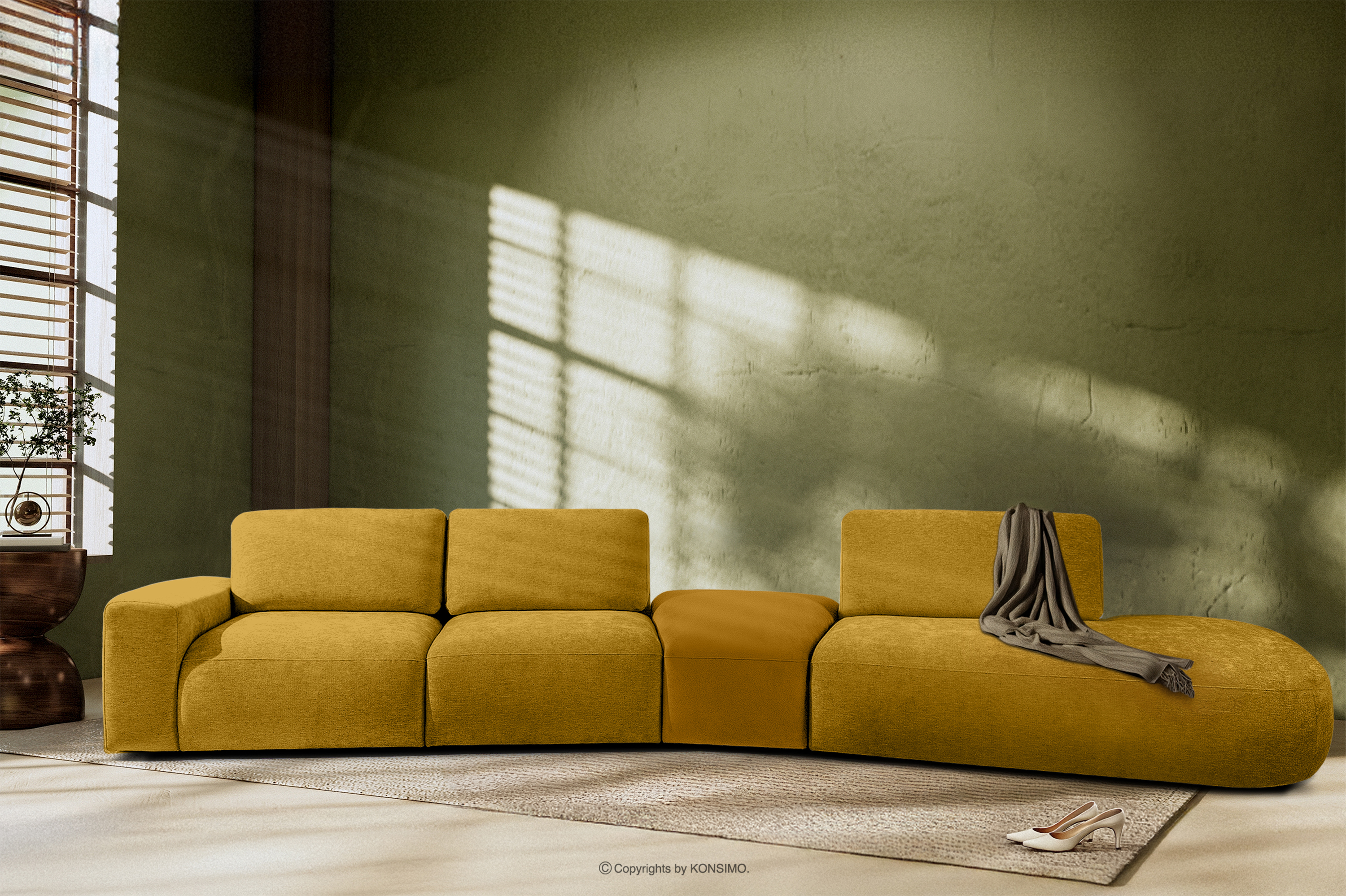 Lounge-Ecksofa rechts im organischen Stil aus Chenille/Velours-Stoff gelb