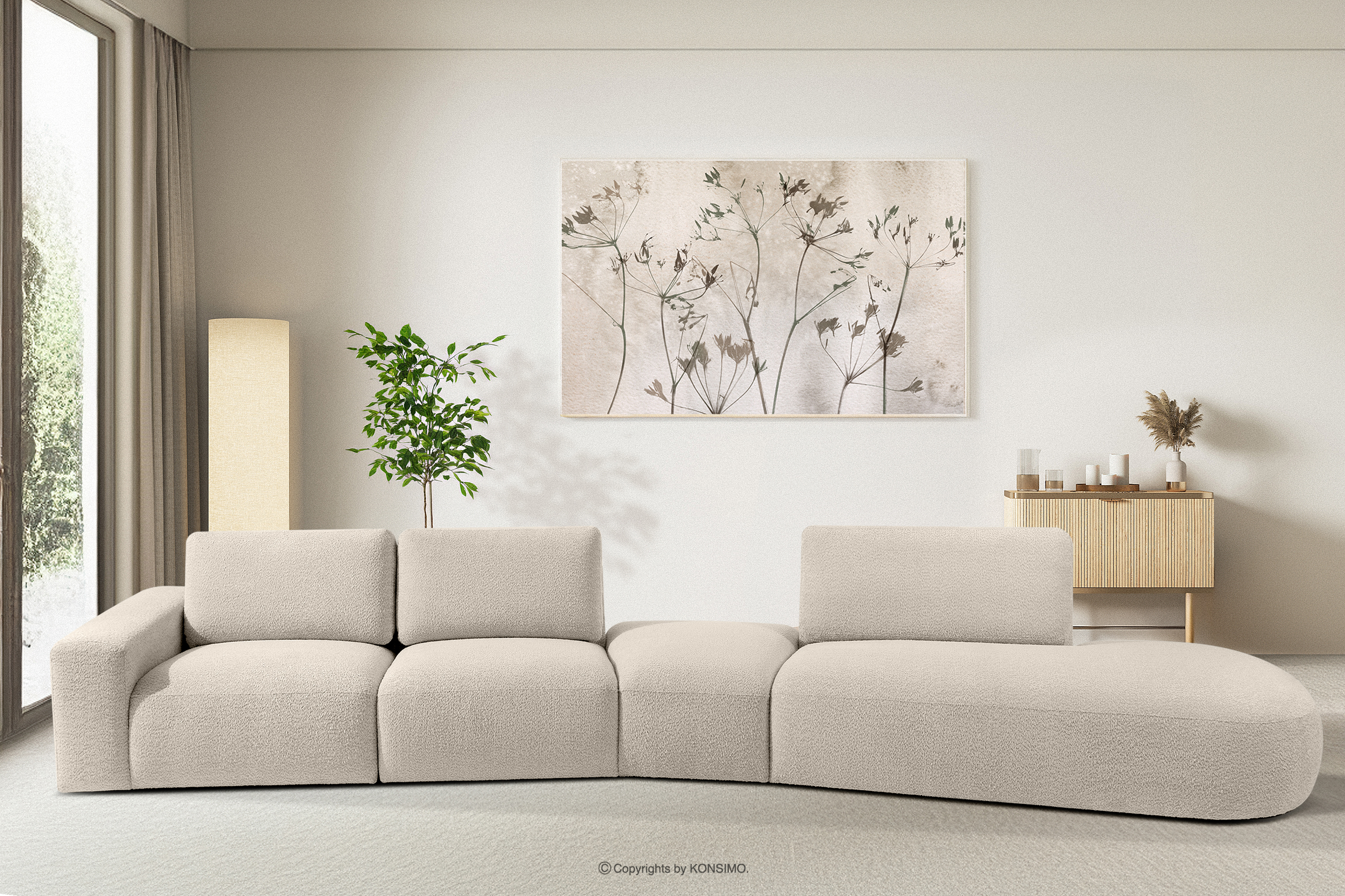 Ecksofa im organischen Stil für das Wohnzimmer aus Boucle-Stoff hellbeige