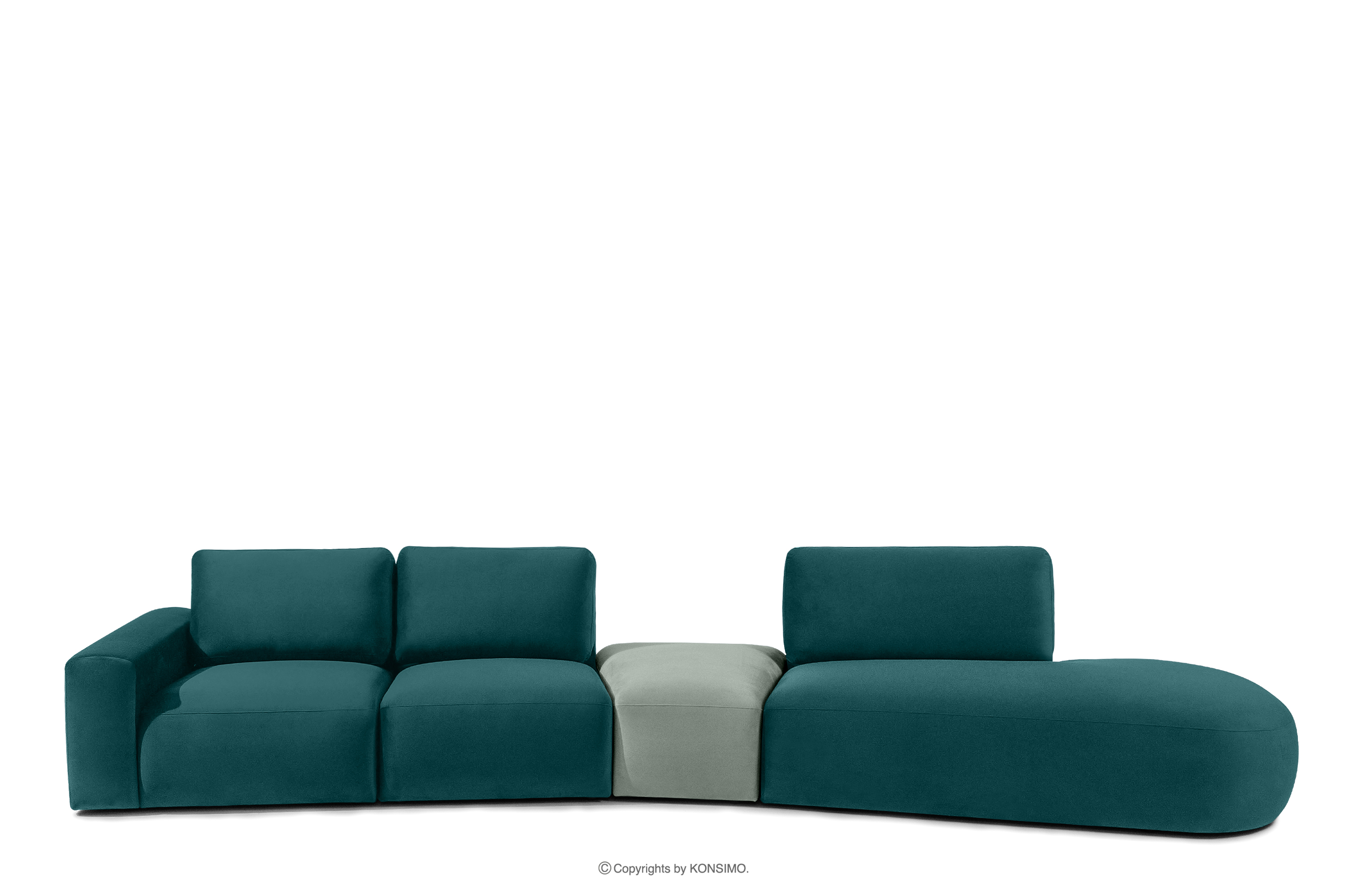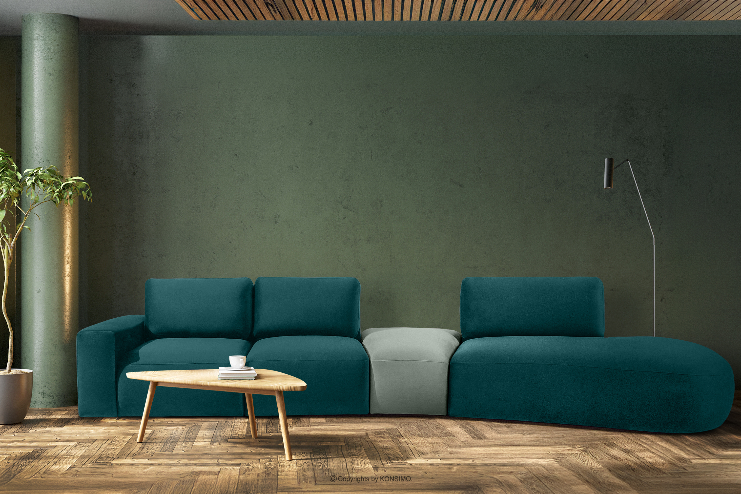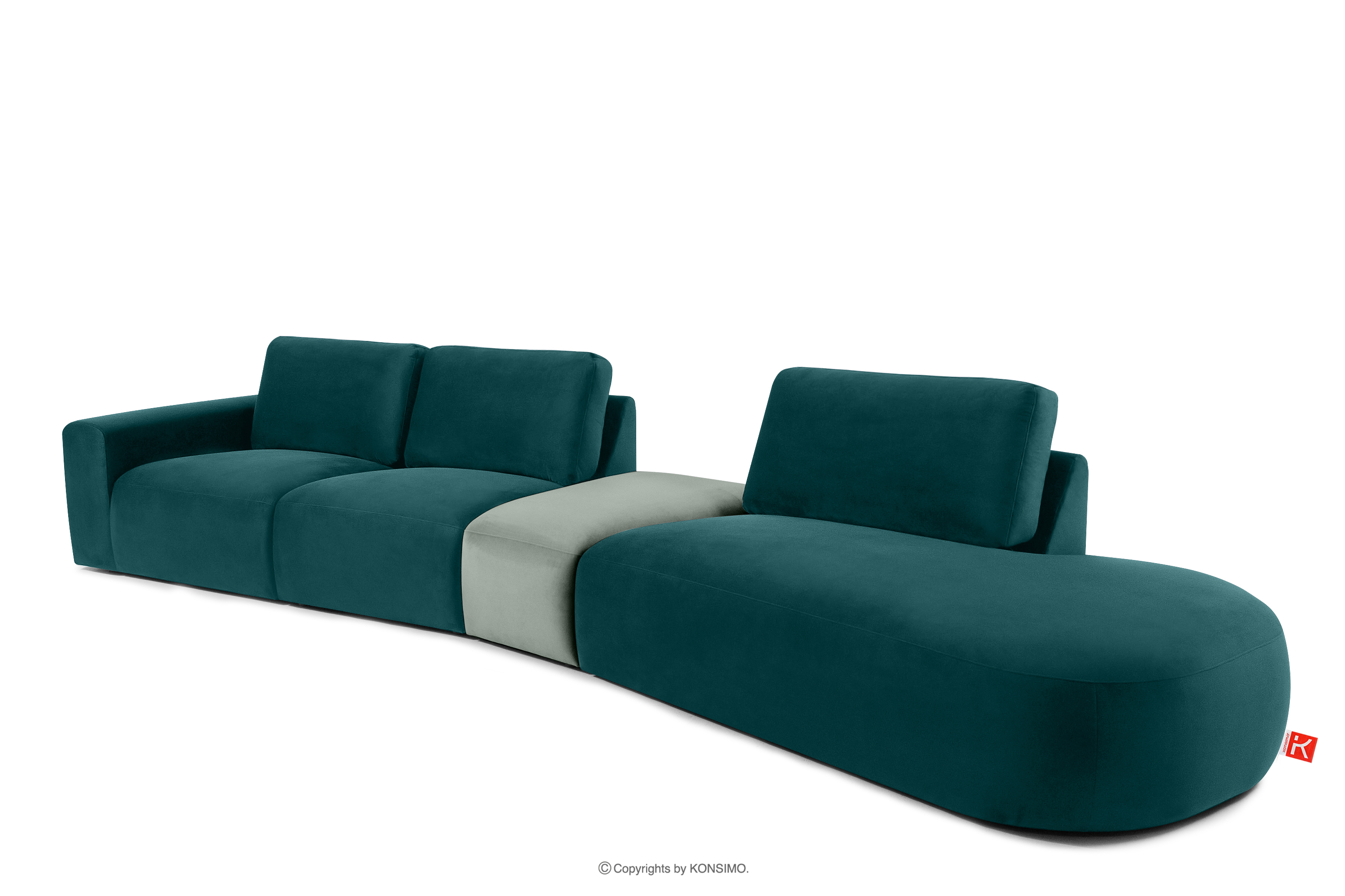Ecksofa rechts im organischen Stil aus Velours-Stoff marineblau/minzgrün
