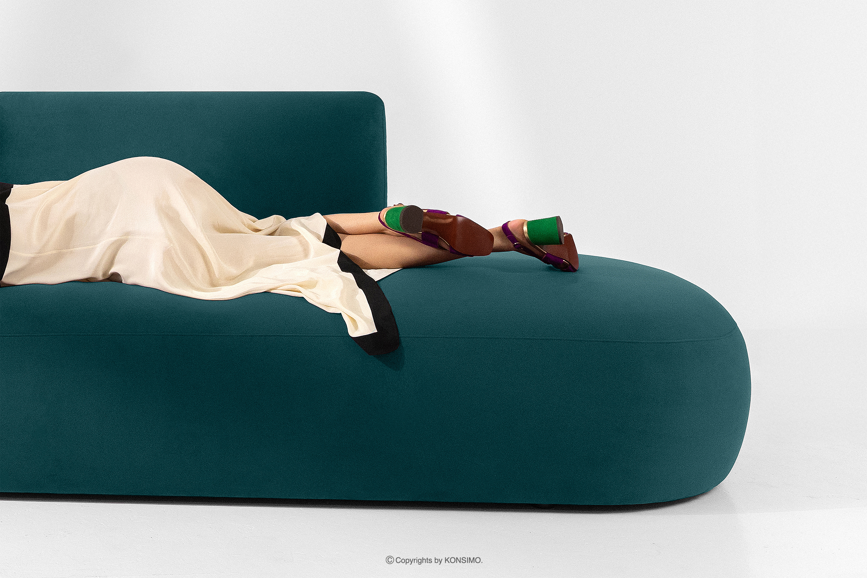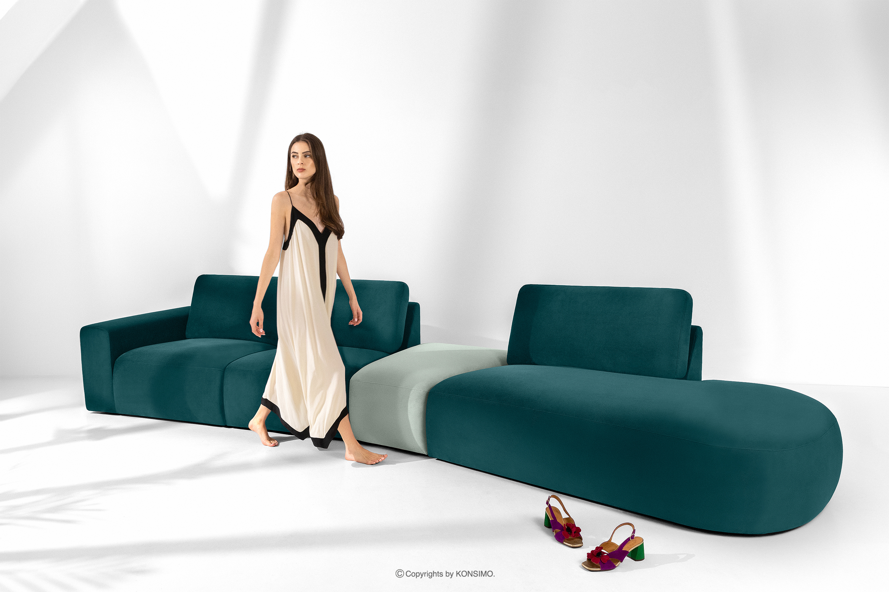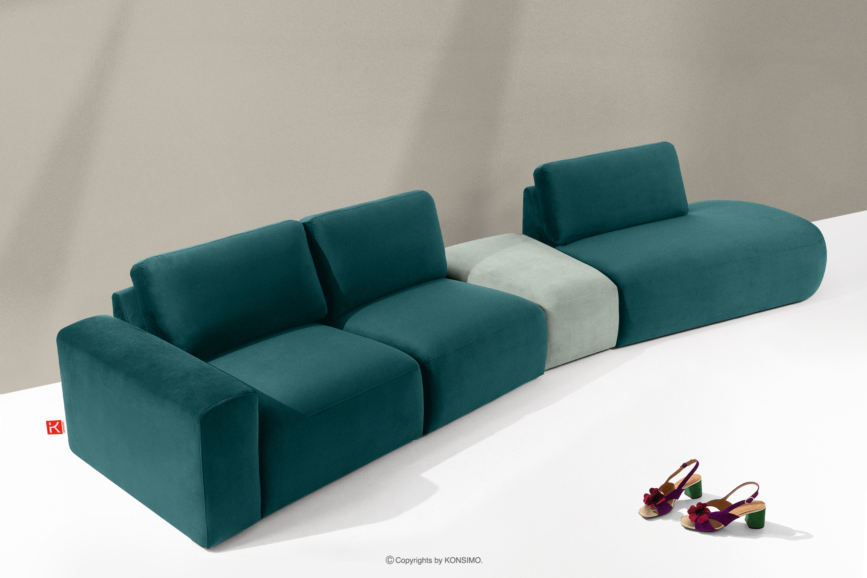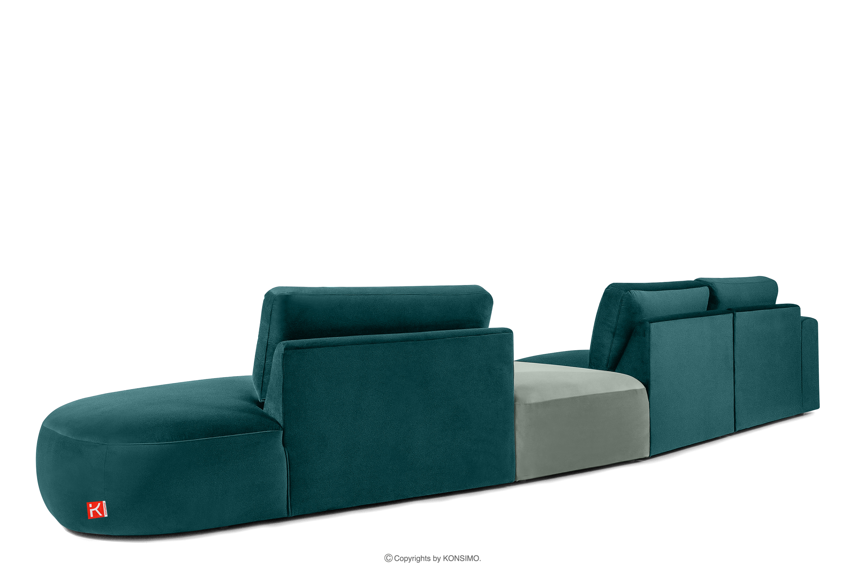 Ecksofa rechts im organischen Stil aus Velours-Stoff marineblau/minzgrün