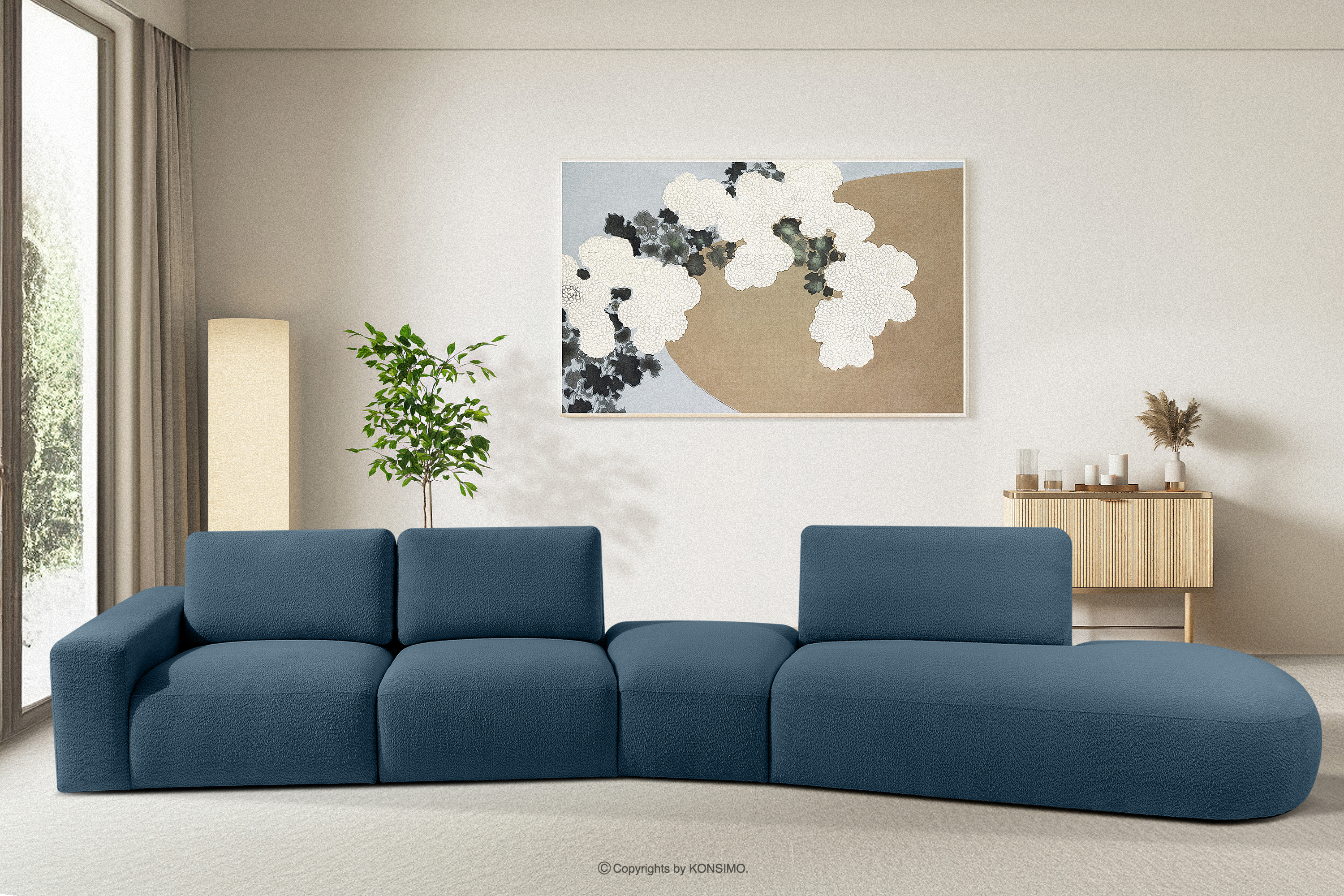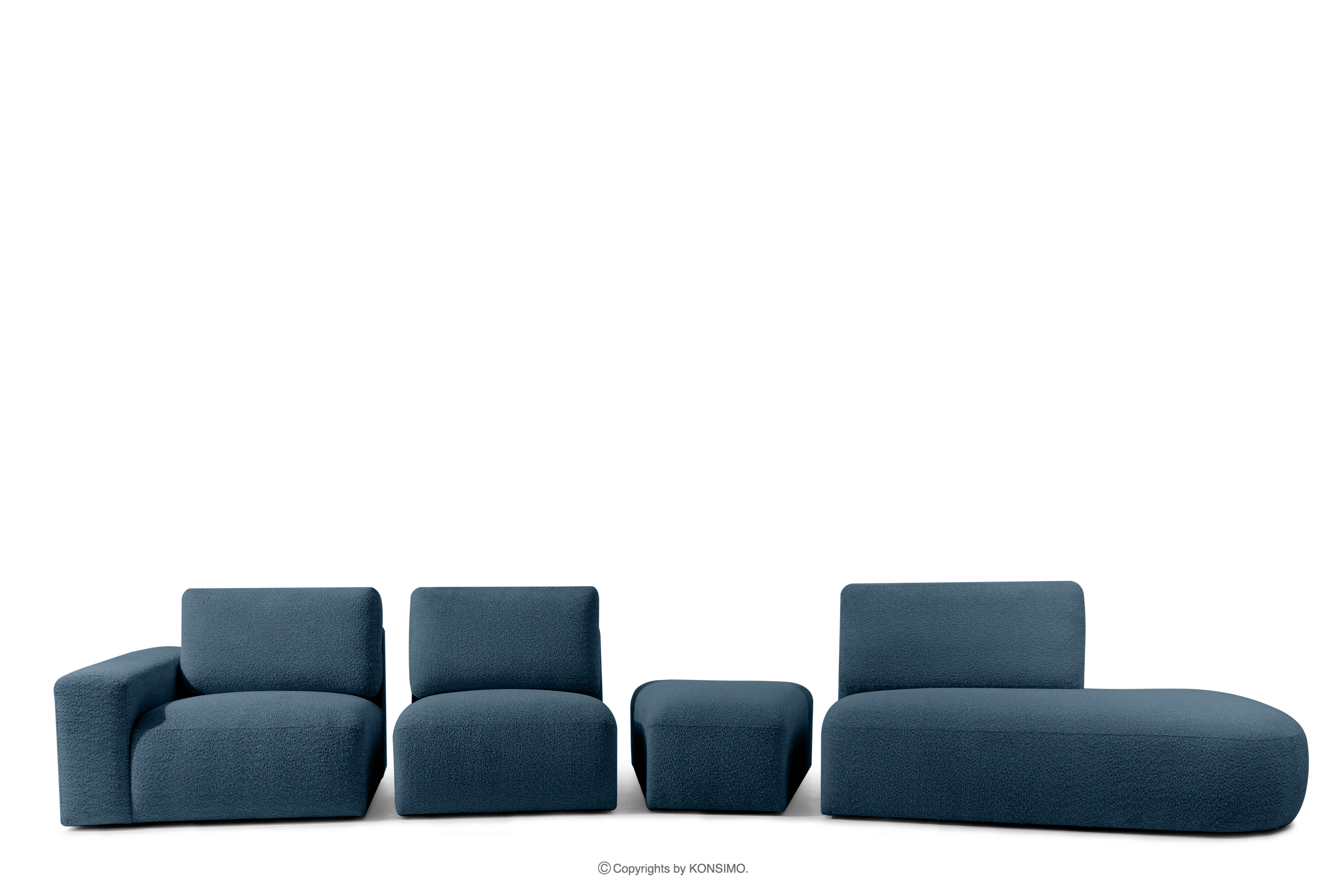 Ecksofa im organischen Stil für das Wohnzimmer aus Boucle-Stoff dunkelblau
