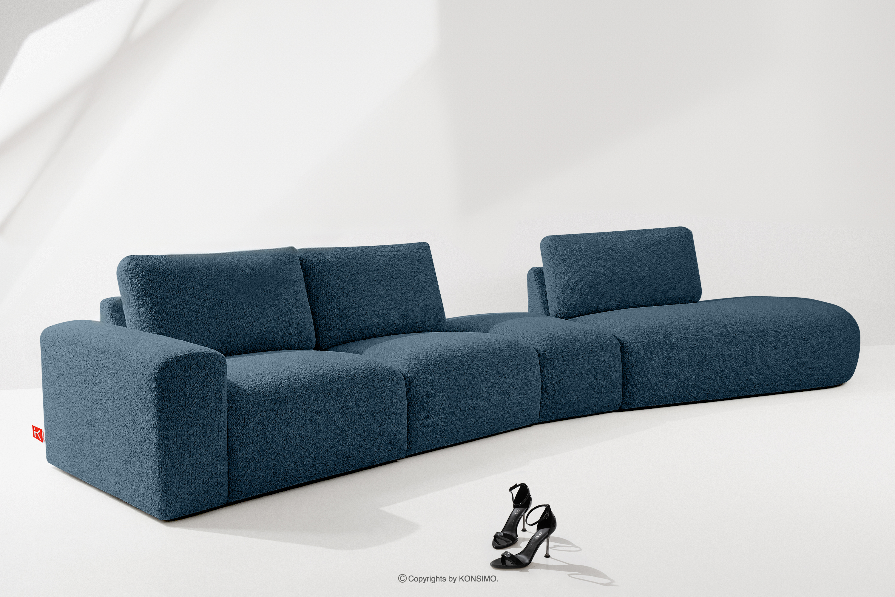 für das Produkt Organisches Ecksofa für das Wohnzimmer aus Boucle Stoff dunkelblau