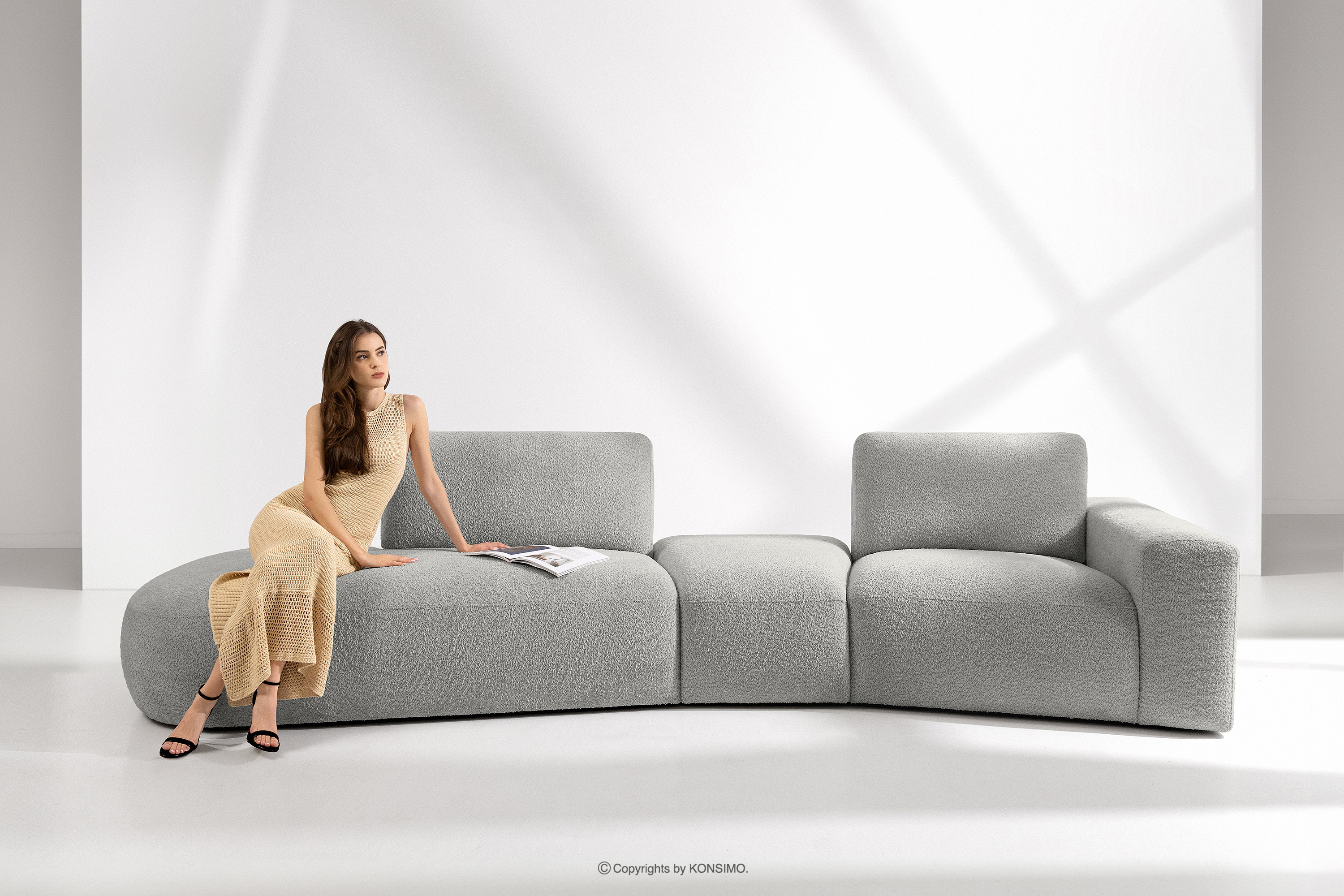 für das Produkt Modulares Sofa aus Boucle Stoff helles Eschenholz