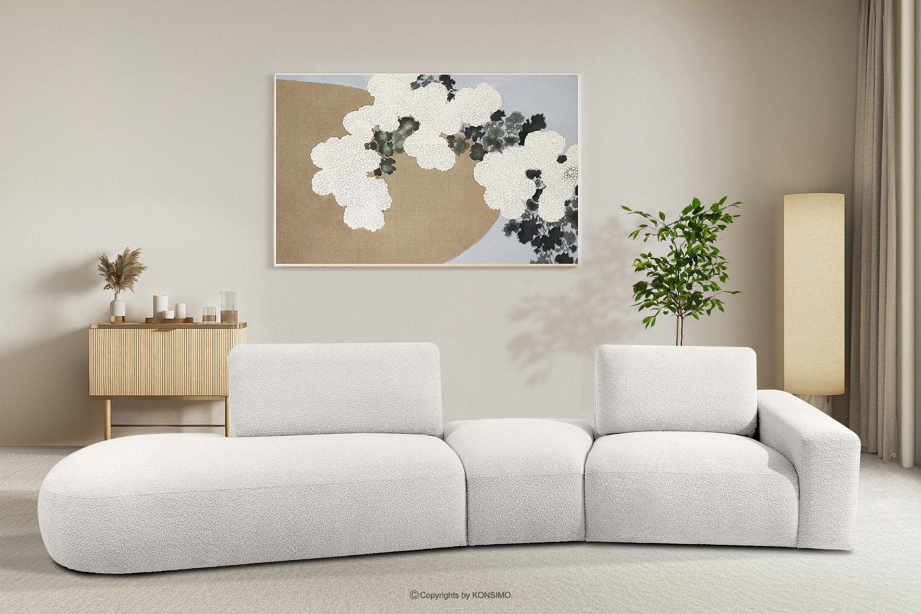 Modulsofa aus Boucle-Stoff ecru
