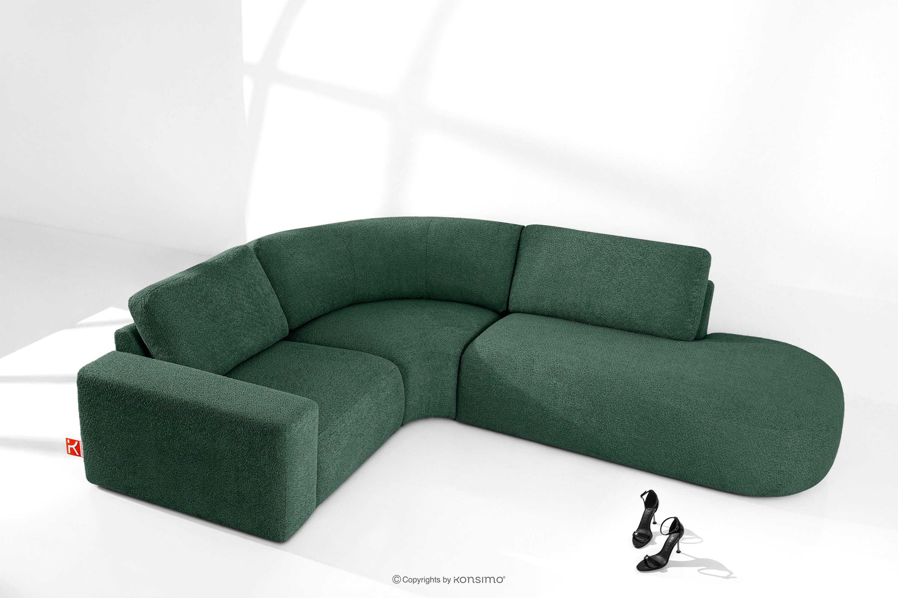 Modulares Ecksofa aus Bouclé-Stoff rechts grün ist ein Synonym für modernen Komfort und Eleganz. Die Herstellung aus hochwertigen Materialien und die Modularität gewährleisten eine flexible Nutzung je nach Bedarf. Der Bezug aus Bouclé-Stoff verleiht dem Möbelstück ein luxuriöses Aussehen und ist bekannt für seine Langlebigkeit und angenehme Haptik. Der moderne Stil, in dem ZUCCO entworfen wurde, passt perfekt zu den aktuellen Einrichtungstrends.