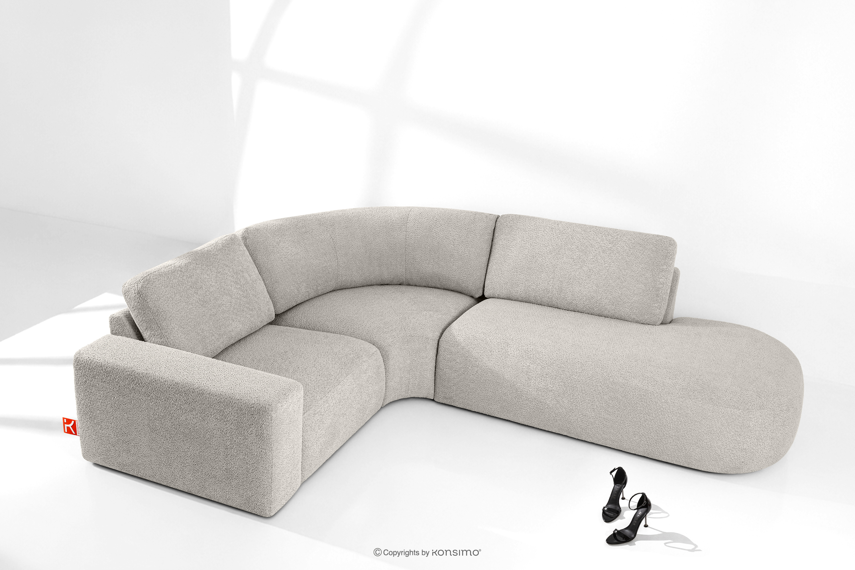 Modulares Ecksofa aus Bouclé-Stoff rechts braun ist ein Synonym für modernen Komfort und Eleganz. Die Herstellung aus hochwertigen Materialien und die Modularität gewährleisten eine flexible Nutzung je nach Bedarf. Der Bezug aus Bouclé-Stoff verleiht dem Möbelstück ein luxuriöses Aussehen und ist bekannt für seine Langlebigkeit und angenehme Haptik. Der moderne Stil, in dem ZUCCO entworfen wurde, passt perfekt zu den aktuellen Einrichtungstrends.
