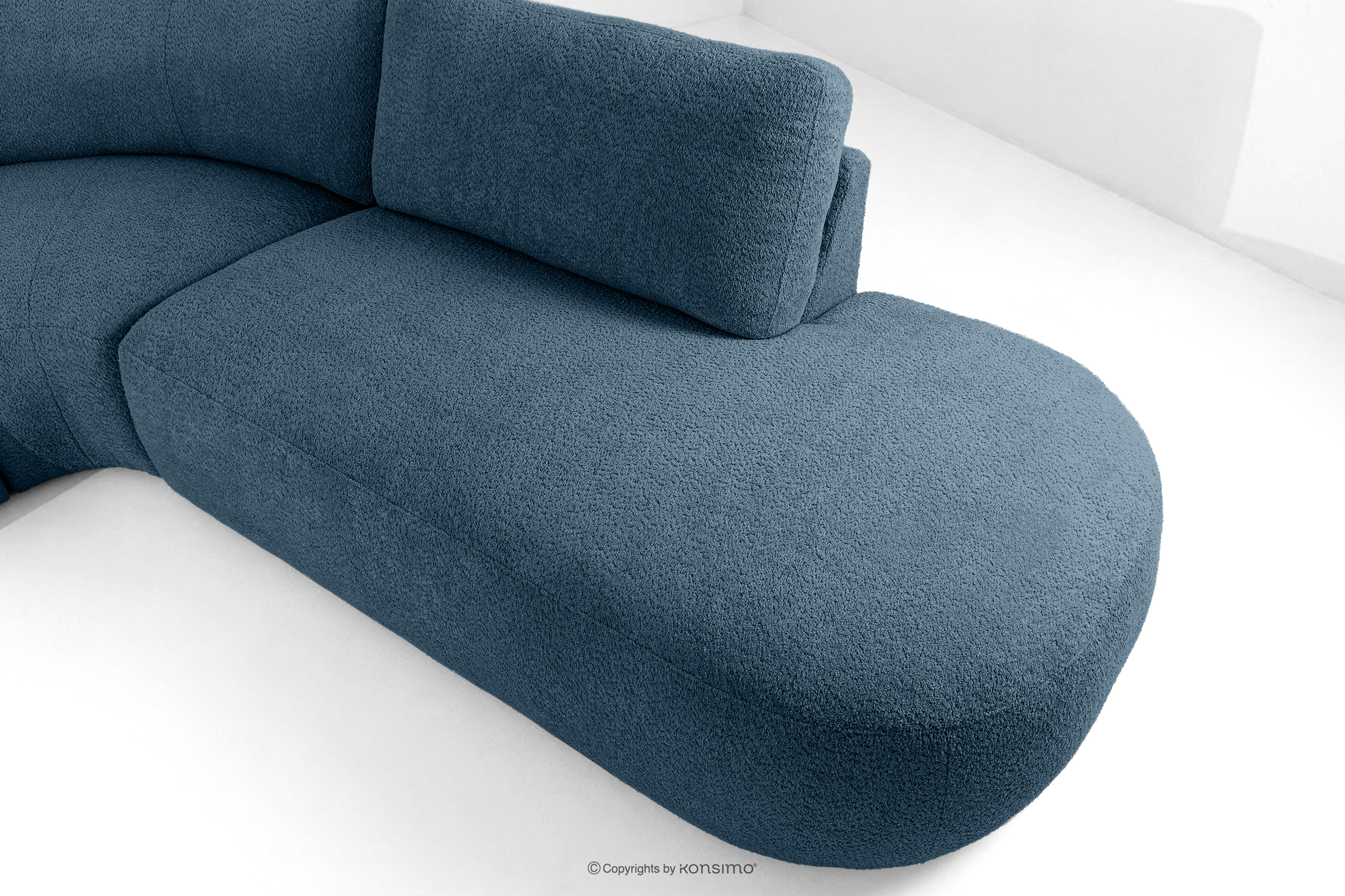 Modulares Ecksofa aus Bouclé-Stoff rechts dunkelblau ist ein Synonym für modernen Komfort und Eleganz. Die Herstellung aus hochwertigen Materialien und die Modularität gewährleisten eine flexible Nutzung je nach Bedarf. Der Bezug aus Bouclé-Stoff verleiht dem Möbelstück ein luxuriöses Aussehen und ist bekannt für seine Langlebigkeit und angenehme Haptik. Der moderne Stil, in dem ZUCCO entworfen wurde, passt perfekt zu den aktuellen Einrichtungstrends.